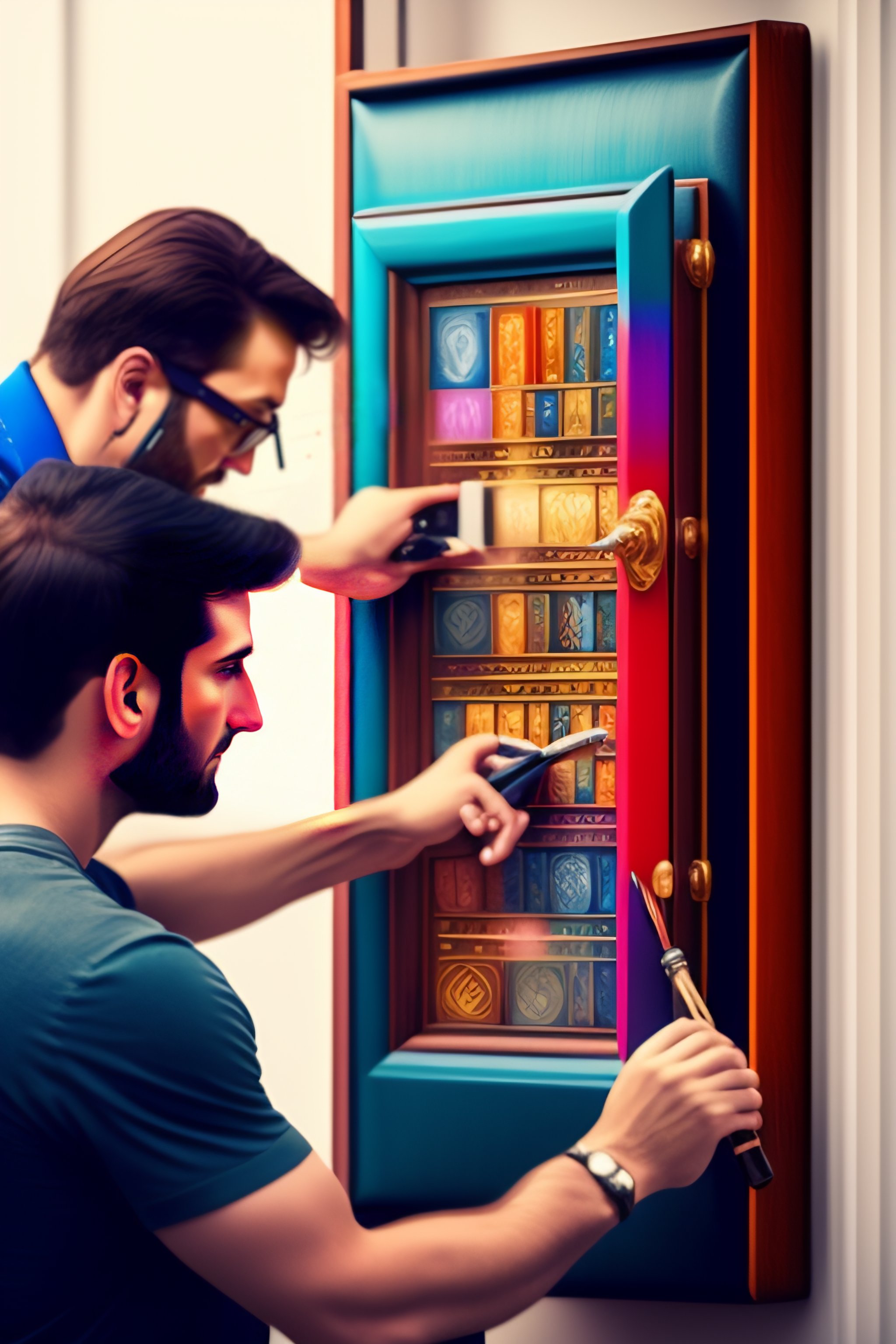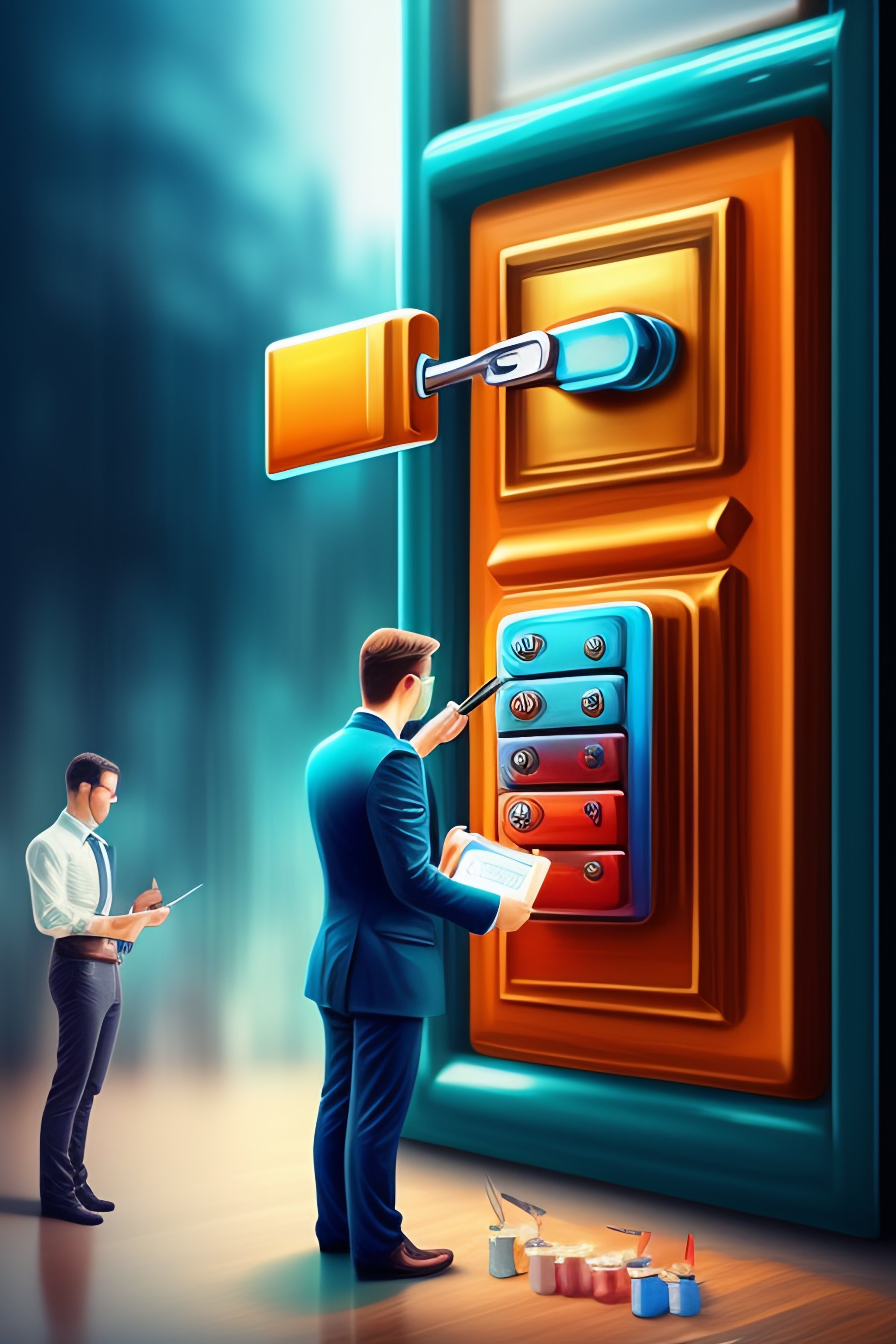 People of different professions locksmith, programmer, accountant and director work together, artpaint