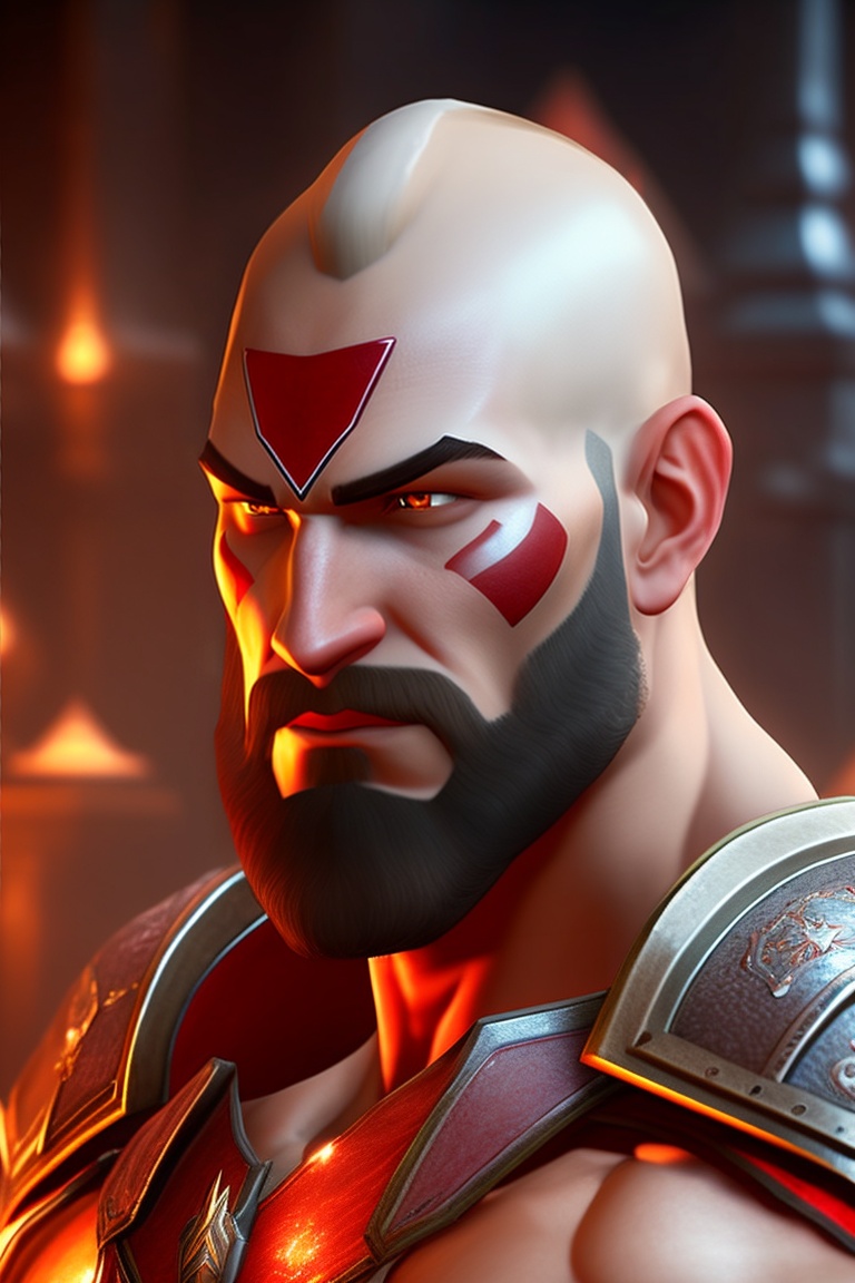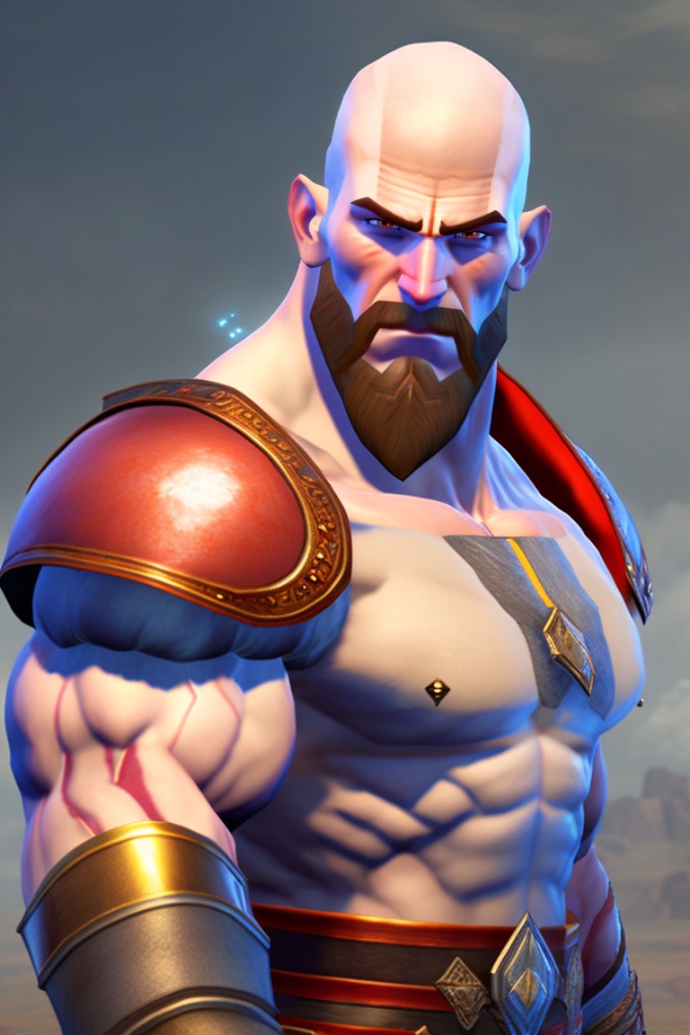 Kratos has a shaved head, wears a goatee and displays a scar that divides his right eye, in addition to two others on his stomach and back, caused by the blade of olympus at the beginning of god of war ii. use two blades in your hands