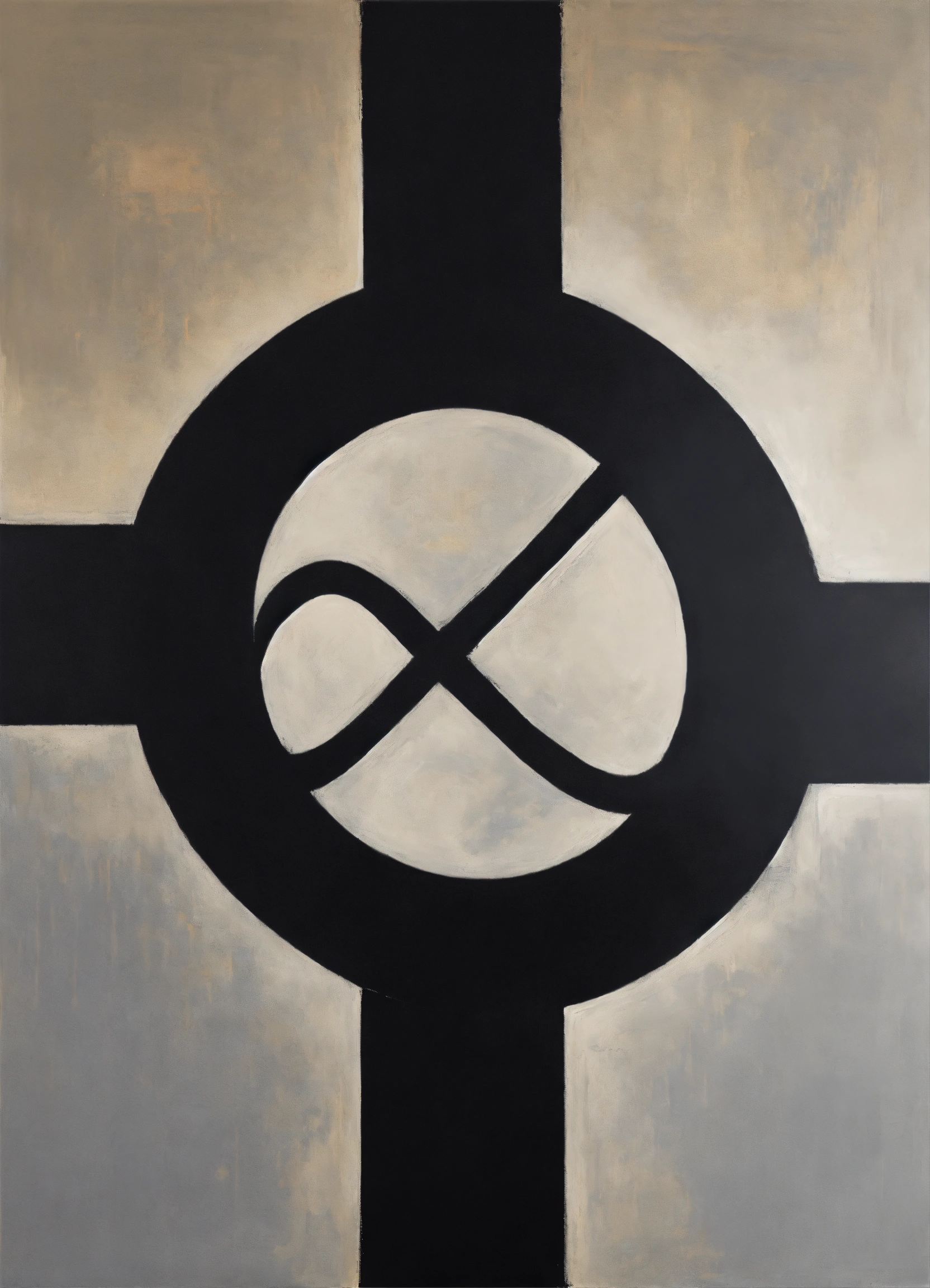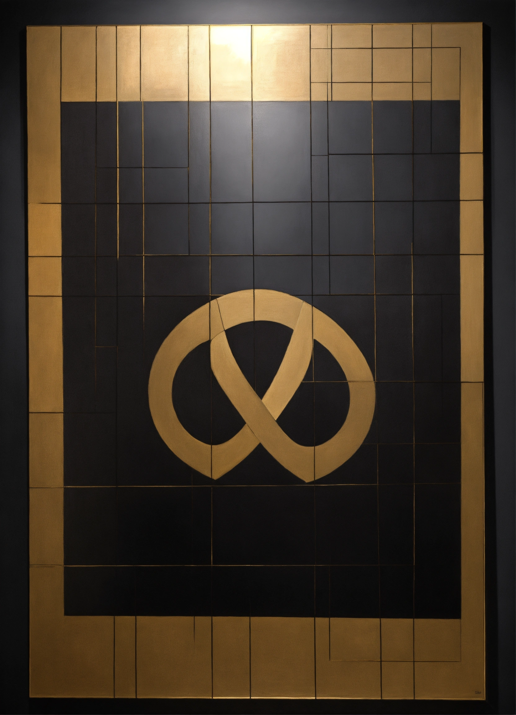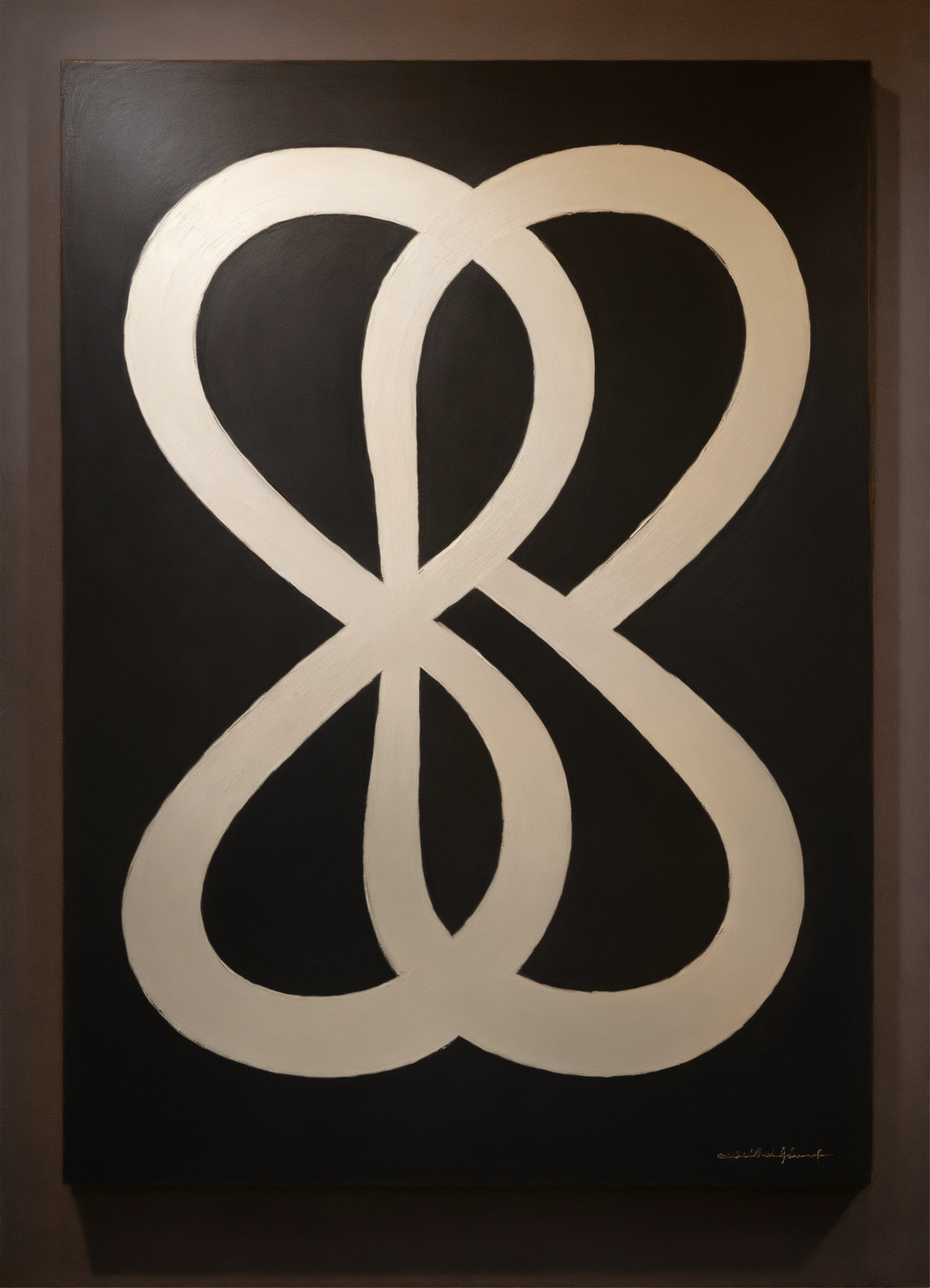 Minimalist, elegant, discreet, enigmatic, sophisticated, modern, mysterious and perfect painting of infinite symbol in monochromatic.