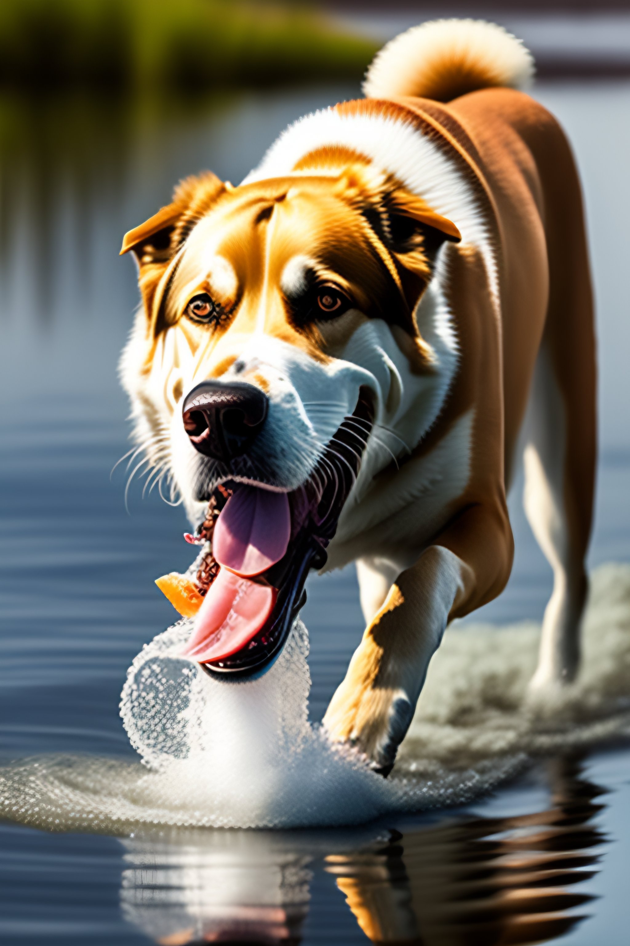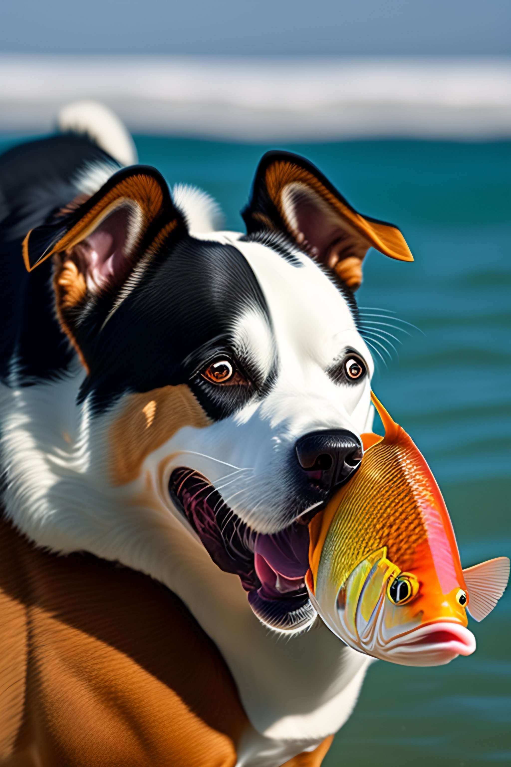 Dog bringing fish with mouth