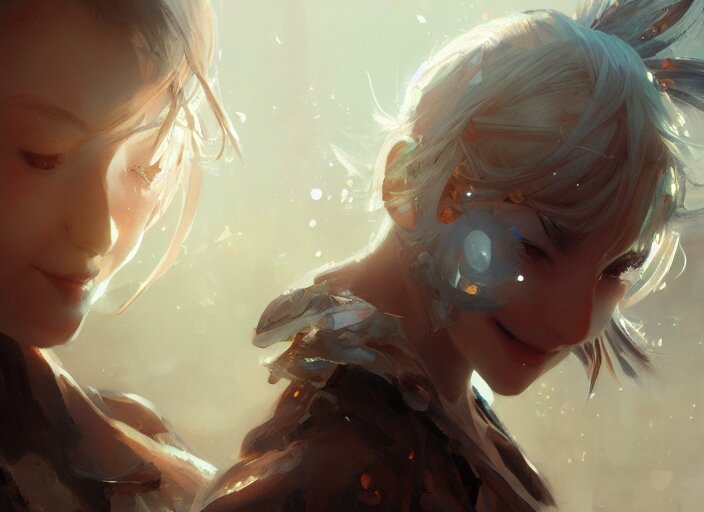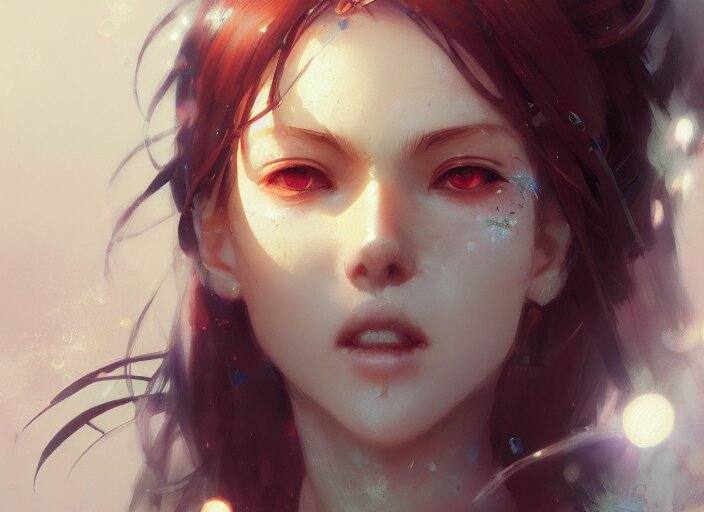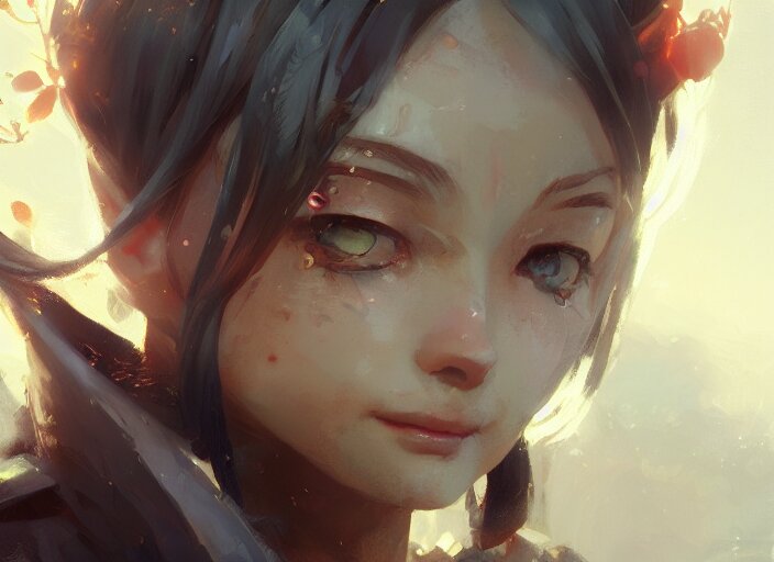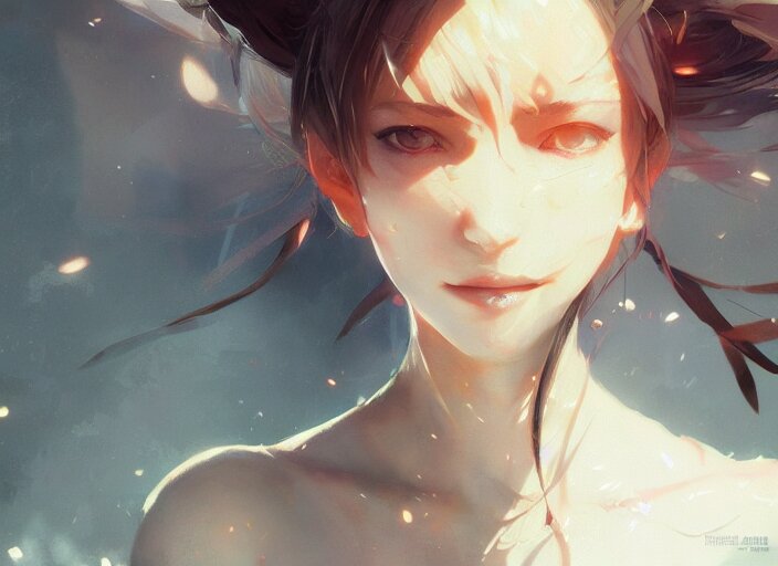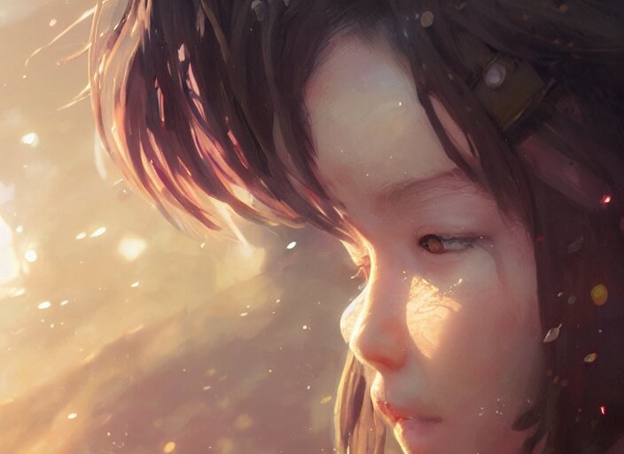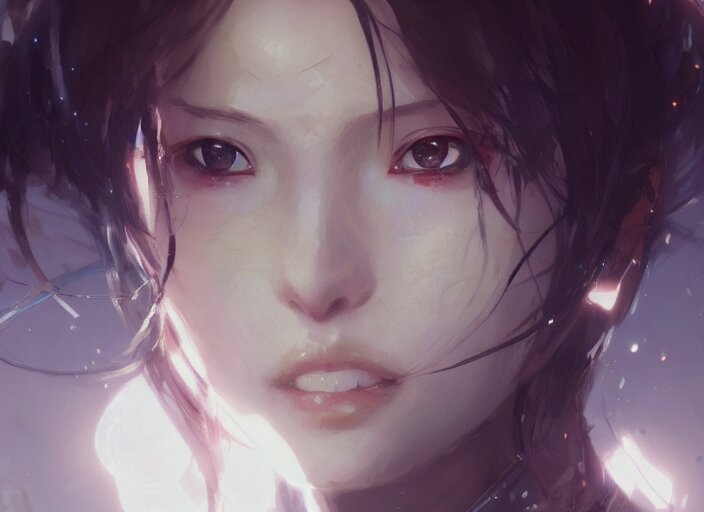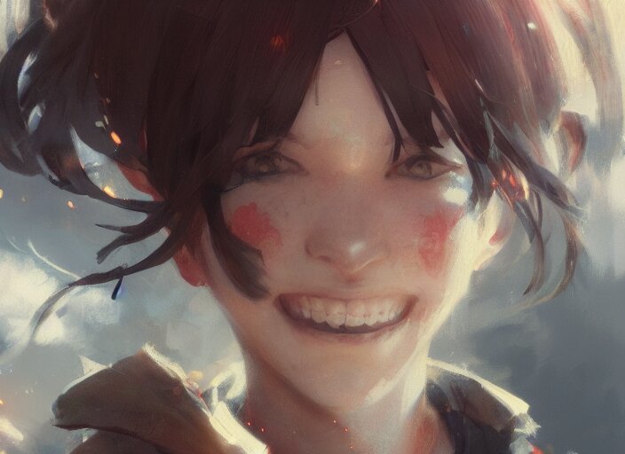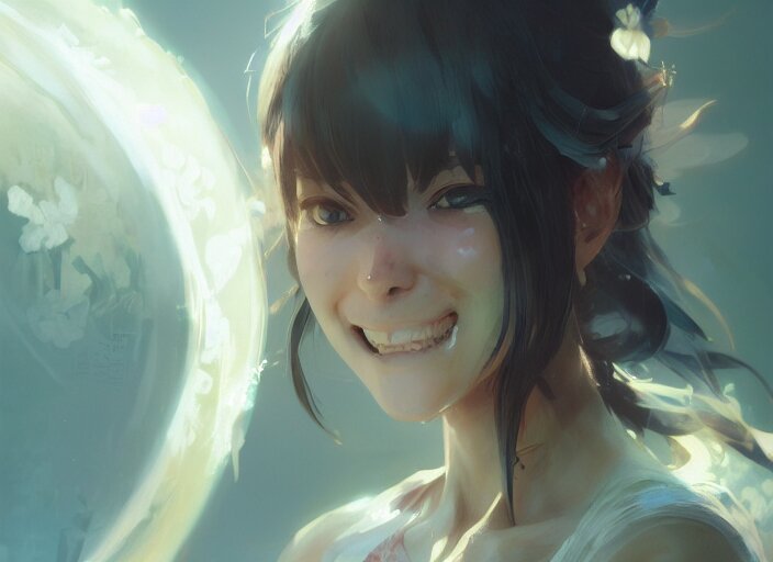 Closeup of anime girl, smiling, intricate, sharp focus, lens flare, bloom, illustration, highly detailed, digital painting, concept art, matte, art by ruan jia and wlop and greg rutkowski