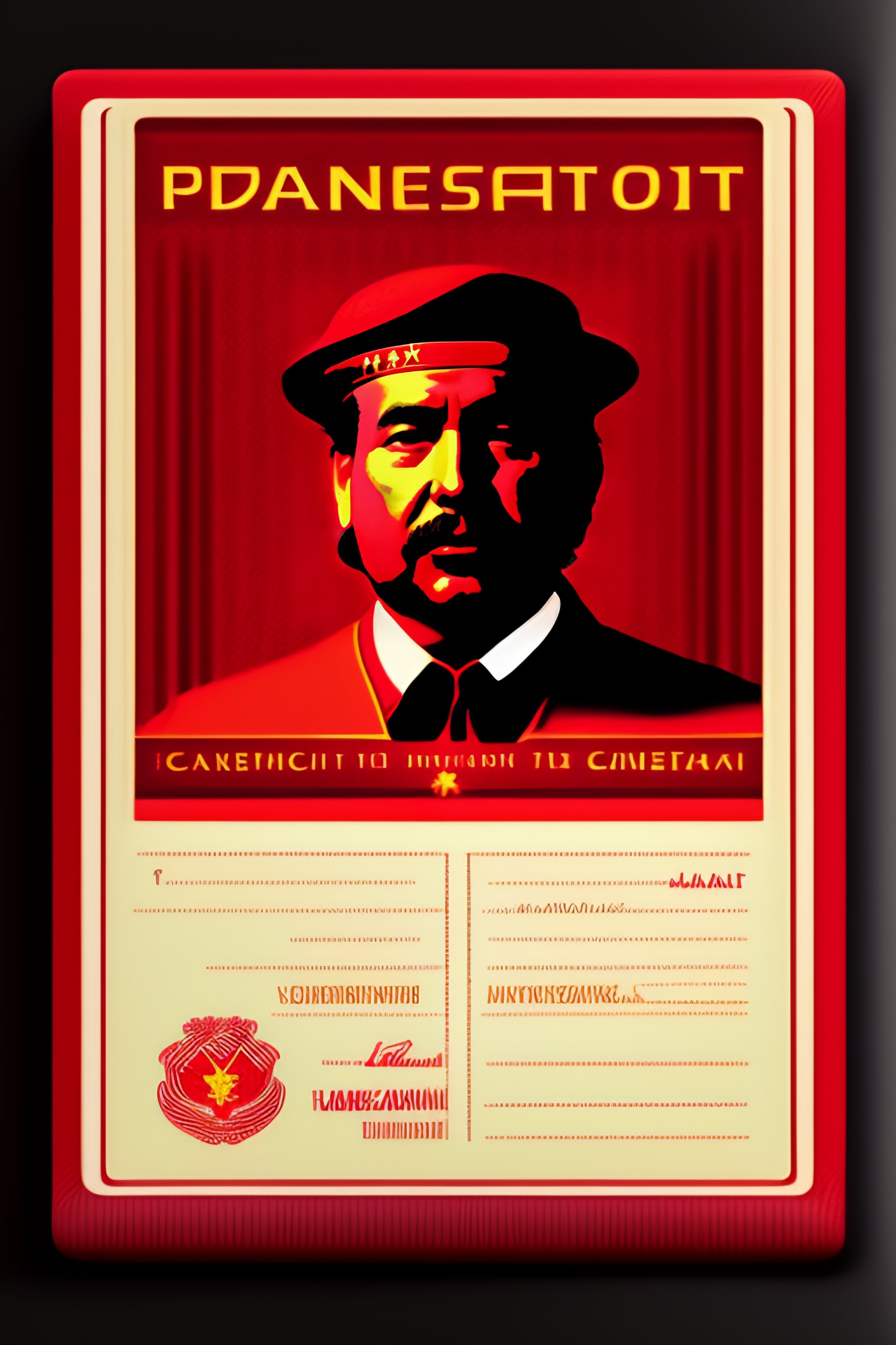 A template of a passport of a fictional fantasty communist country