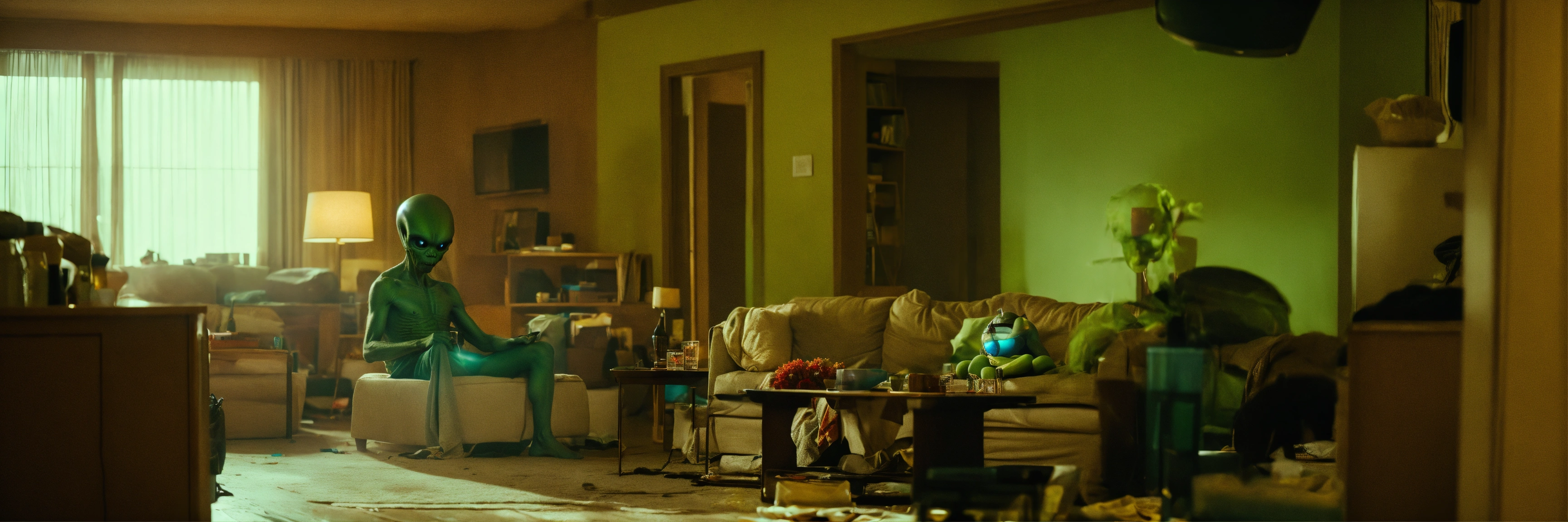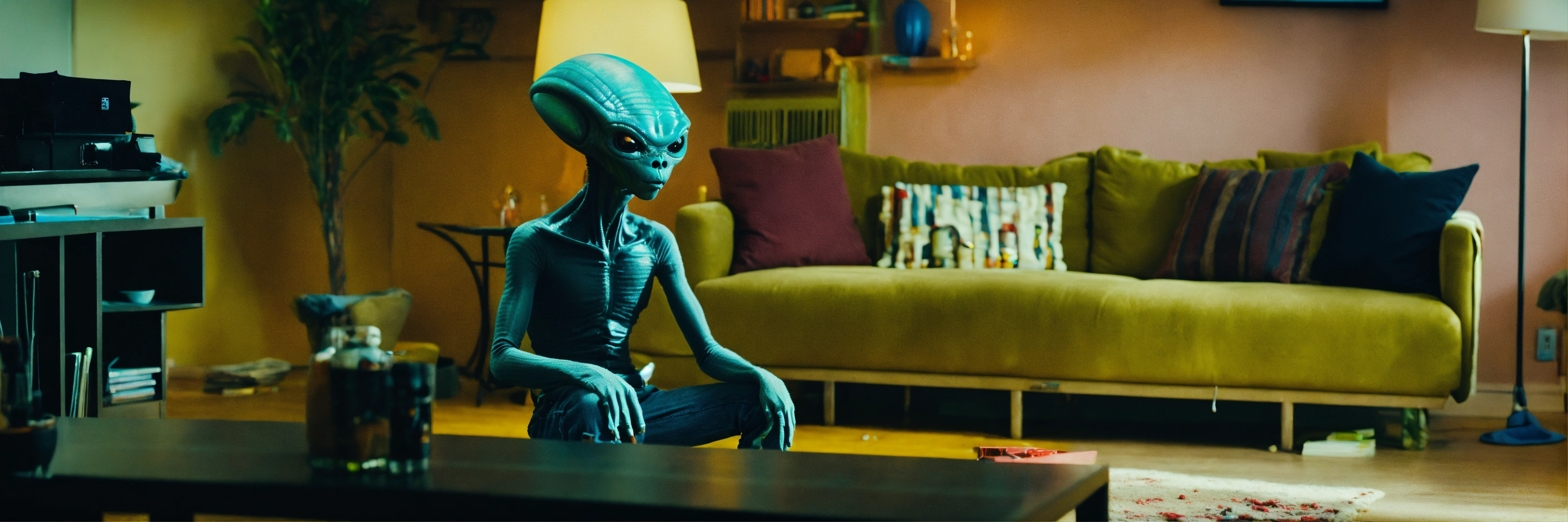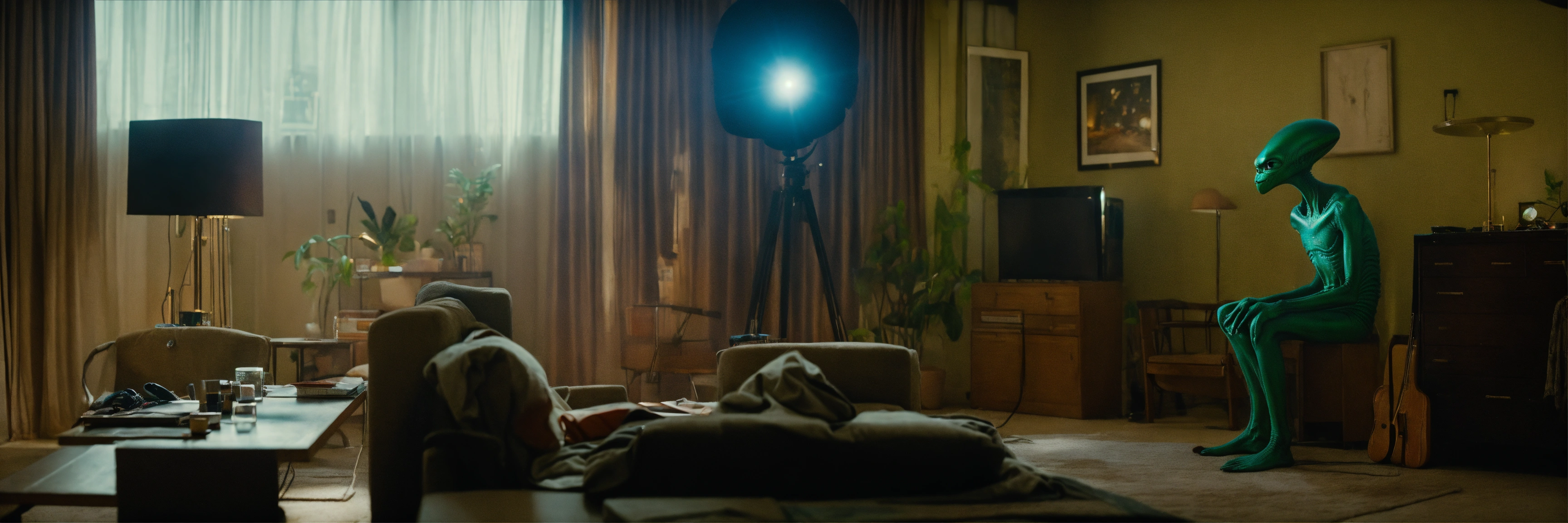 Cinematic moment with an alien (extra terrestrial)