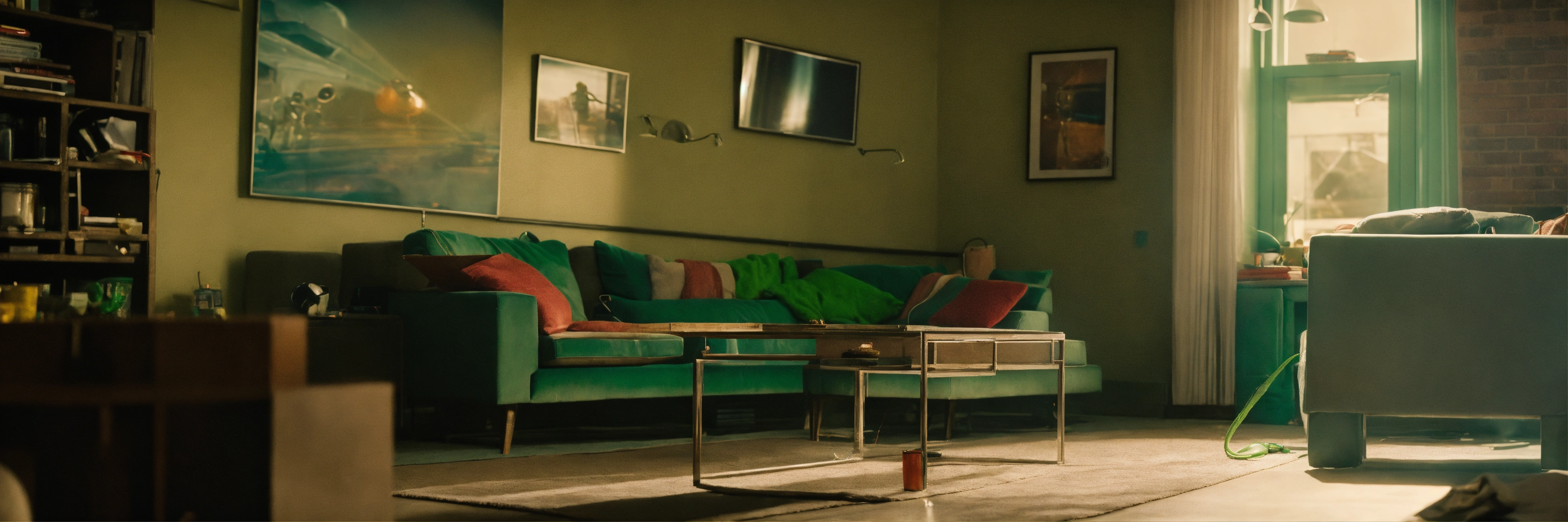 sitting in a messy apartment