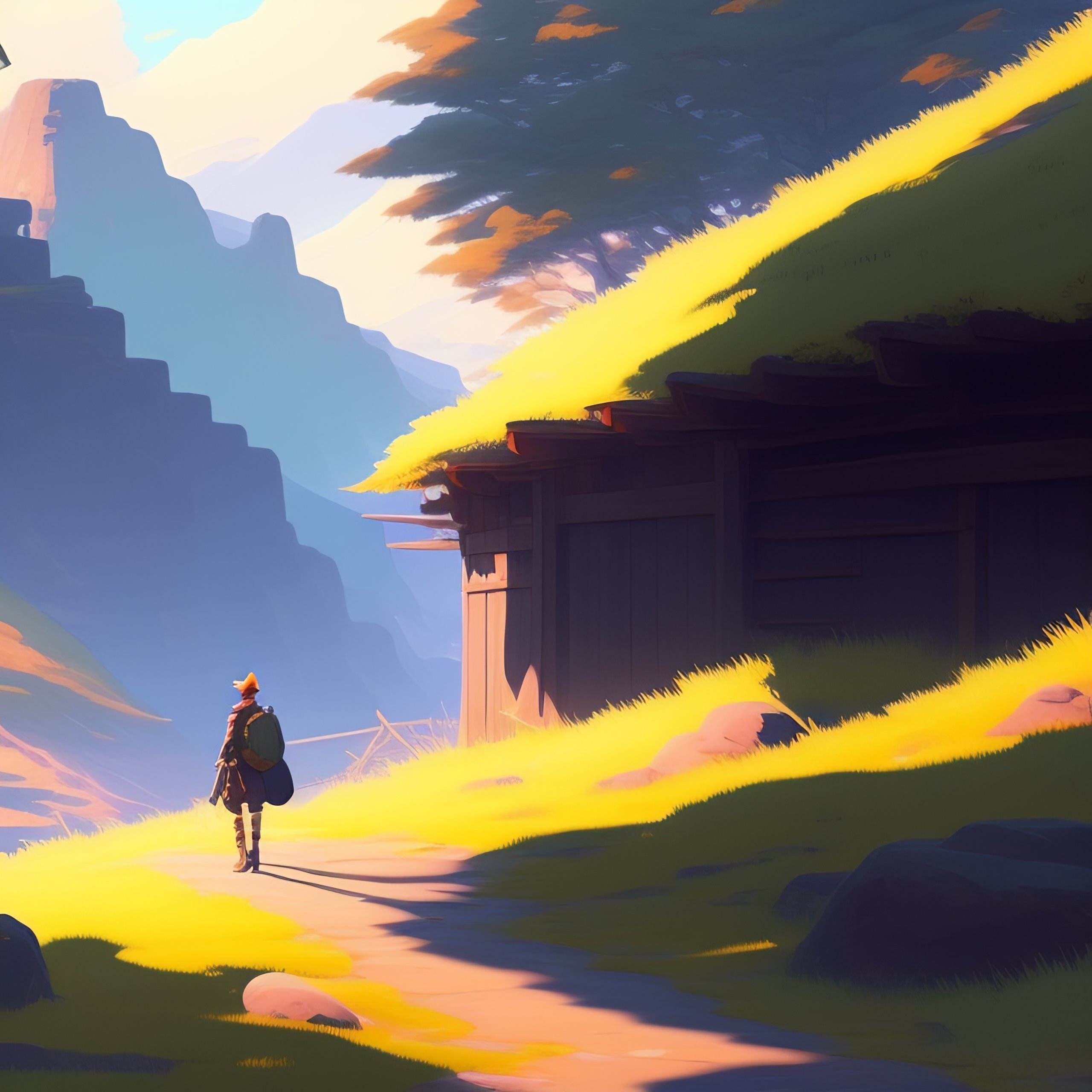 Cel shaded, toon shaded style anime key visual concept art of sad anime vibrant landscape, acrylic, trending on pixiv fanbox, palette knife, style of makoto shinkai jamie wyeth james gilleard edward hopper greg rutkowski studio ghibli in style of breath of the wild