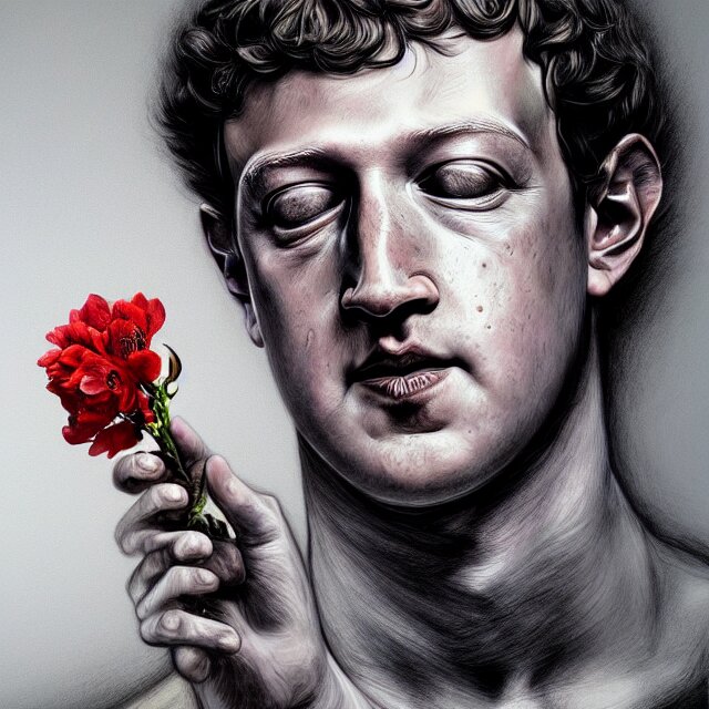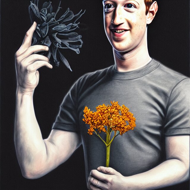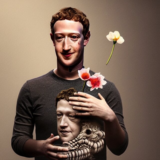 Mark zuckerberg holding a flower by hr giger, trending on artstation, realistic, detailed, concept art, horror, illustration