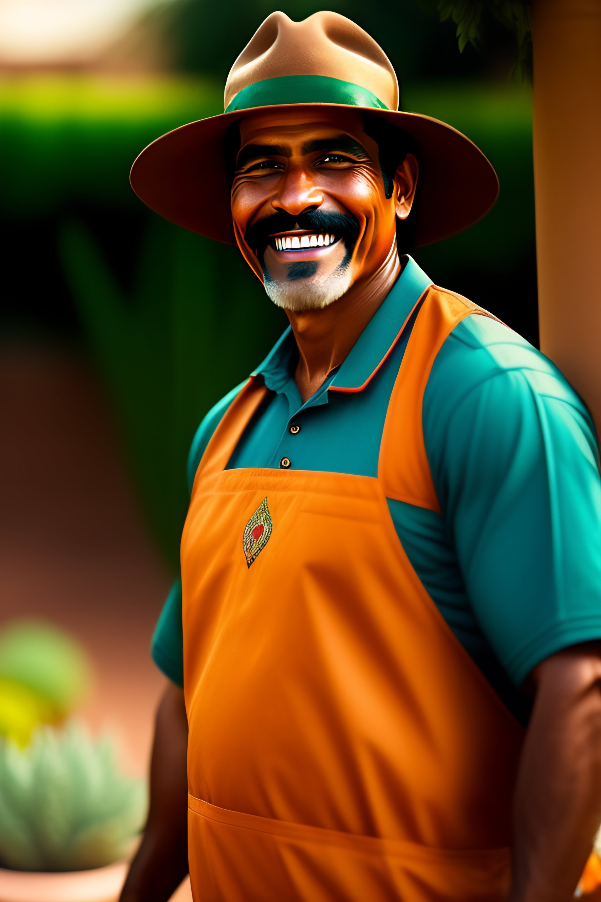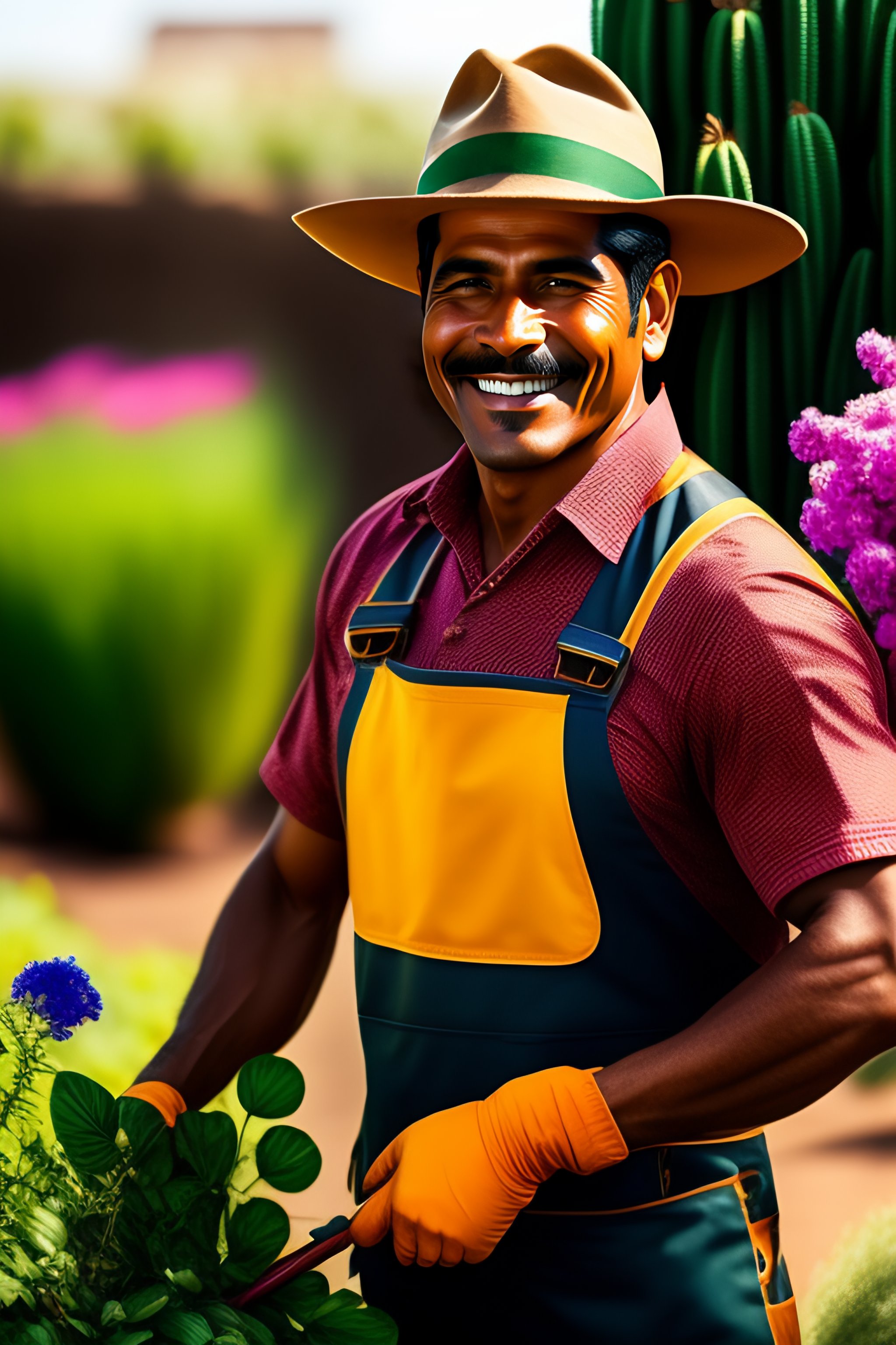 Smiling mexican gardener