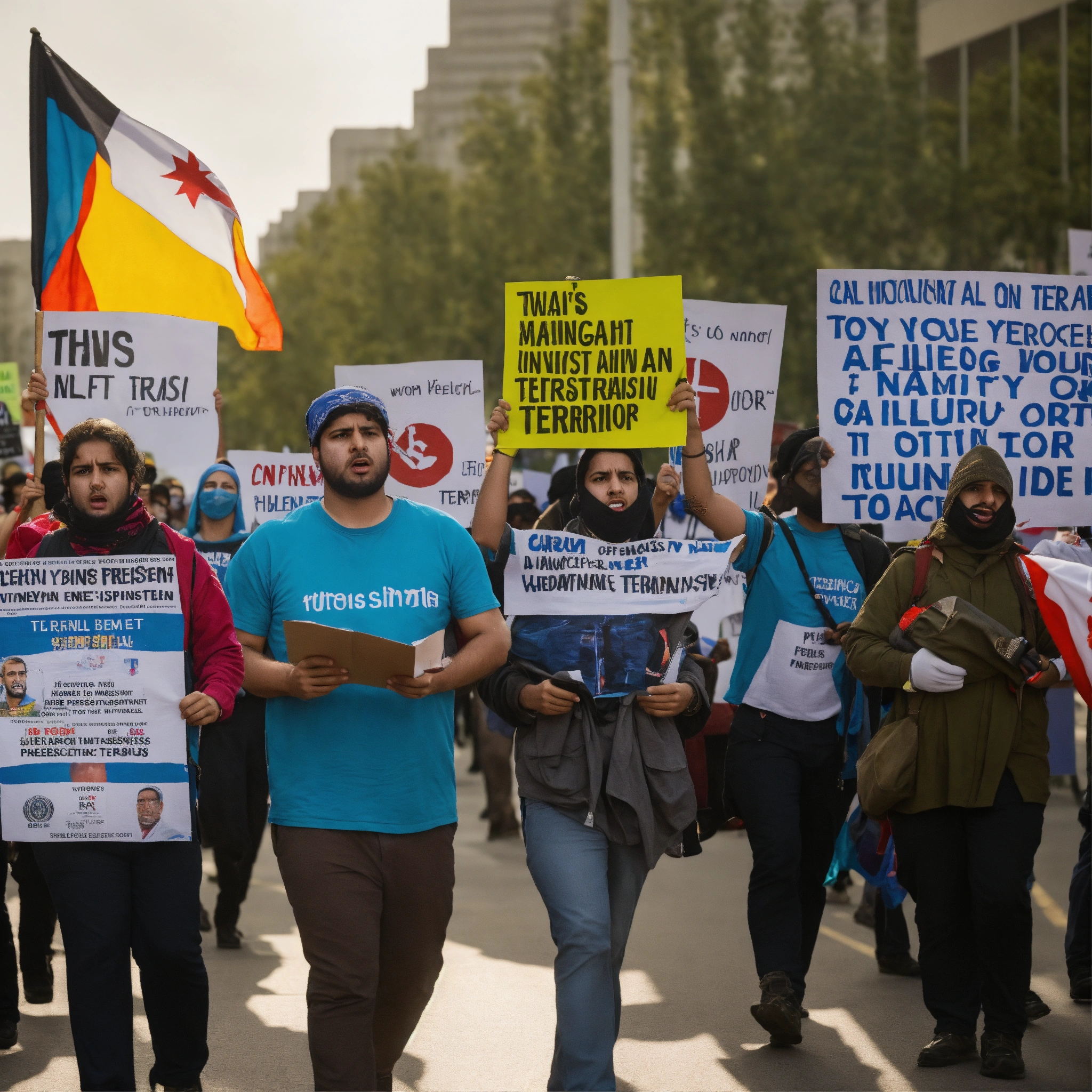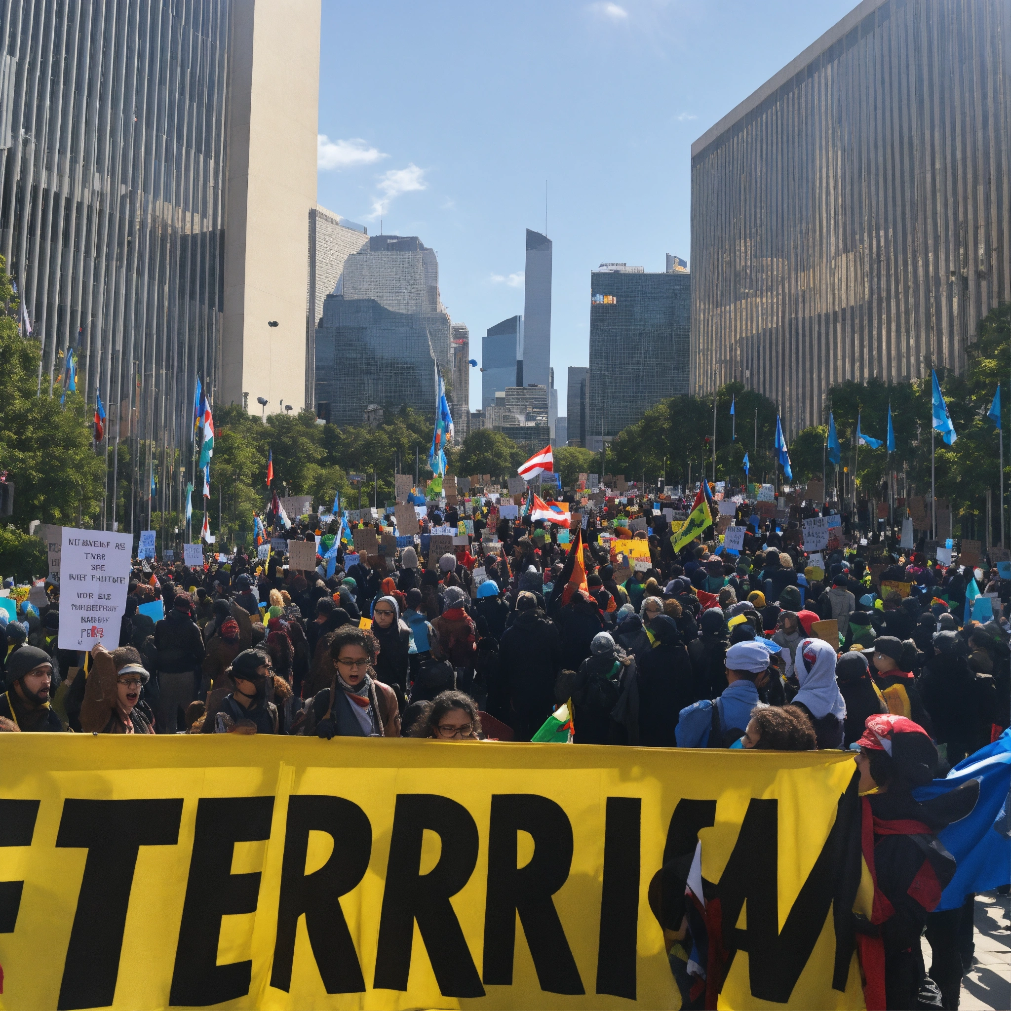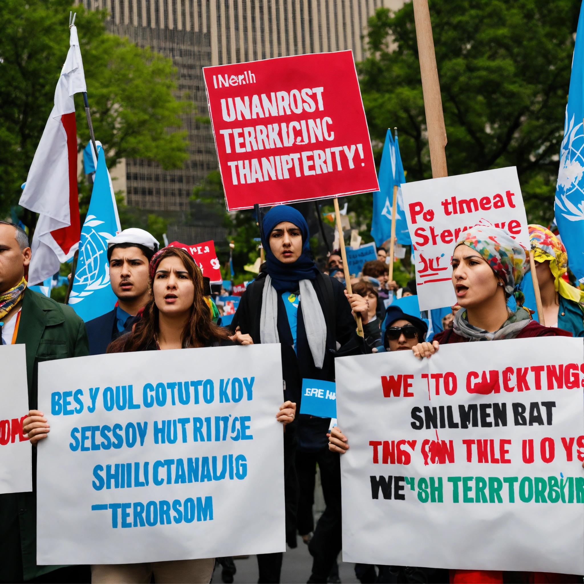 Image of protestors demanding transparency and fairness in the un's approach to terrorism