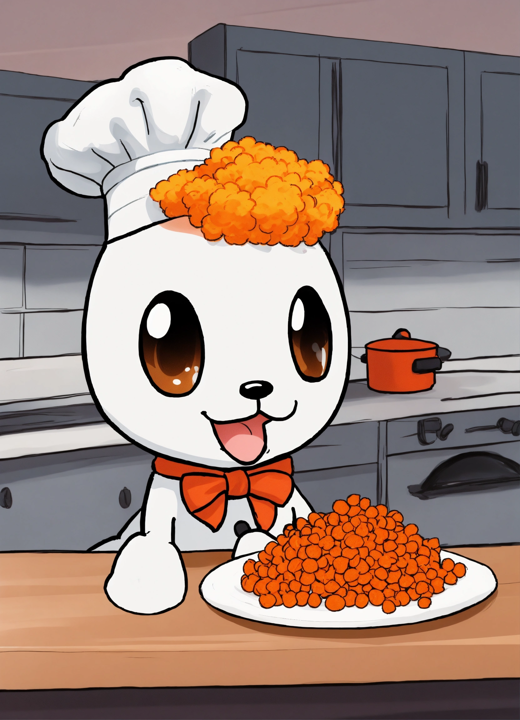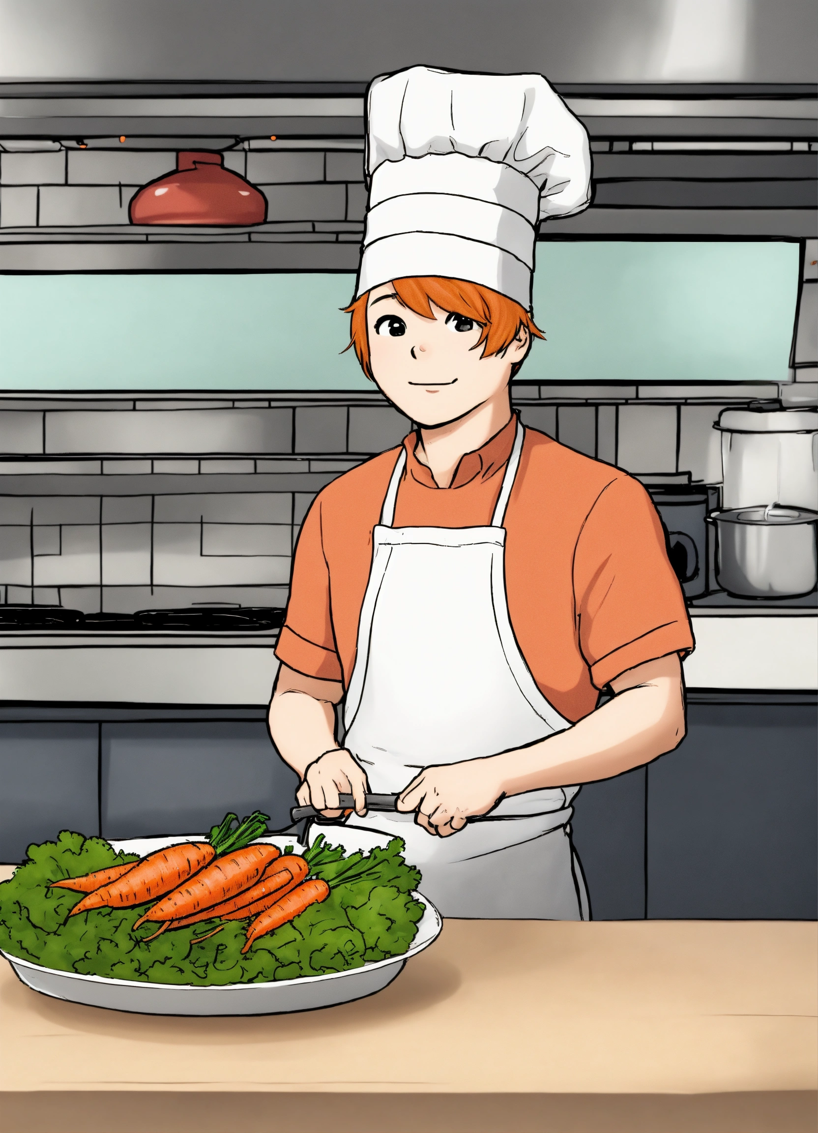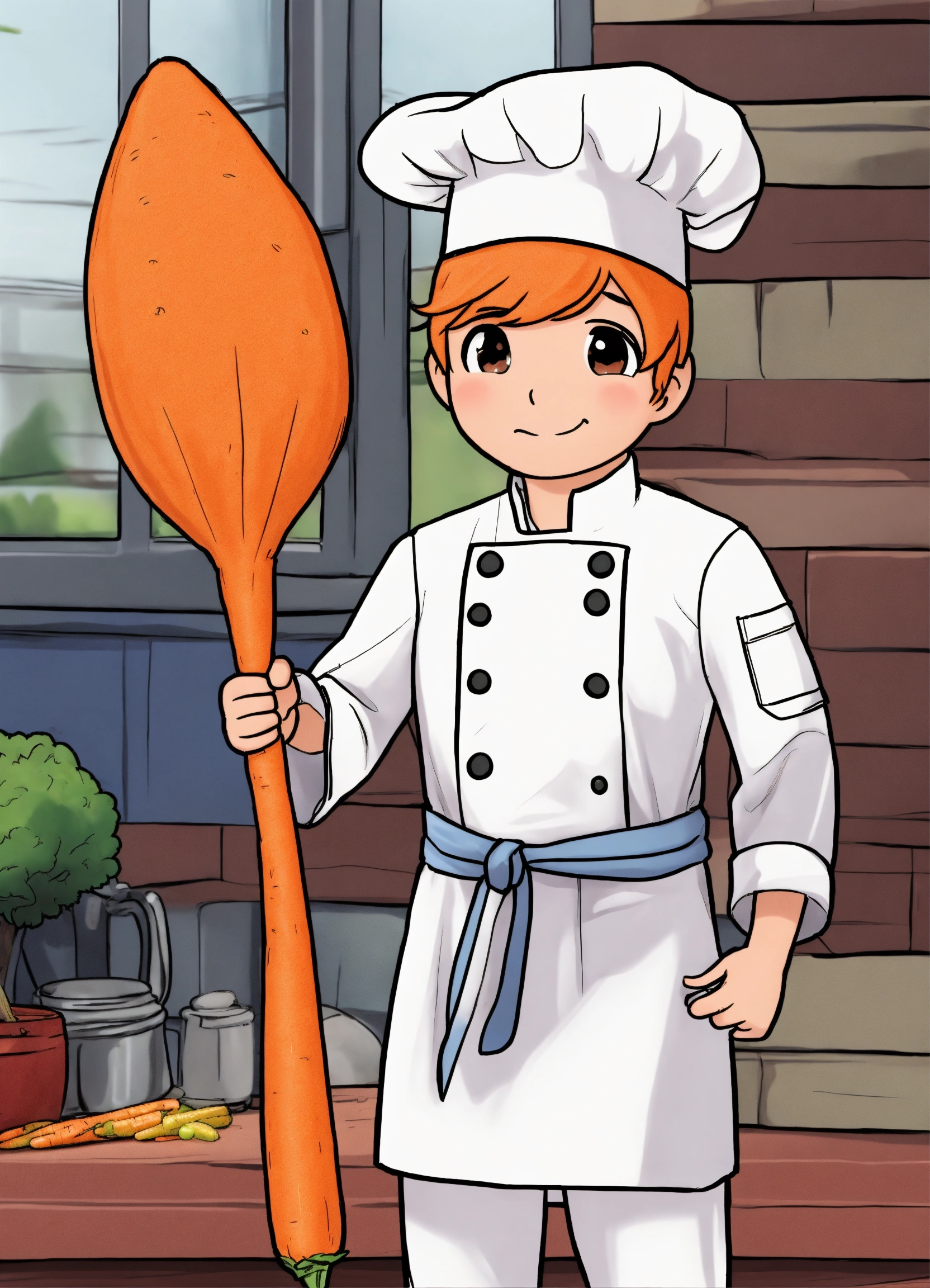 Please make me help with a comic book character like let me explain studios/ theodd1sout make it with cute eyes, the point is it is for my youtube animation videos, one of the characters, so i want it simple and easy but make it a carrot with a chef hat