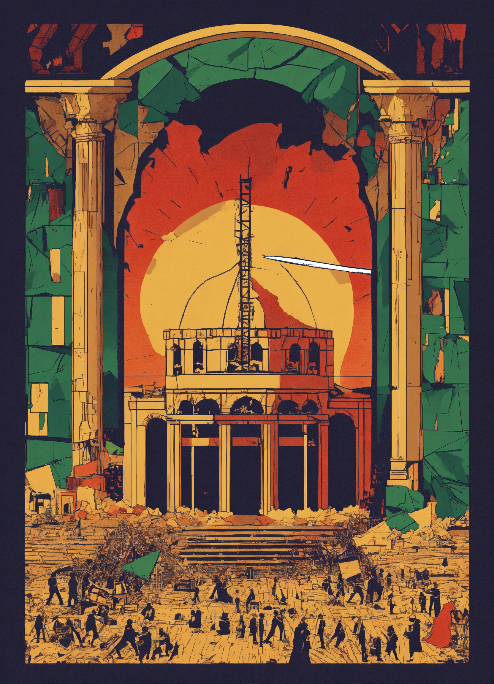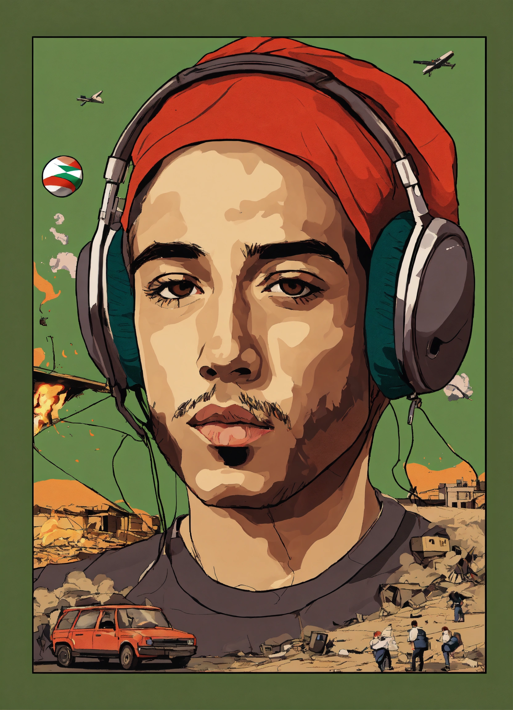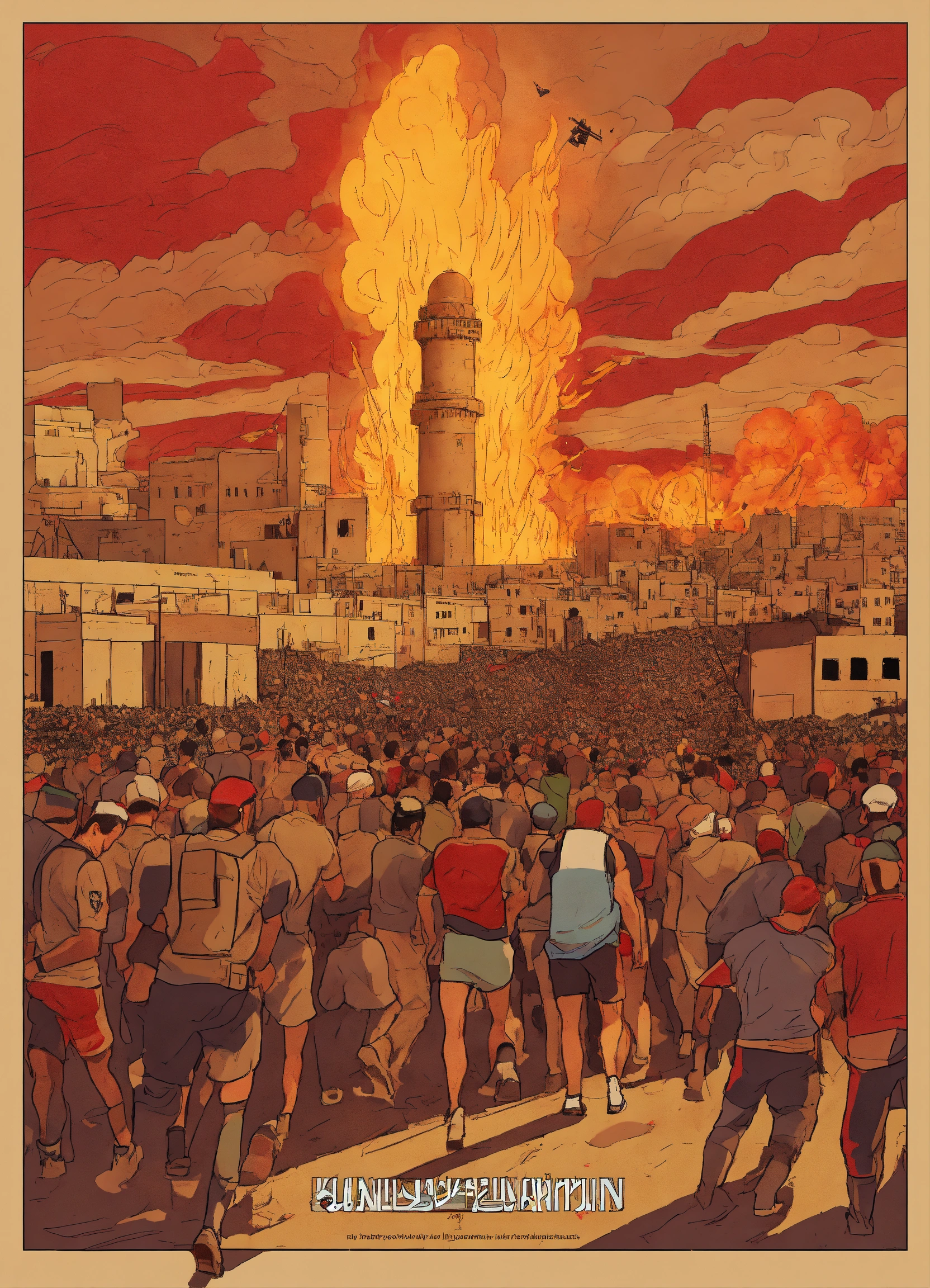 A design that illustrates the silence of celebrities, including athletes, artists, players, and other notable figures, regarding the palestinian issue and their absence of commentary on the continuous bombardments by israel on gaza. they have not expressed their opinions through pictures, videos, or any other form of participation on their social media platforms, which has upset their audience. they neither showed solidarity with the injured nor the wounded. the design could depict a silent phone next to destroyed, burning buildings, or a collapsed, ablaze building due to the bombardment, with missiles possibly scattered on the ground.
