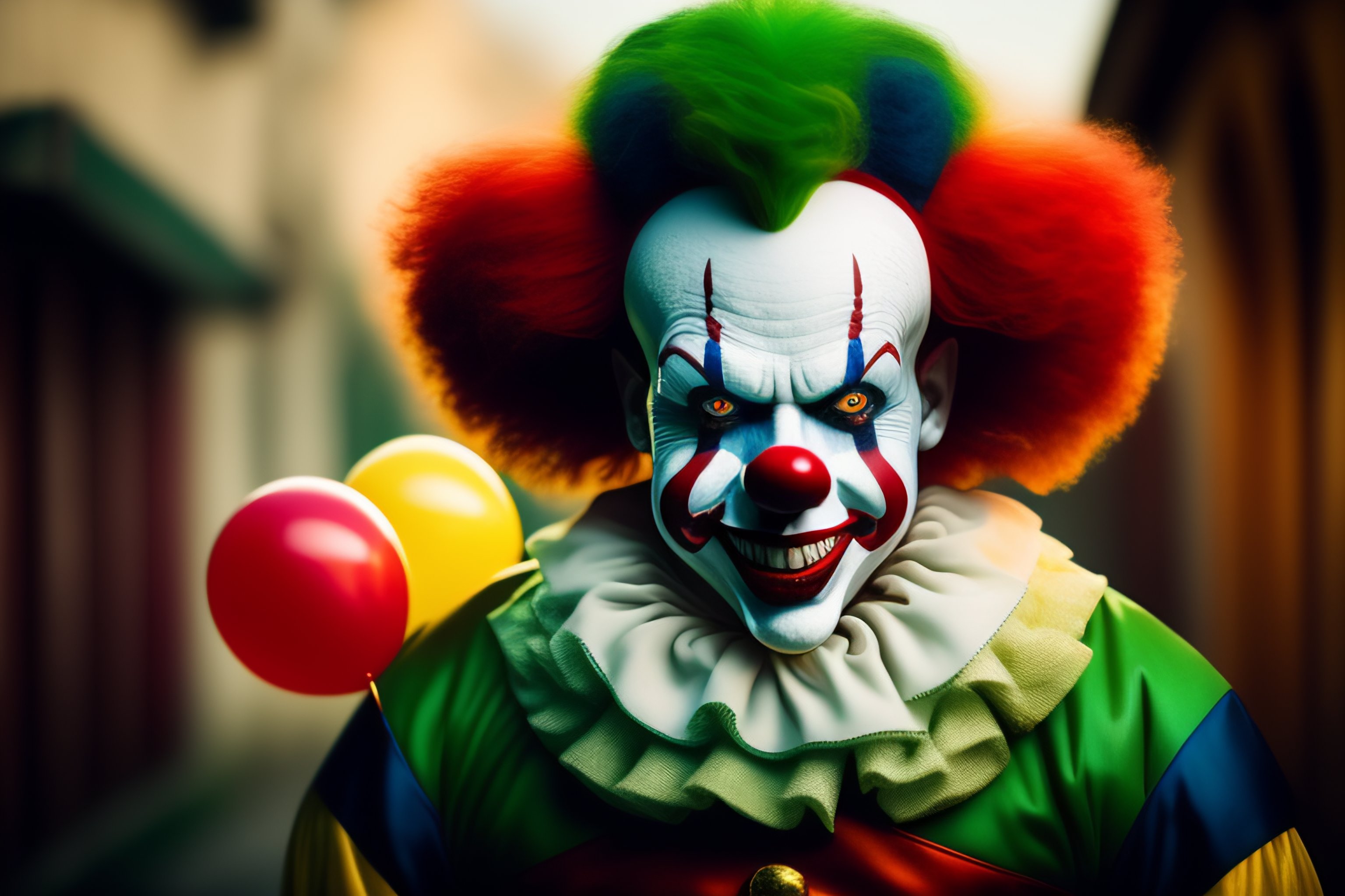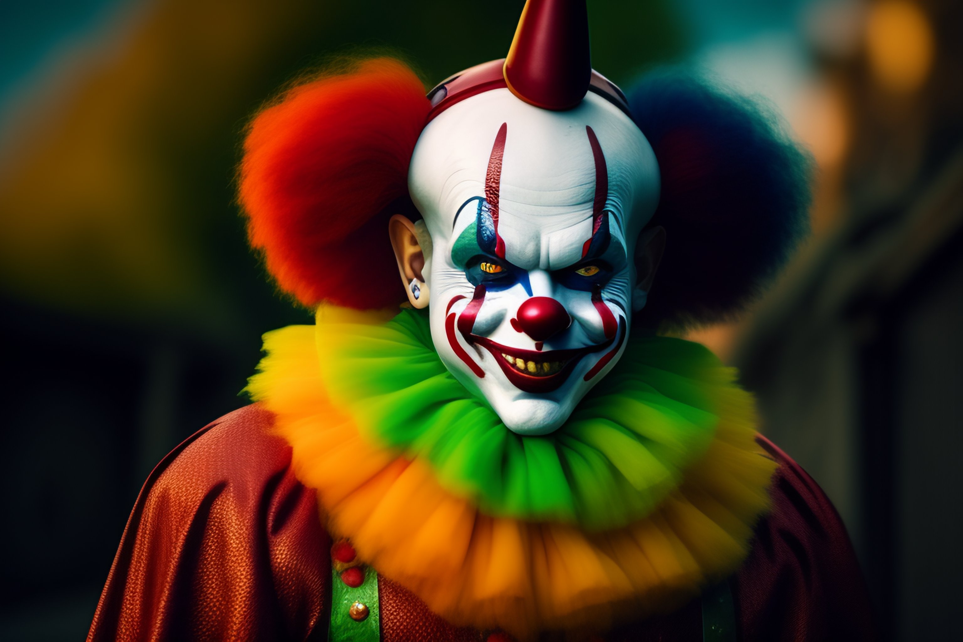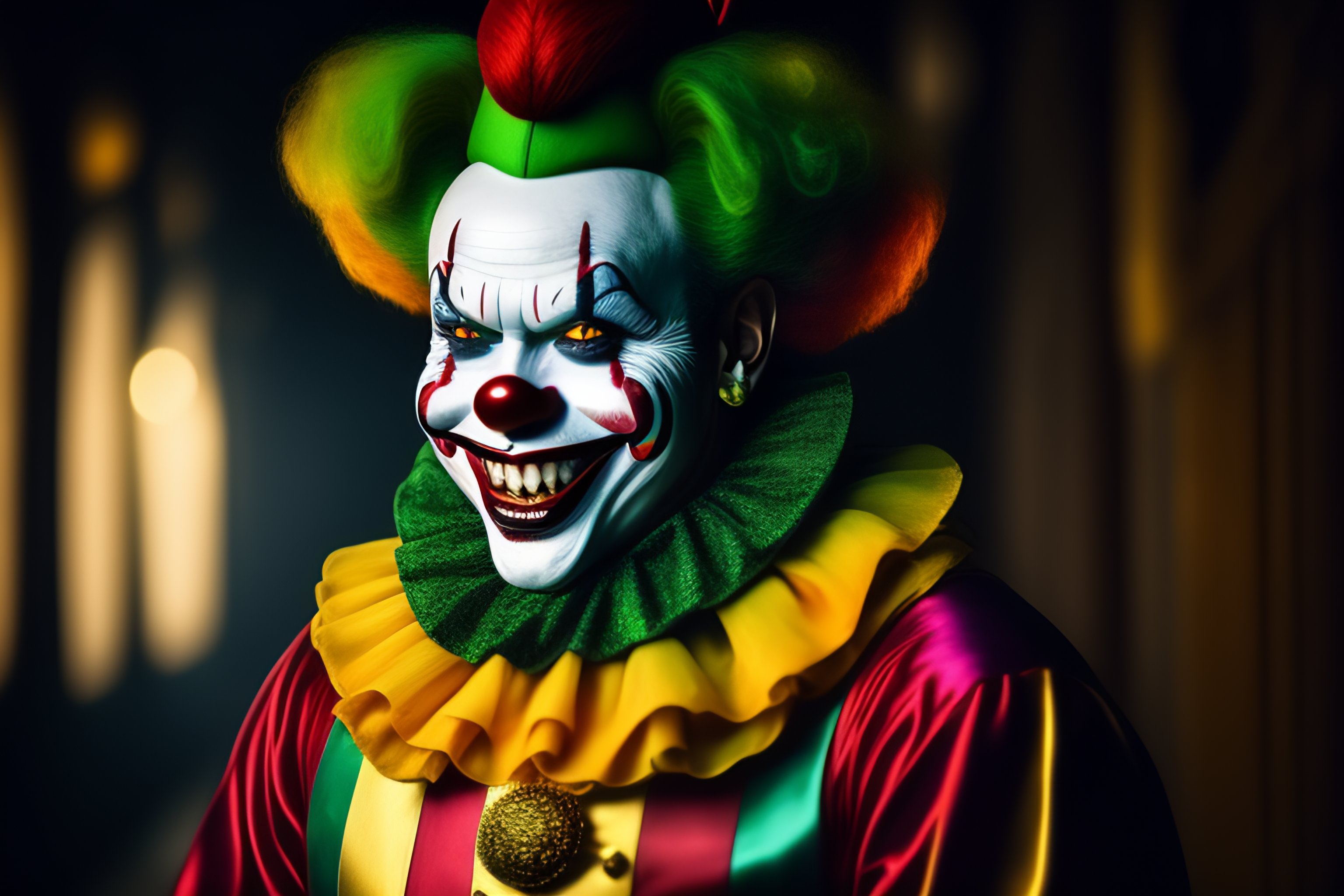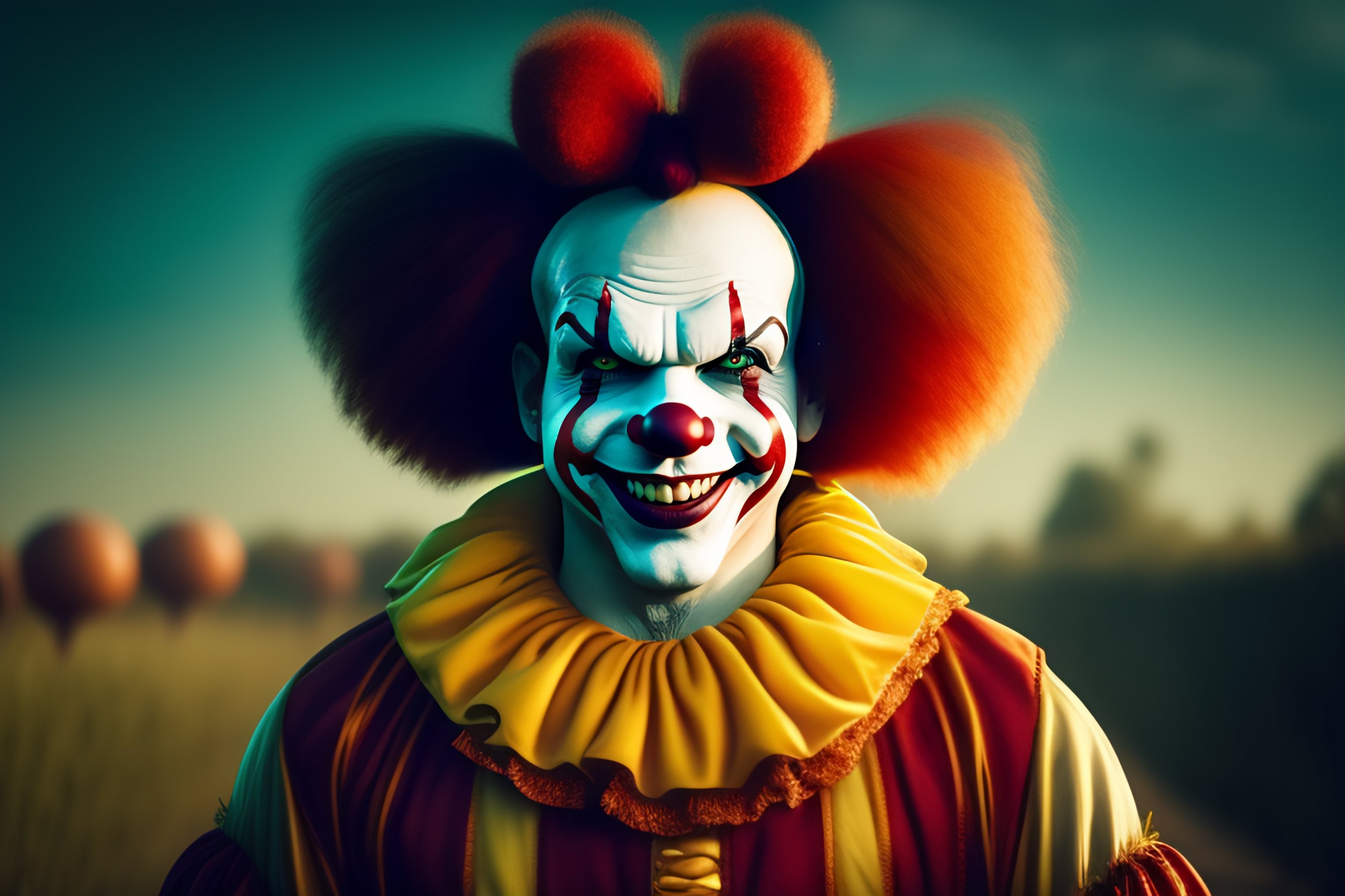 Clown, pennywise, payaso it movie, realismo, realista, 4k, hq, 8k, malvado, sonrisa, pelo verde, futurista, cibernético, futuro