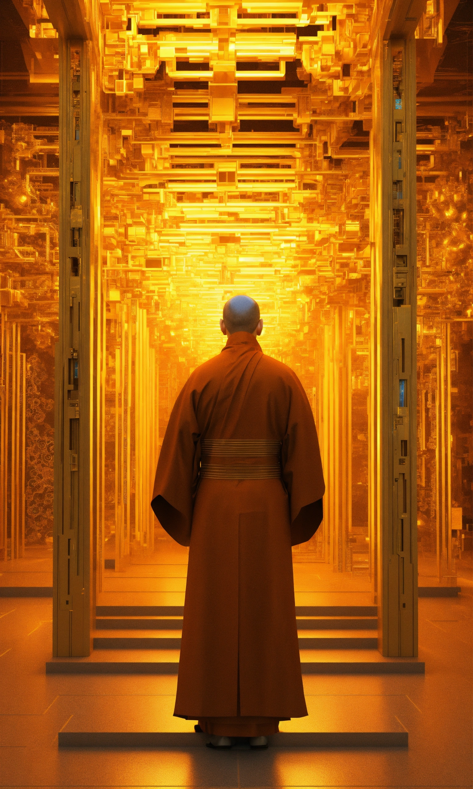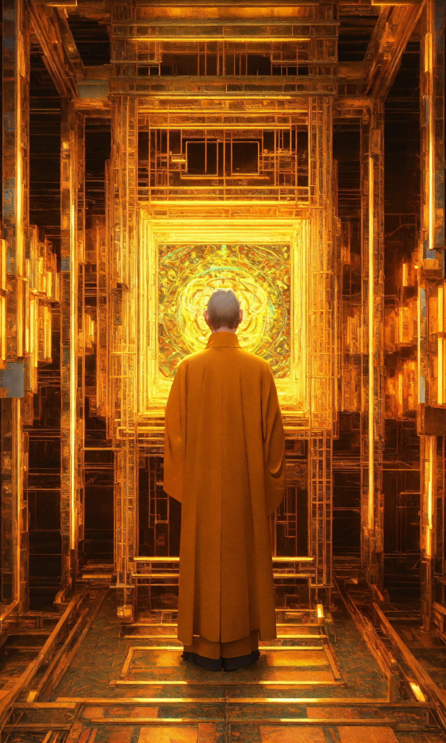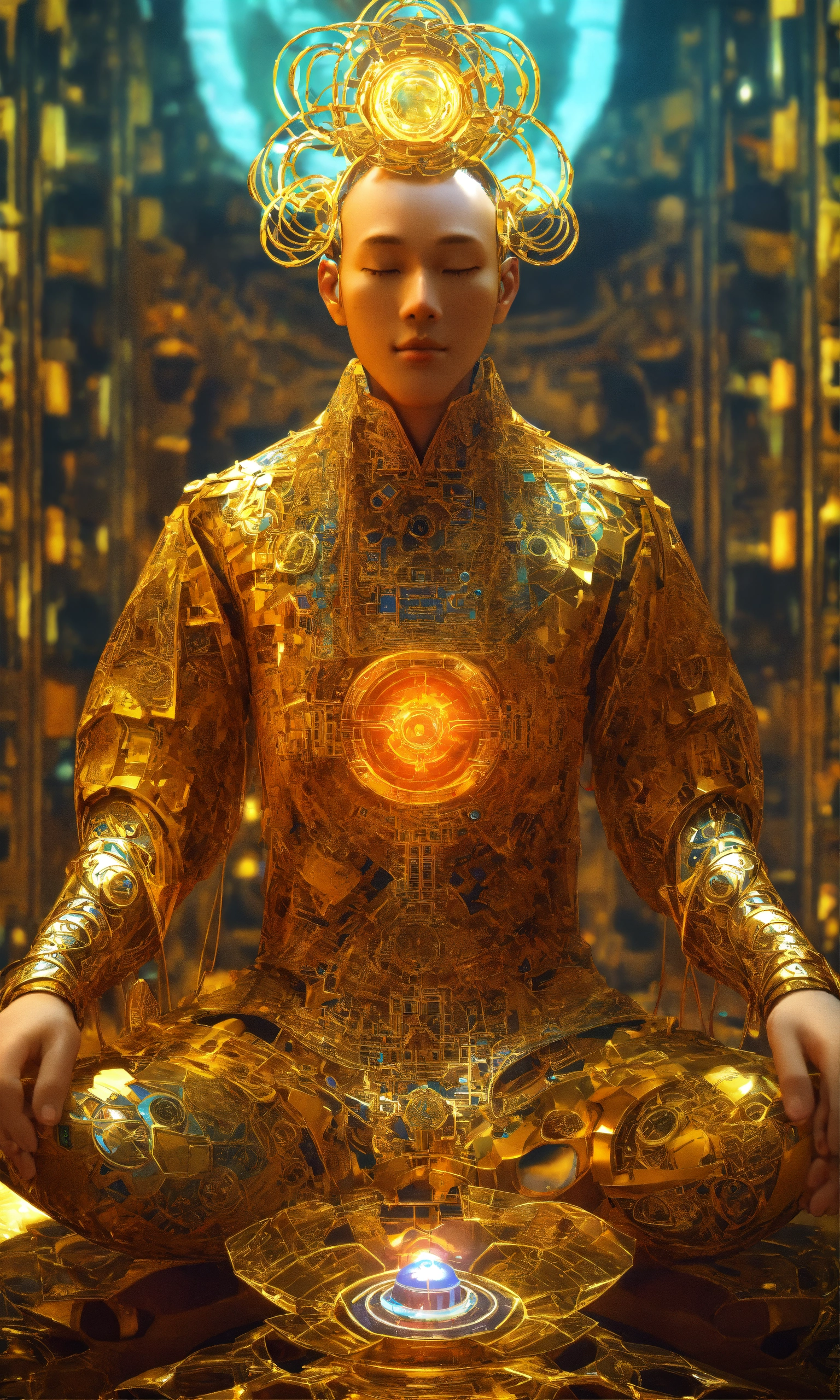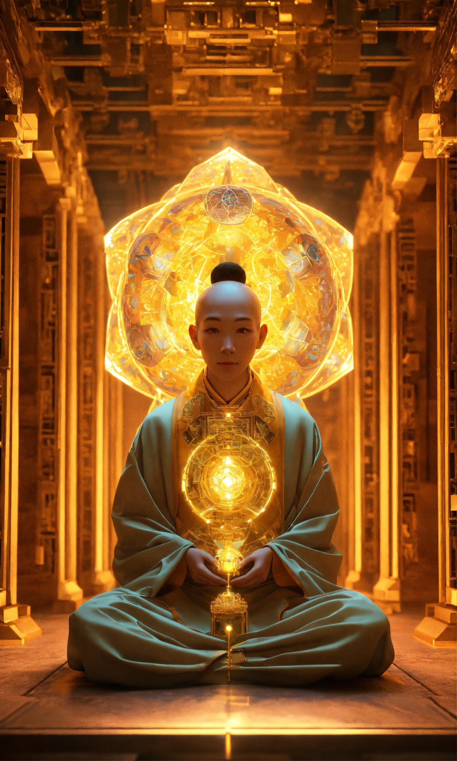 4th dimension complex fractal geometry tesseracts life daoist monk self-transforming machines 3d render