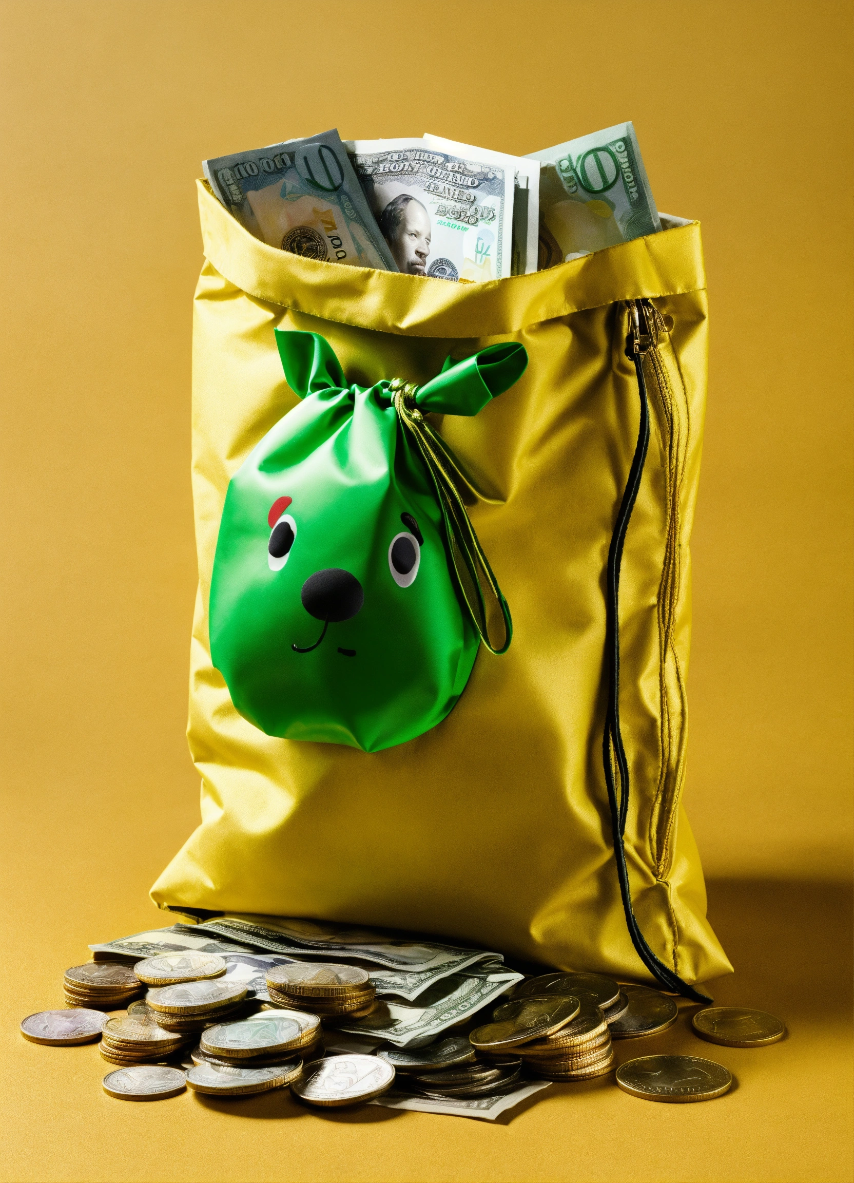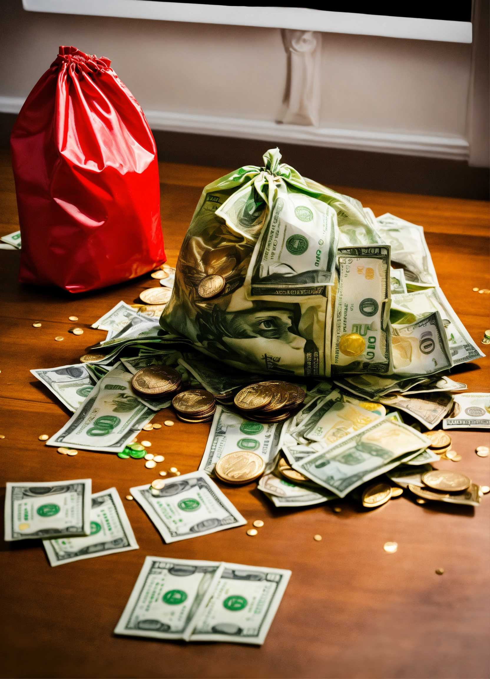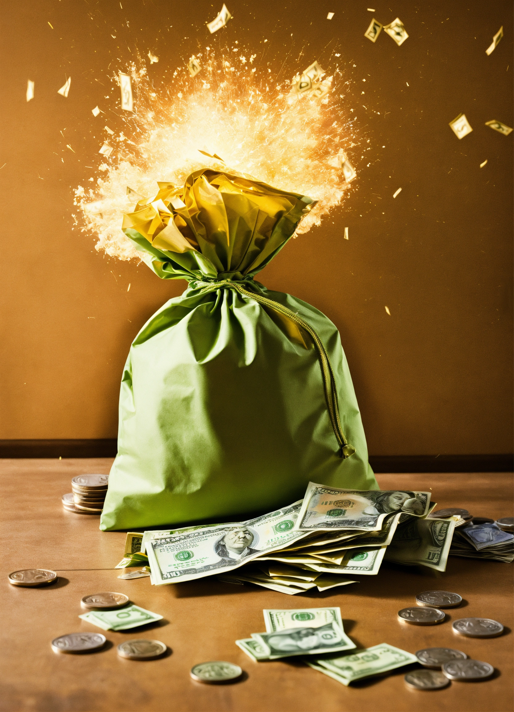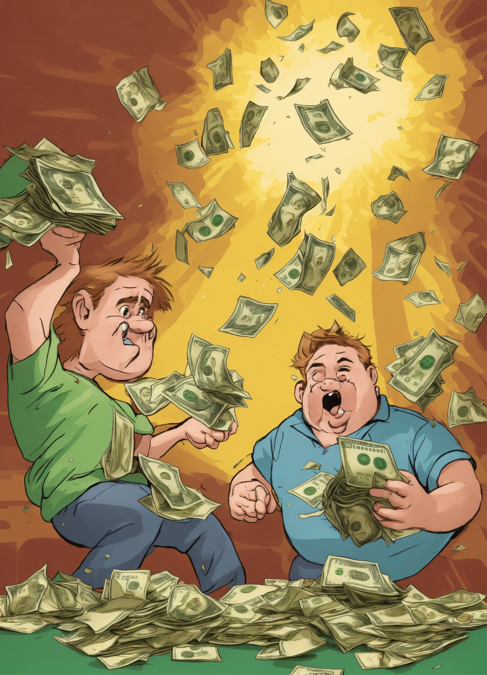 Create a humorous scenario where characters attempt to 'out-prank' each other using money-themed gags and tricks, including the prank of an "exploding money bag."