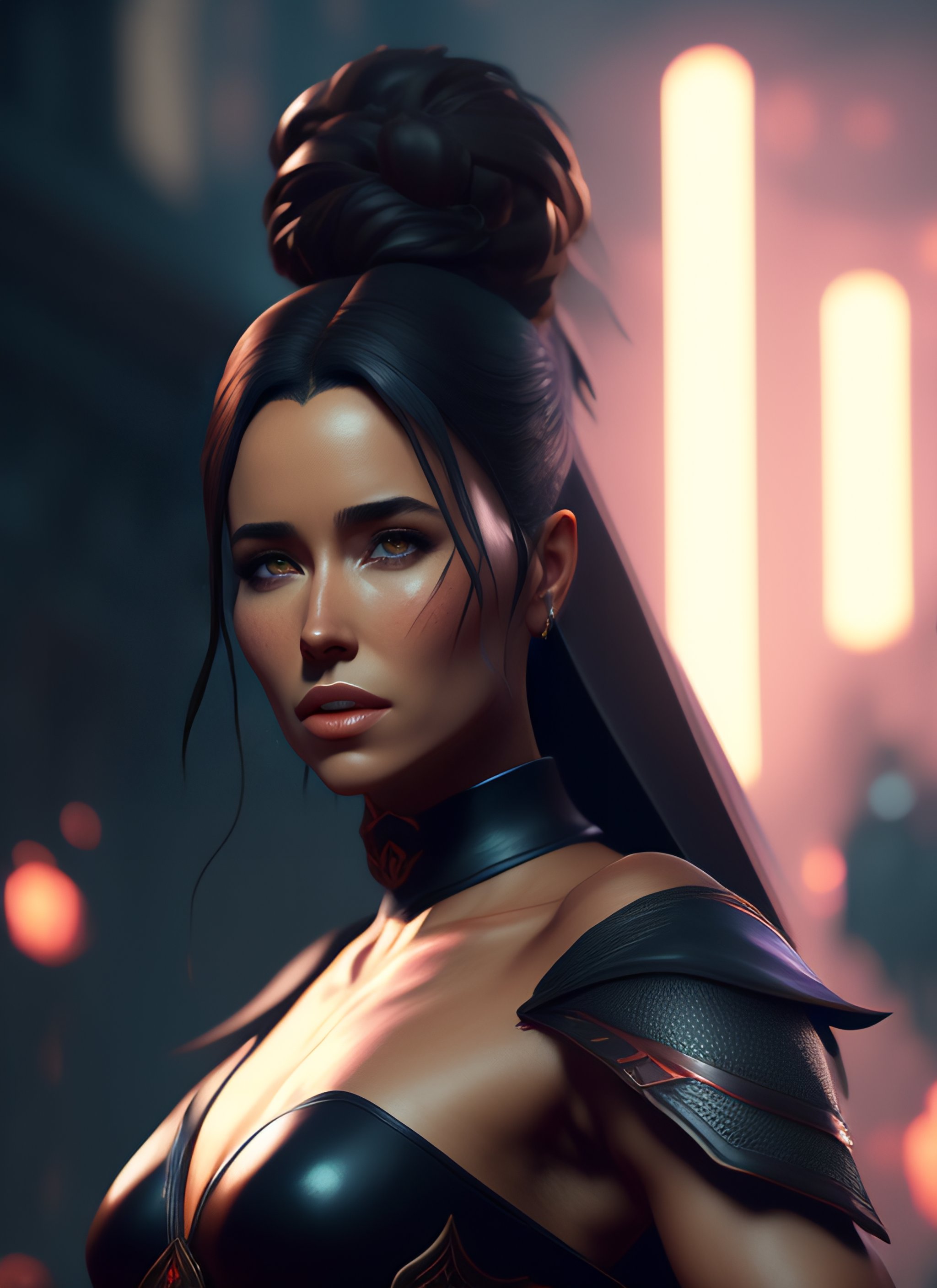 Mdjrny-v4 style fullbody, legs, scene of linda cardellini on knees as an assassin, painting of a beautiful rpg rogue, black:1.5 tight leather robes, intricate details, very detail hair, very detail eyes, intense face, [elden ring|d & d] concept art, rpg portrait, octane render, cinematic lighting, (soft shadow:1.2), depth of field, splash art, art by wlop and greg rutkowski