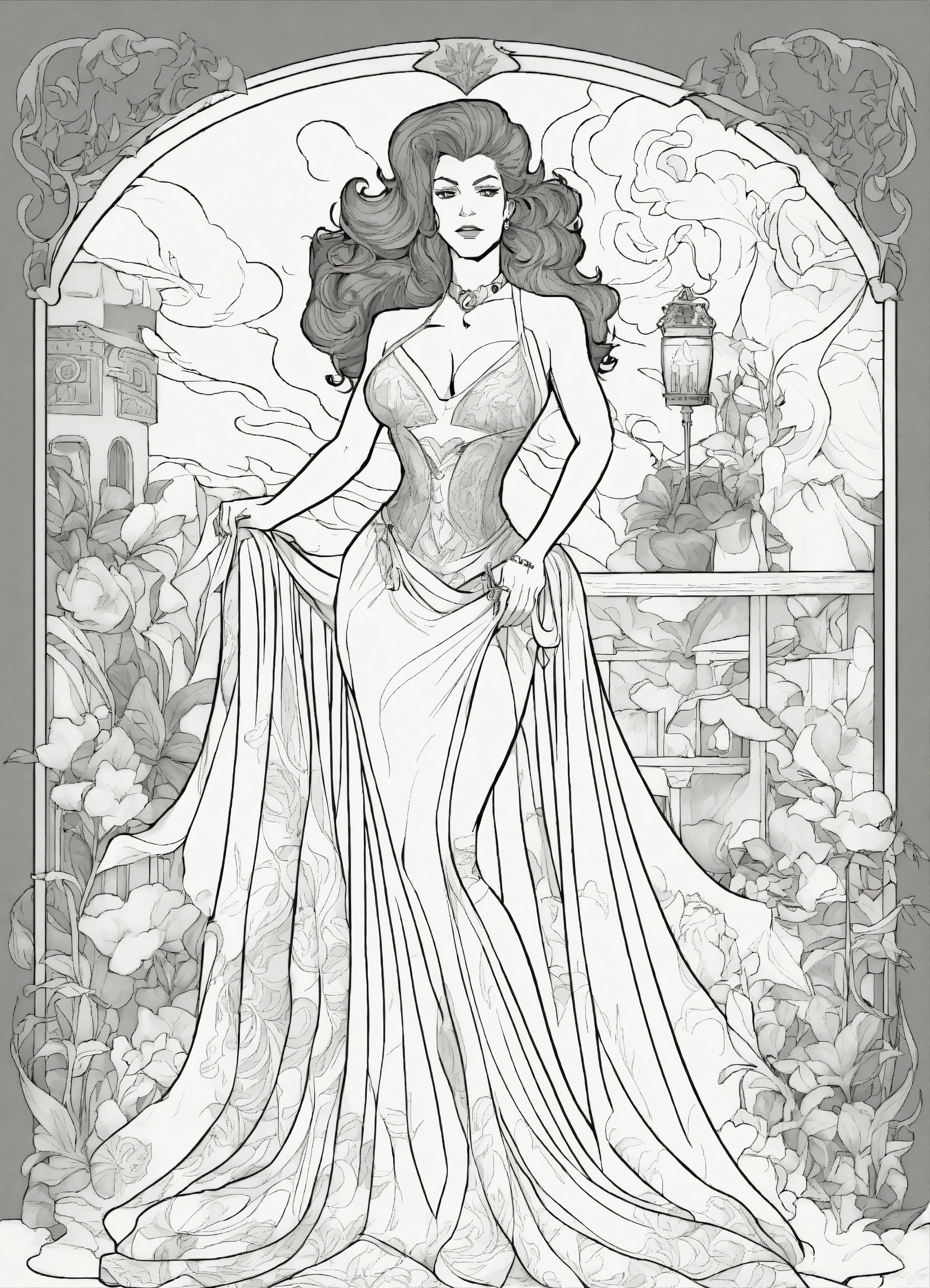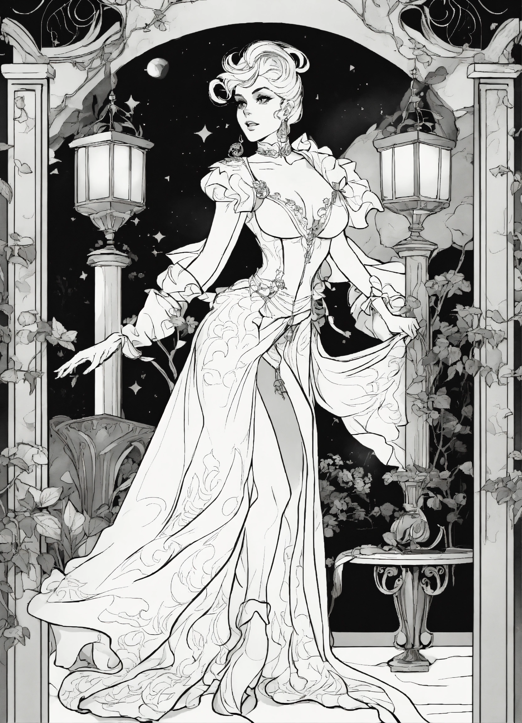 Adult coloring book page of a handsome ghost pin-up, line art, black and white, vector art, full body