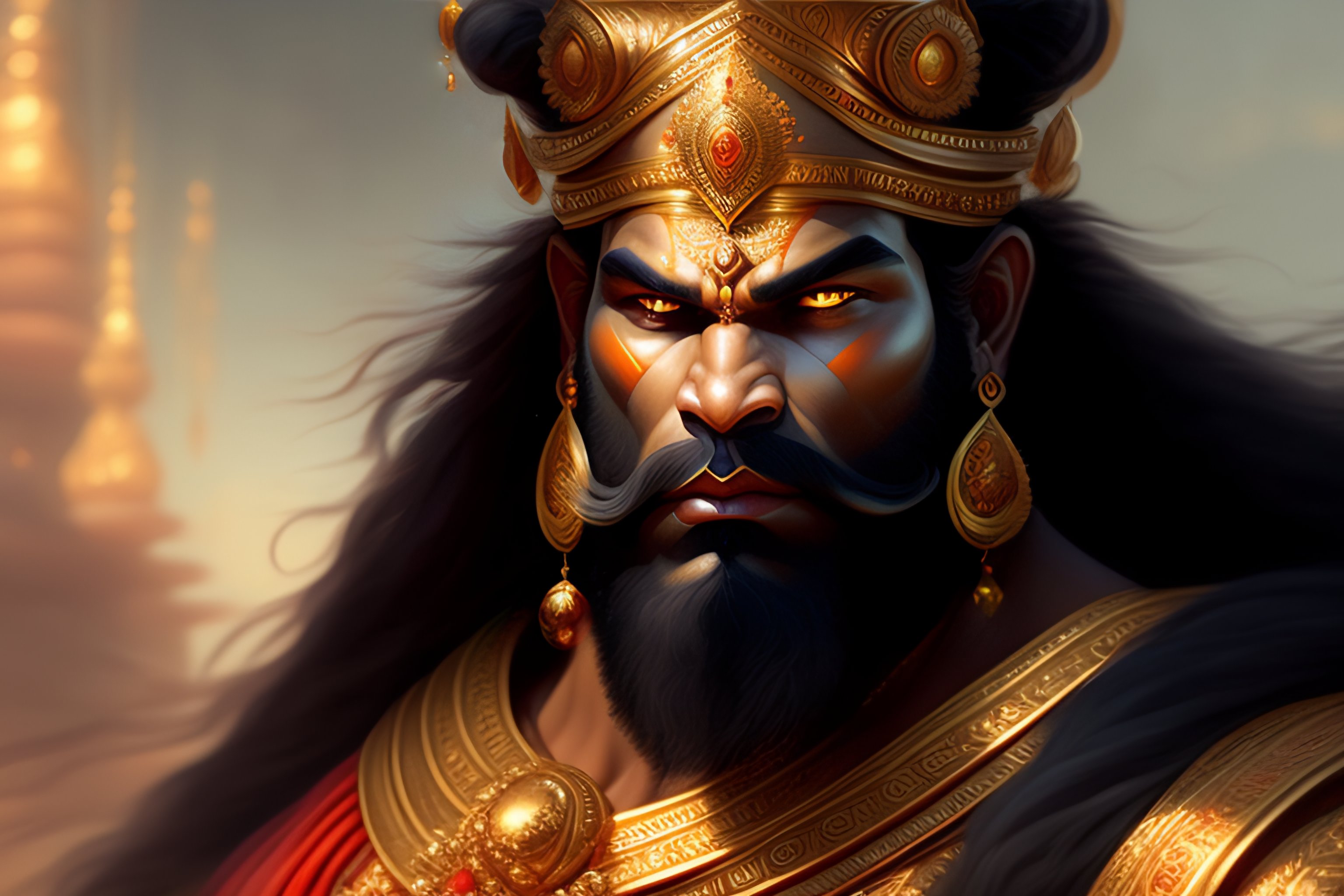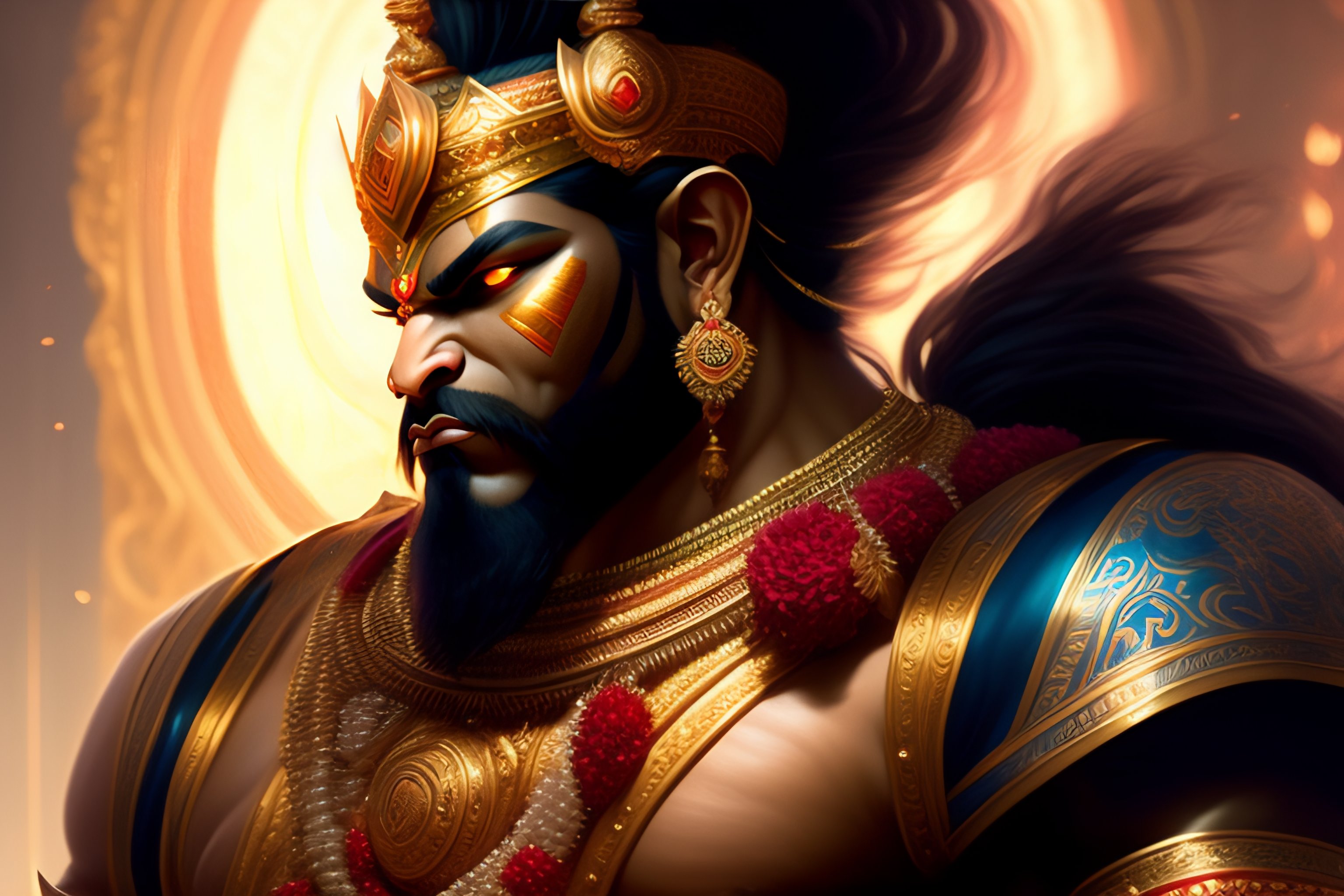 Image of angry hindu god hanuman, d & d, beautiful, renaissance, fantasy, intricate, elegant, hindu, highly detailed, digital painting, artstation, concept art, smooth, sharp focus, illustration, art by artgerm and greg rutkowski and alphonse mucha, wallpaper, rule of third