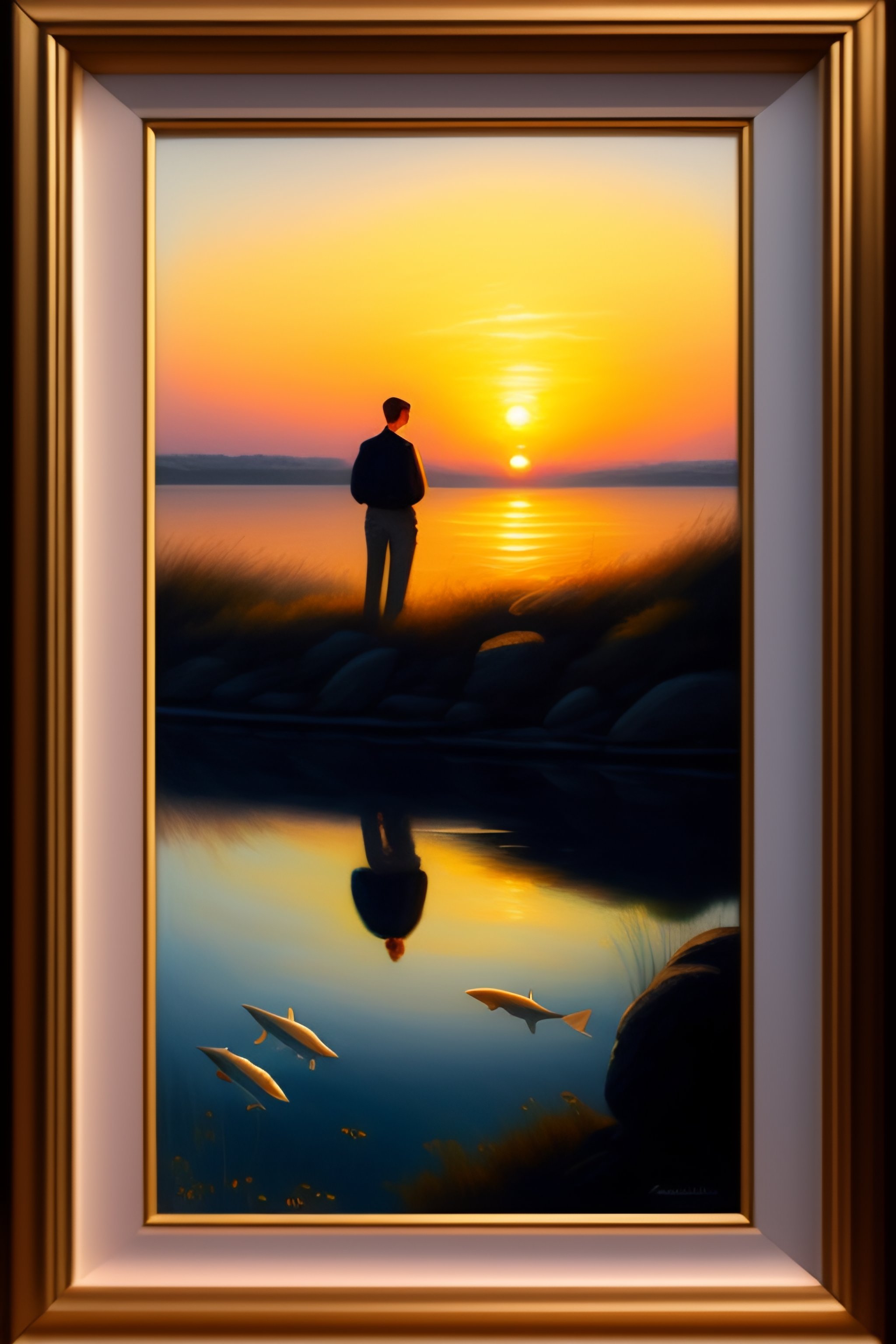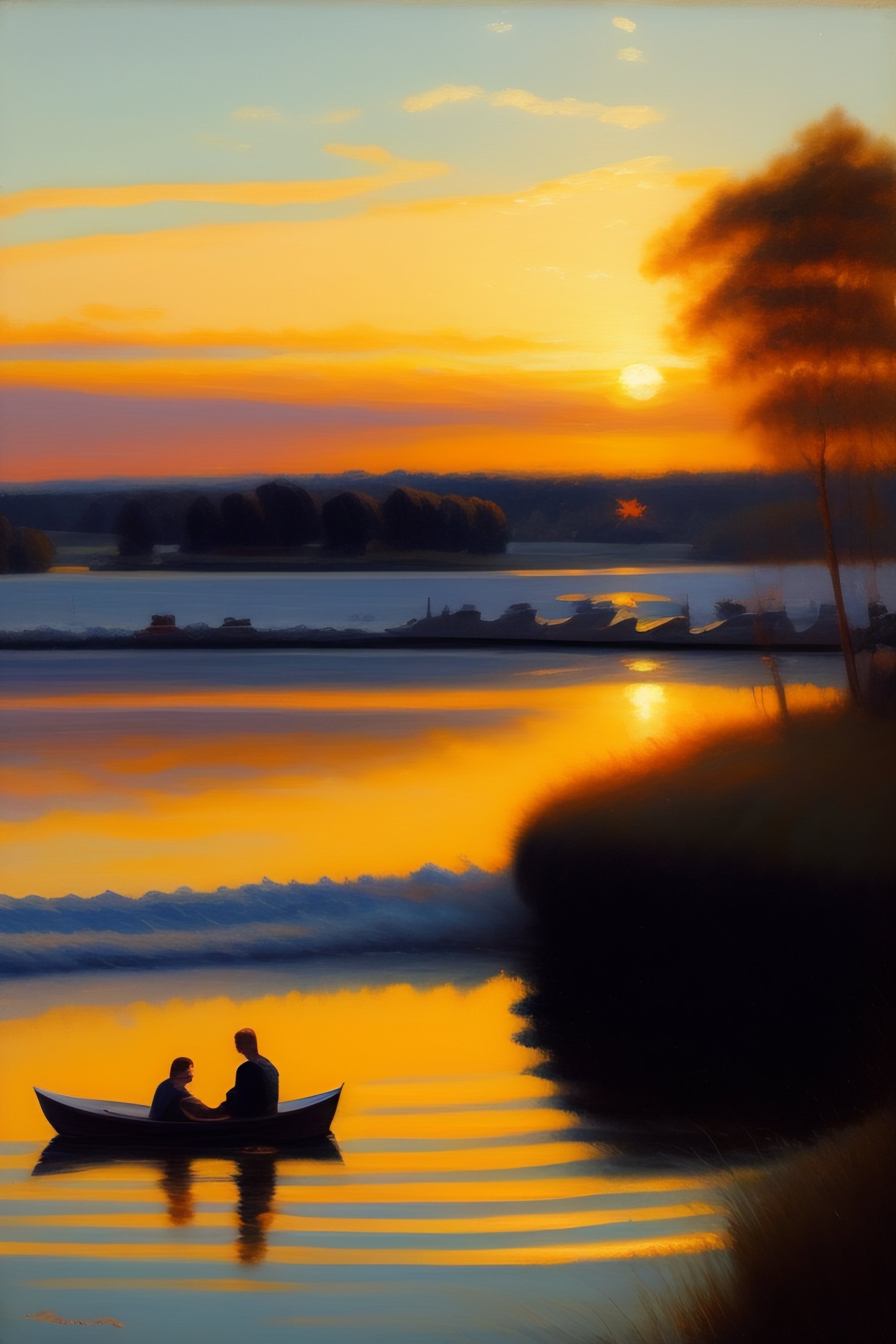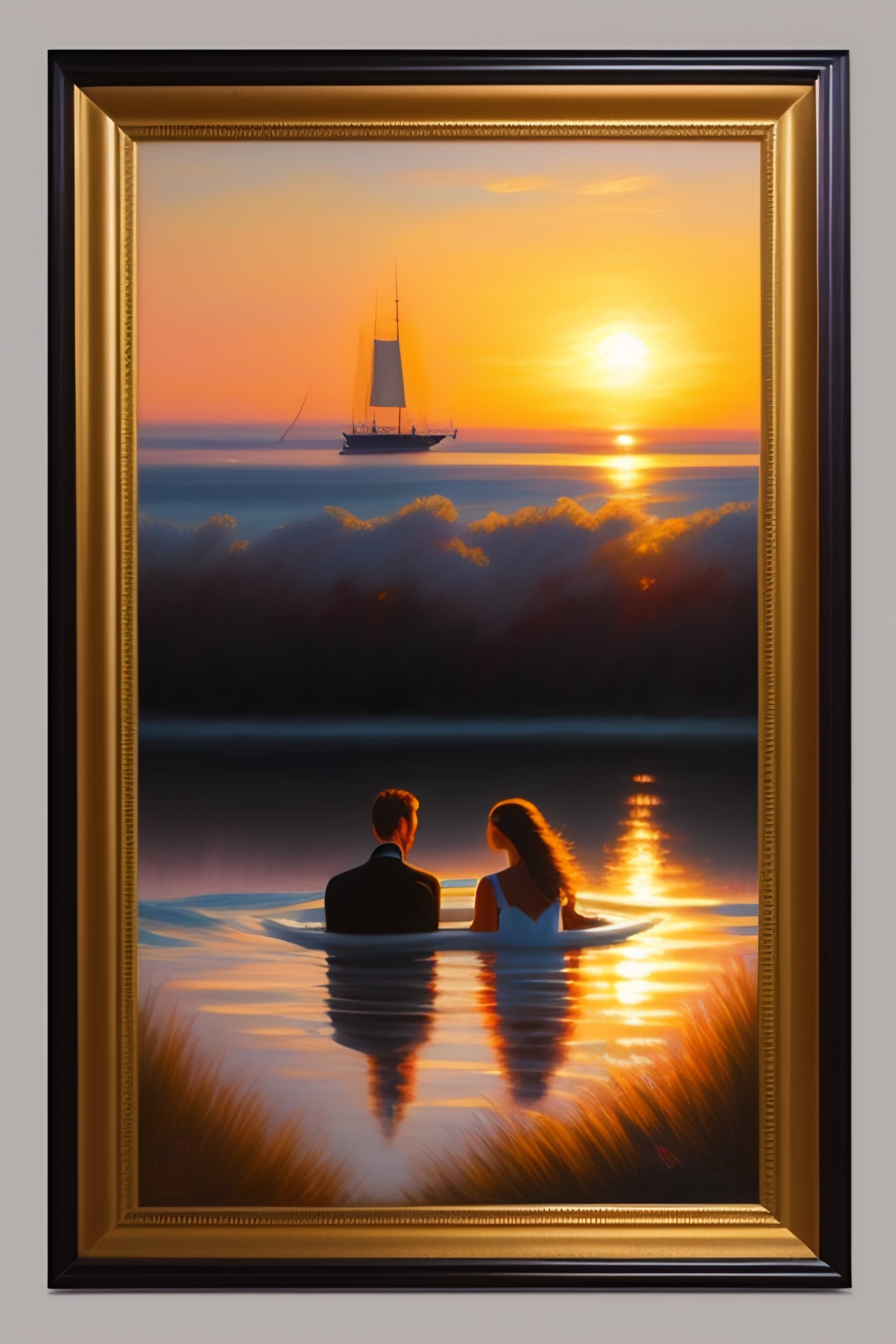 A high quality painting of a young couple swimming in the sunrise in the stye of p