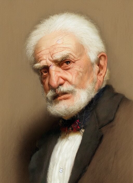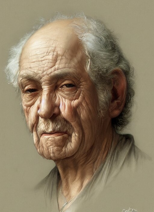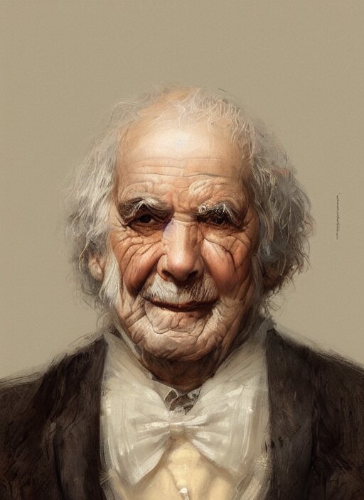 Formal portrait of aged baby with deep wrinkles and grey hair, digital art by eugene de blaas and ross tran, vibrant color scheme, intricately detailed, in the style of romanticism, cinematic, artstation, greg rutkowski