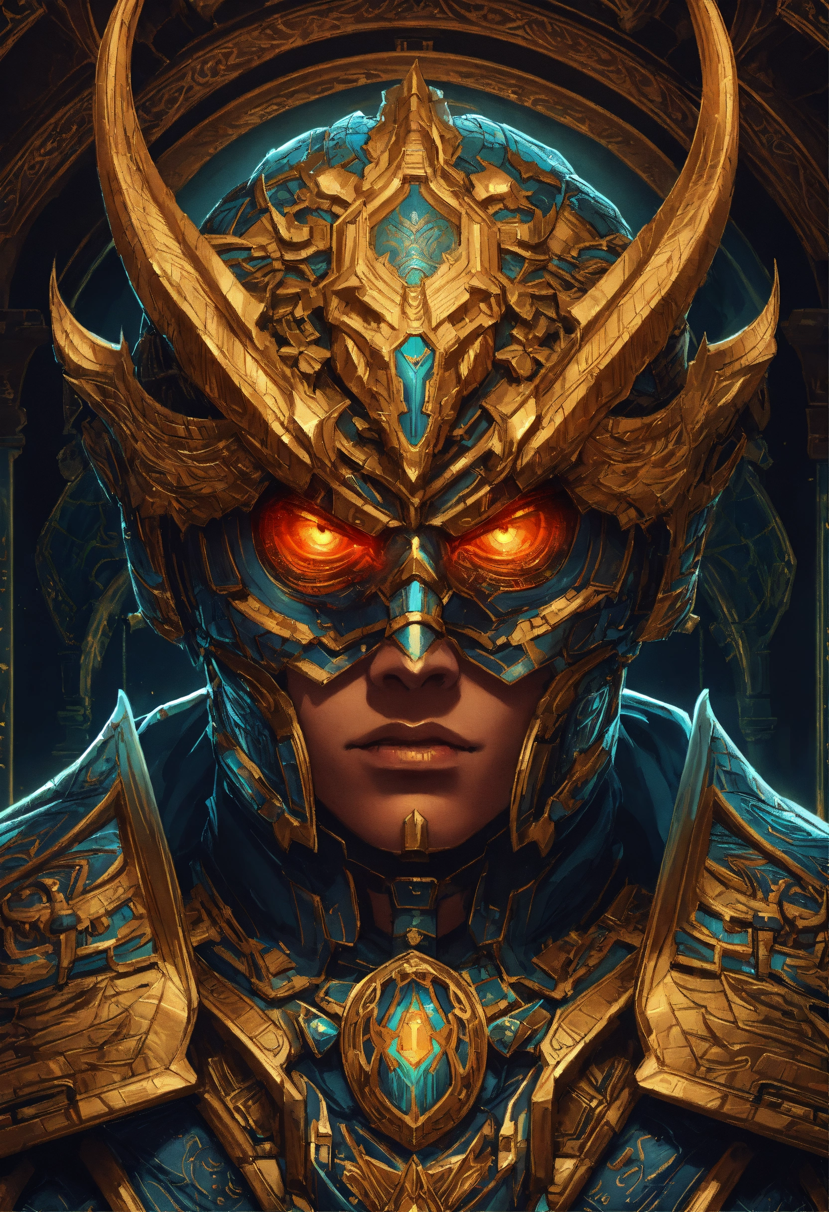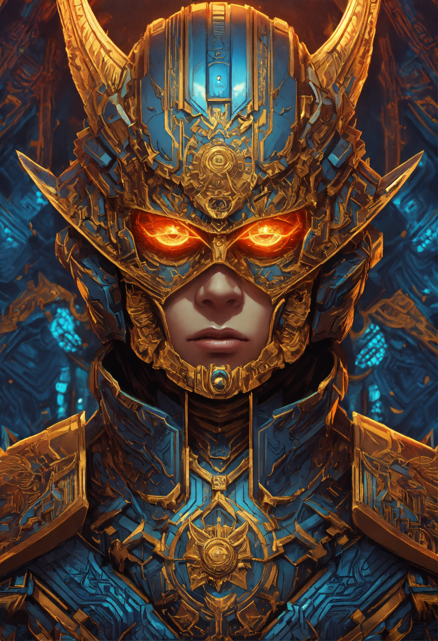A close up of a cyclops wearing an amulet, symmetrical epic art, symmetrical portrait, in style of art, highly detailed art, ornate dramatic bat wing amulet, detailed digital 2d art, dan mumford and alex grey style, intricate armor, in the style dan mumford artwork, symmetric concept art, face of an armored villain, cyberpunk