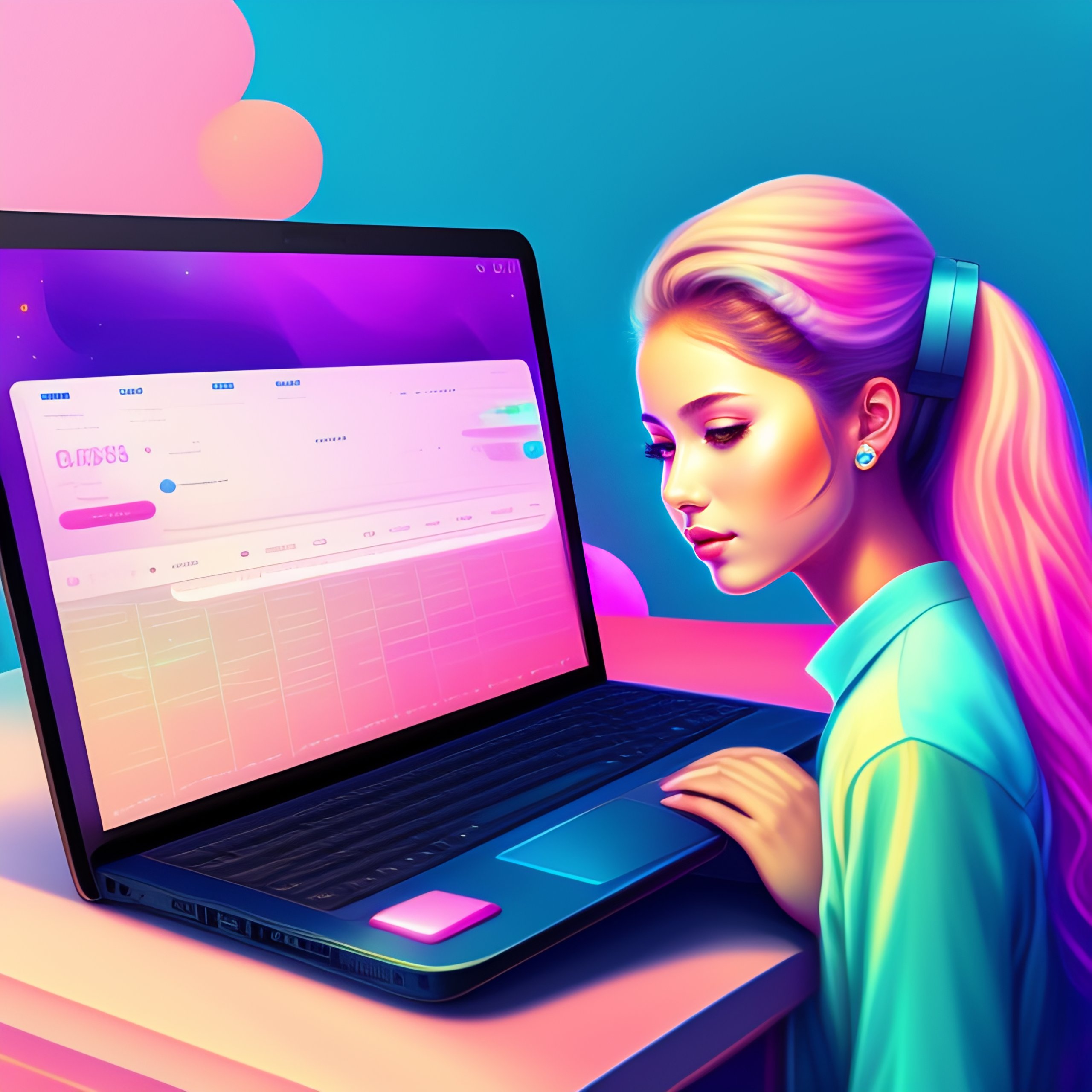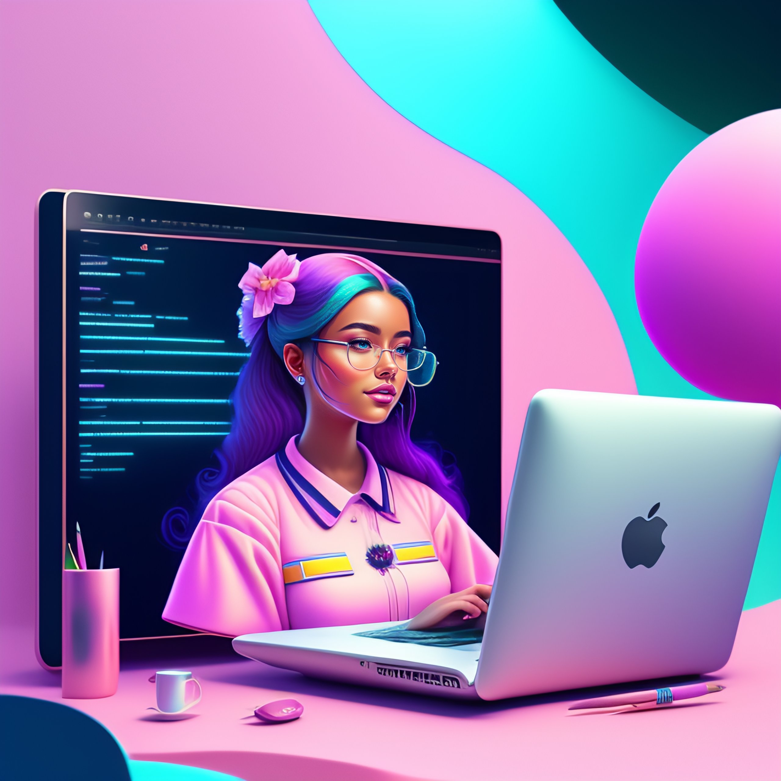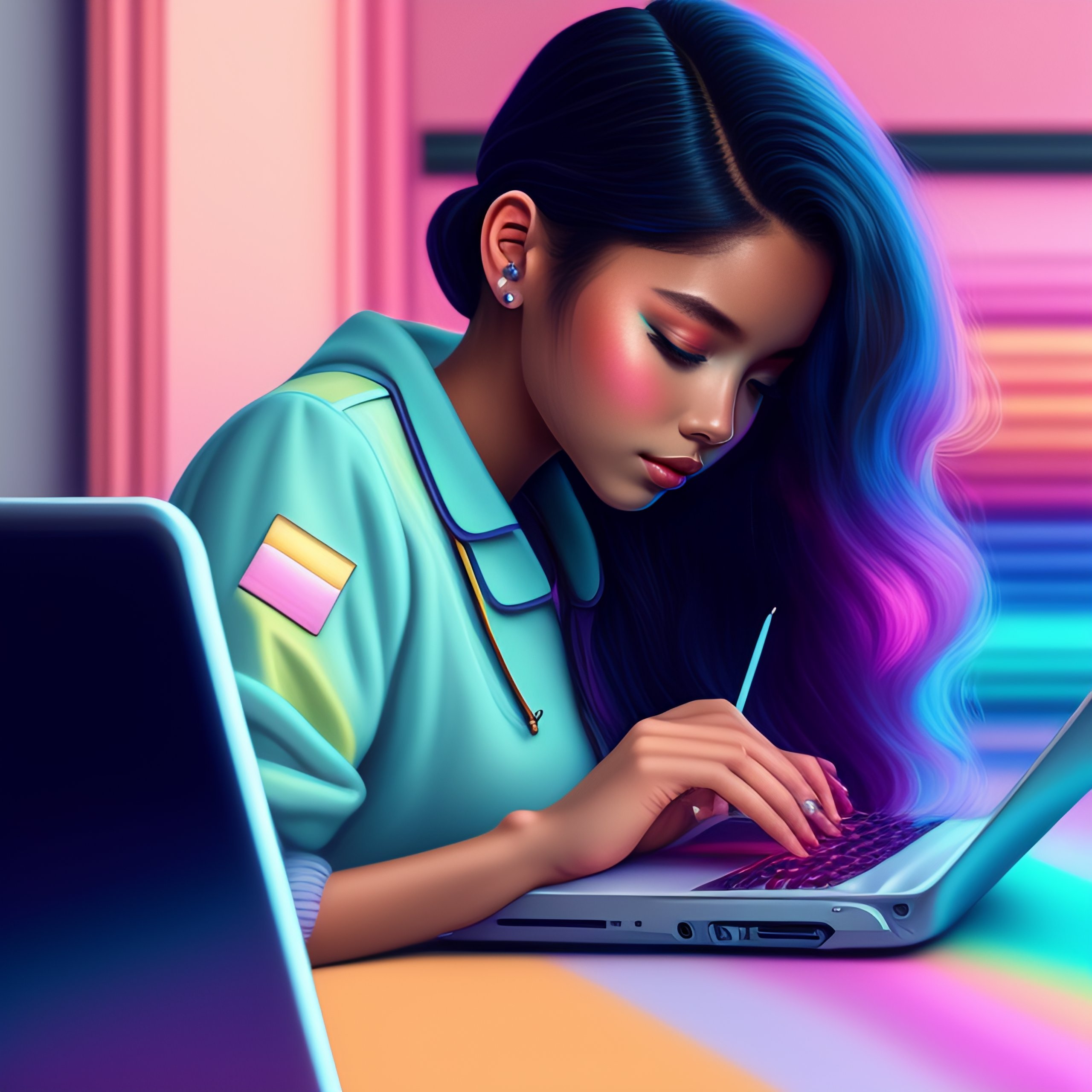 Girl programming on her laptop, pastel colors aesthetic, highly detailed, digital painting, concept art, illustration