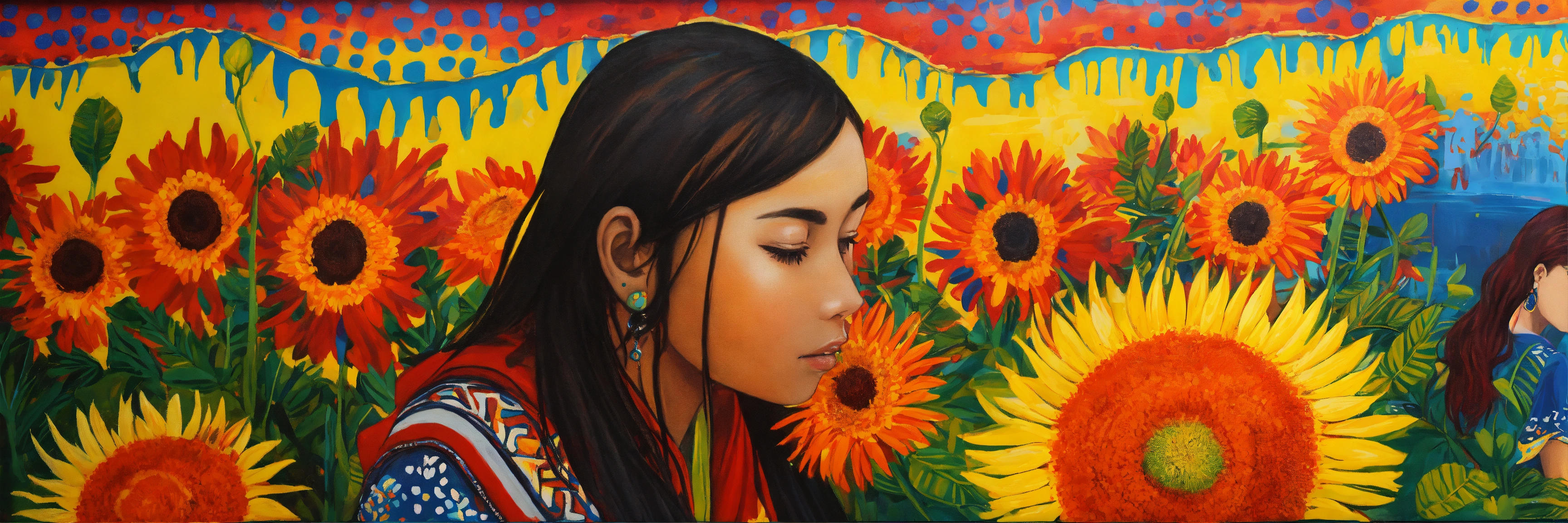 Pintura, de mujeres de distintas etnias o razas, no uses fottografías, quiero pintura, that showcases empathy osea the emotional involvement of a person in a reality outside of their own, usually in the feelings of another person, graffiti. abrazo entre dos mujeres, cariño, altruismo, yayoi kusama and nancy spero style