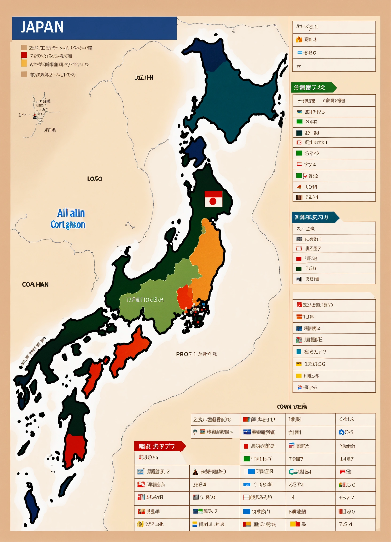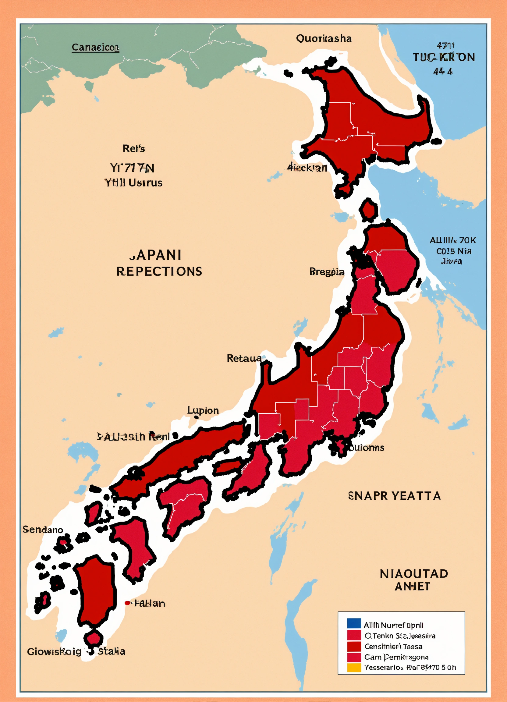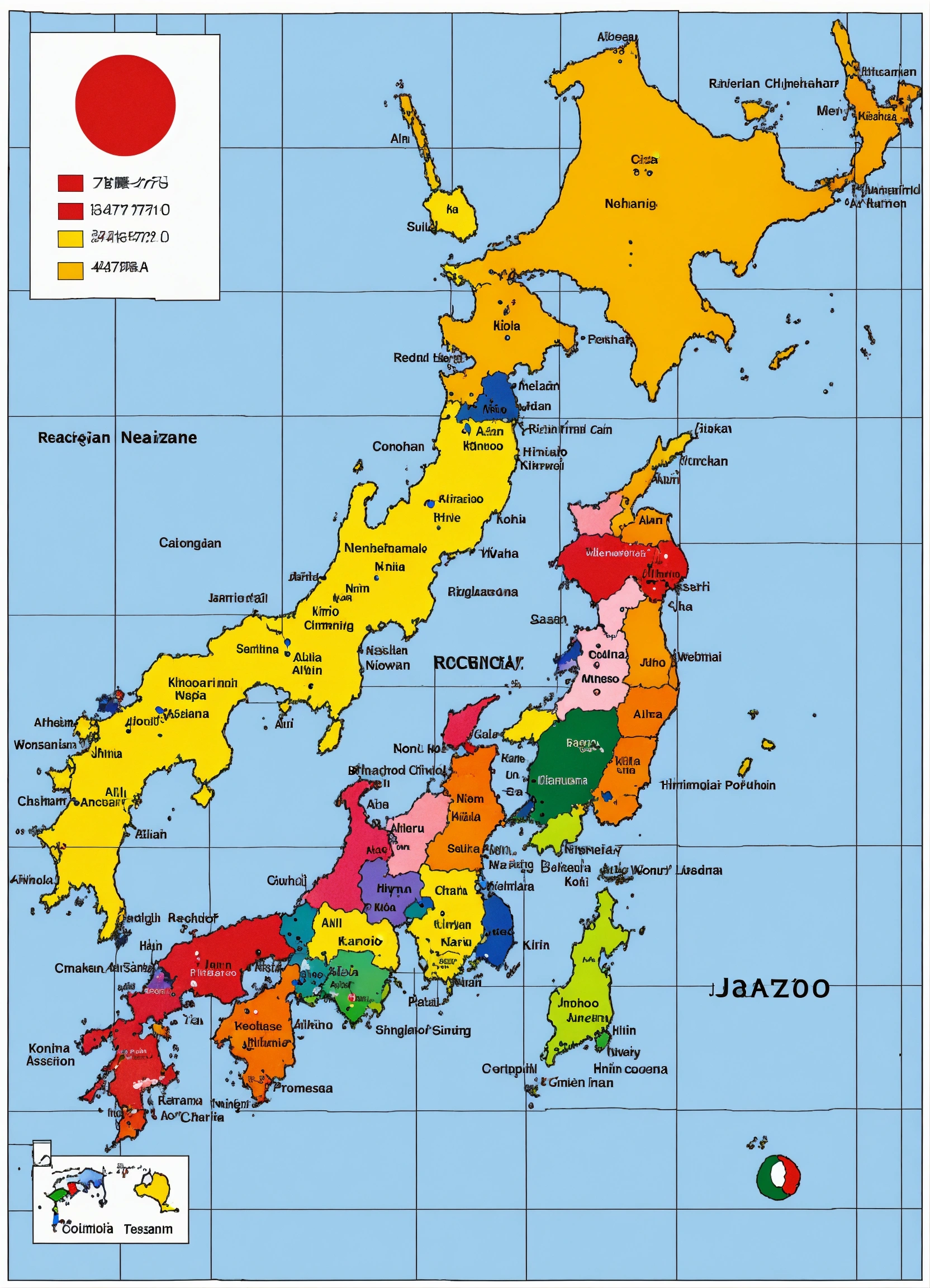 A map of japan showing all 47 regions with a number over each region