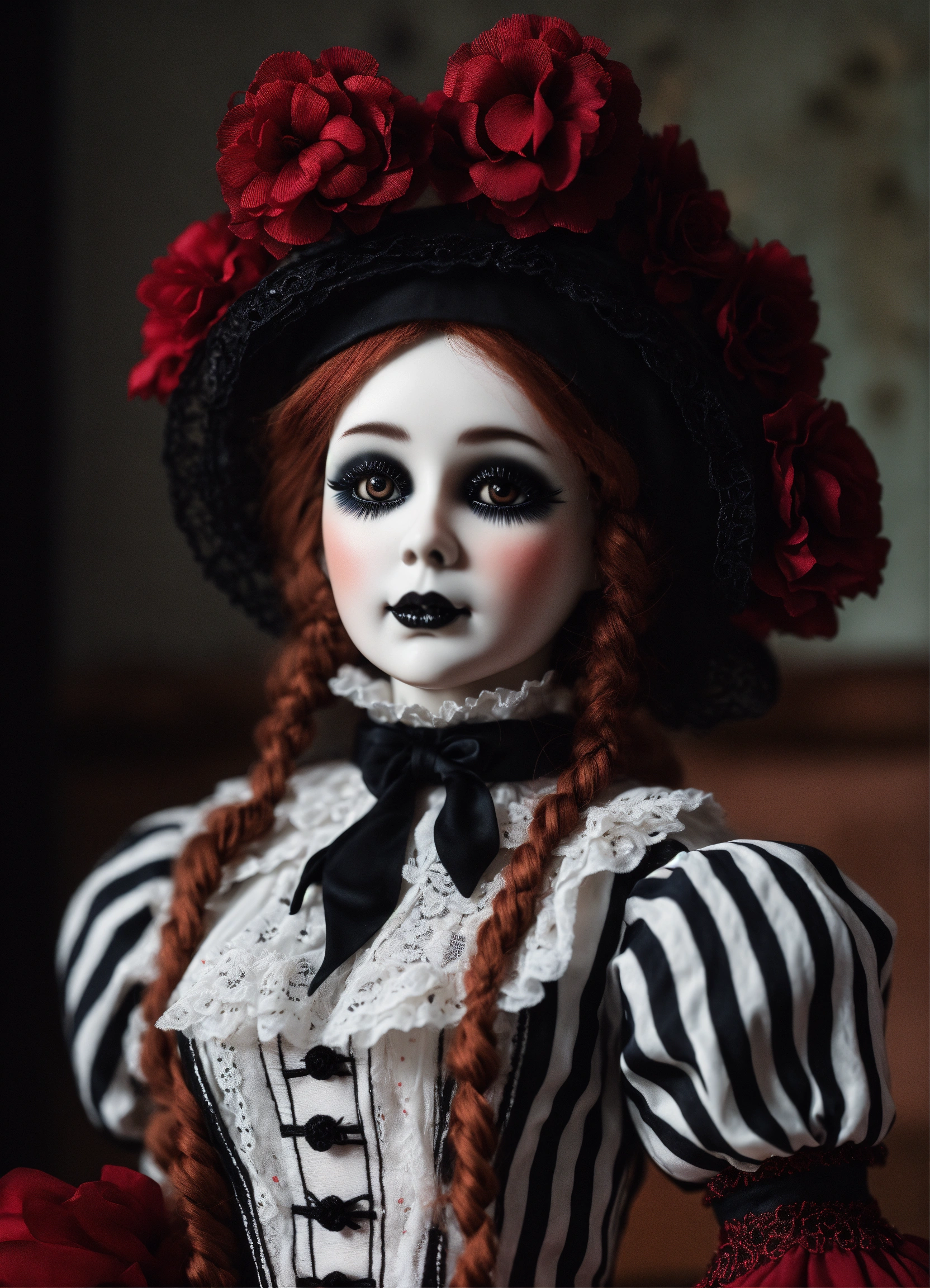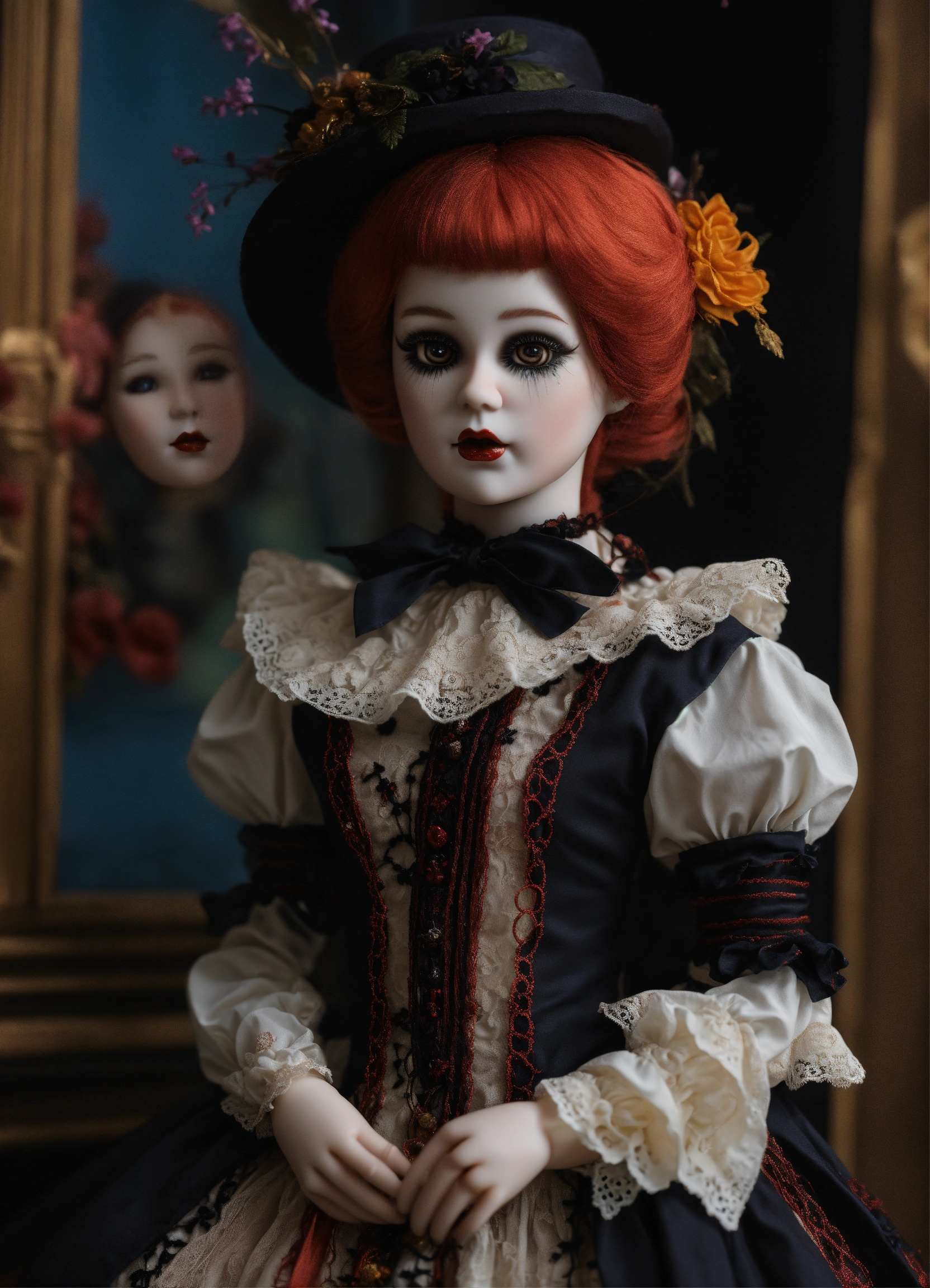 3d gothic porcelain dolls as mimes hyper realistic 8k