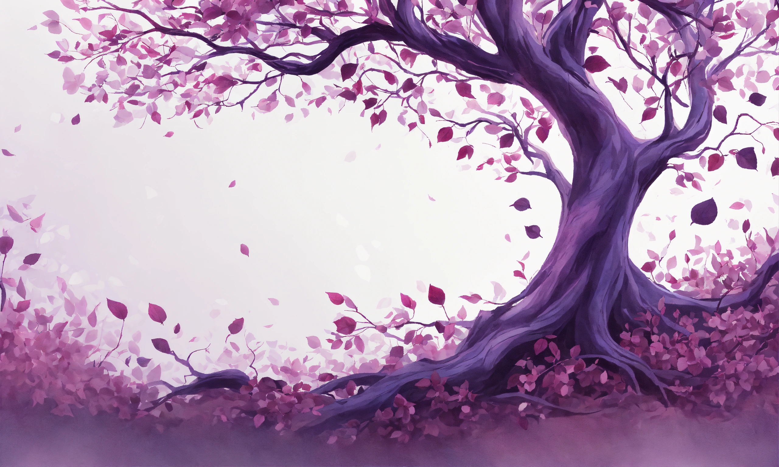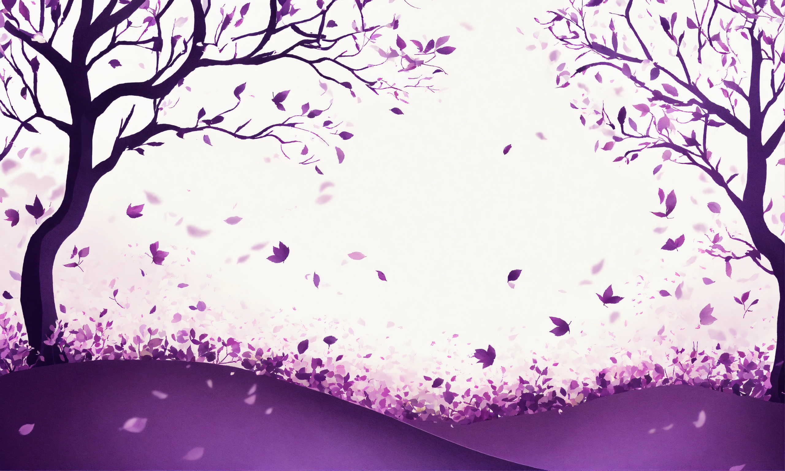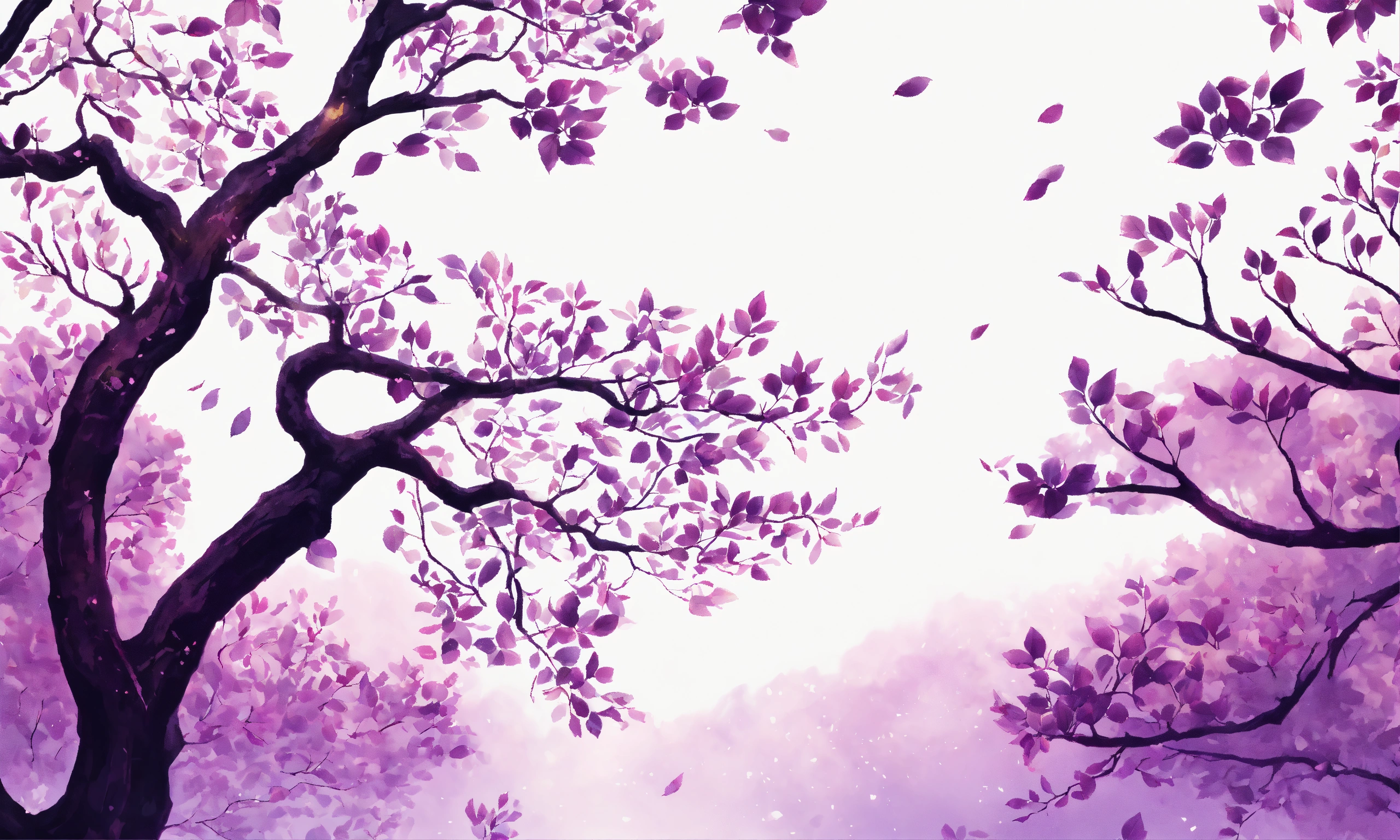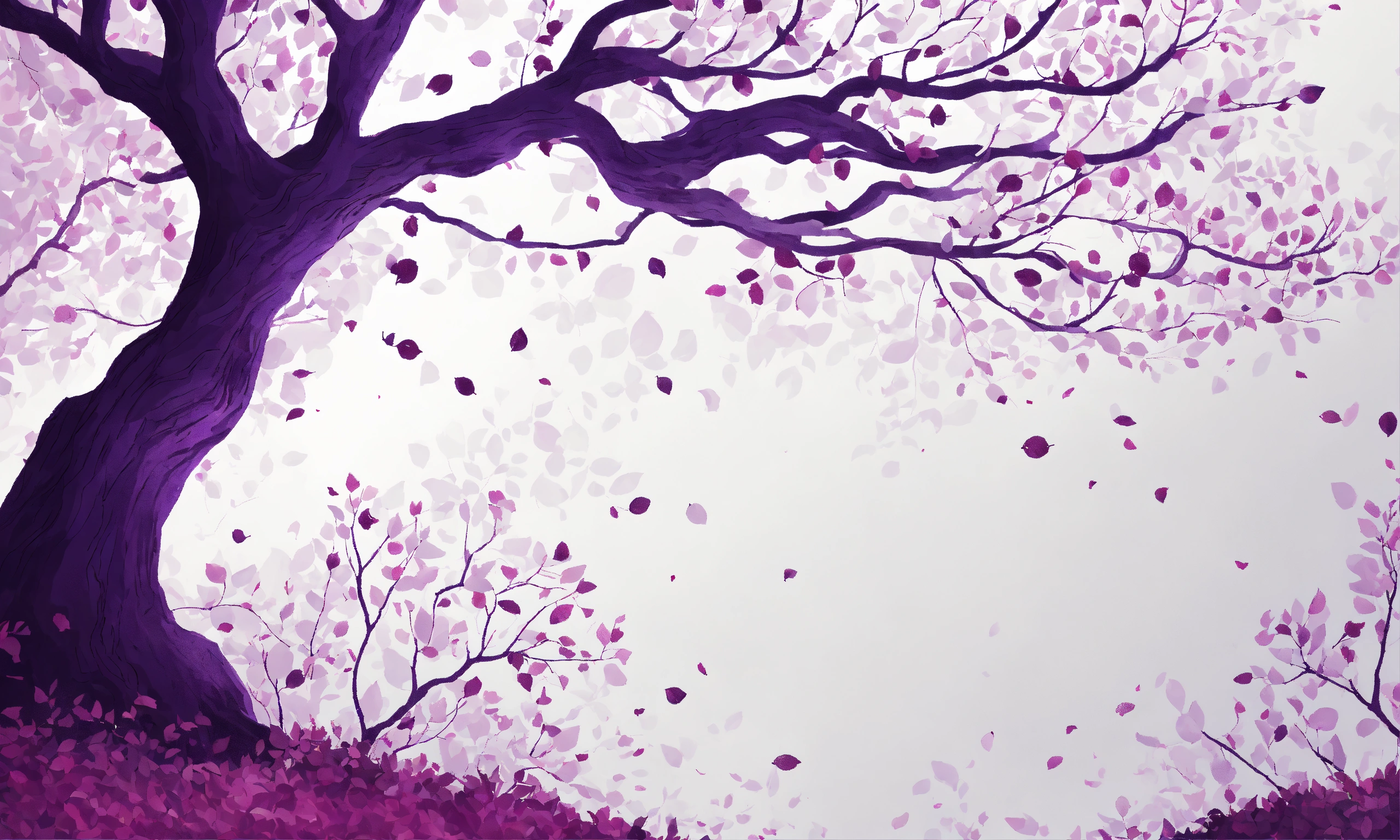 "create a vector frame design with a pure white backdrop. in the top-left corner, introduce dark purple tree branches with leaves, extending a short distance downwards and to the right, evoking a sense of magic and enchantment. the remainder of the design should remain branch-free, ensuring ample white space for content."