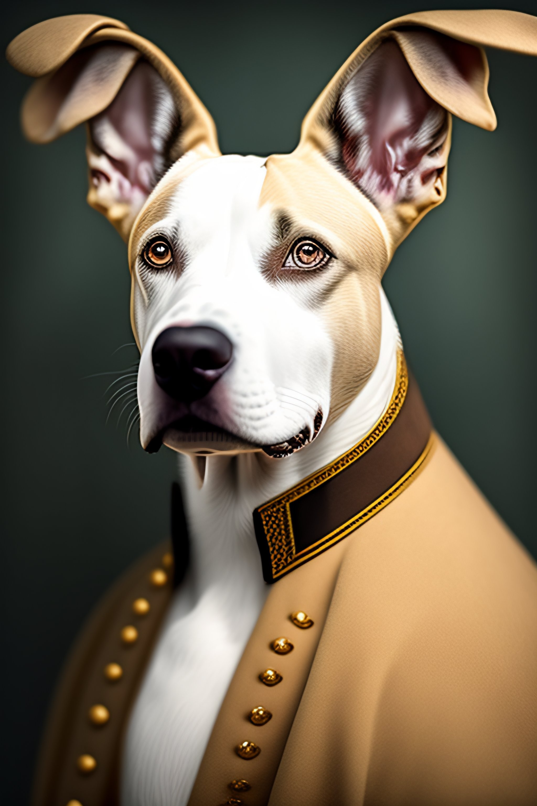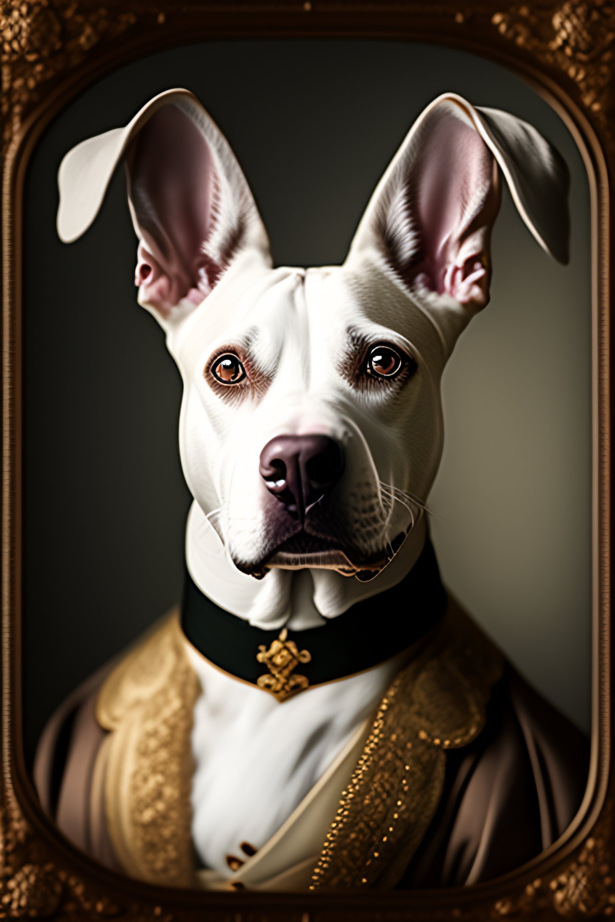 Headshot edwardian photograph portrait of anthro anthropomorphic white pitbull dog head animal person fursona serious wearing elaborate military general uniform clothes degraded medium by louis daguerre daguerreotype tintype, daguerreotype a brown rabbit, 1 9 2 0 s film actress, realistic face, ethereal, 1 9 1 0 s, grainy, victorian, soft blur