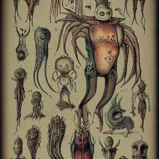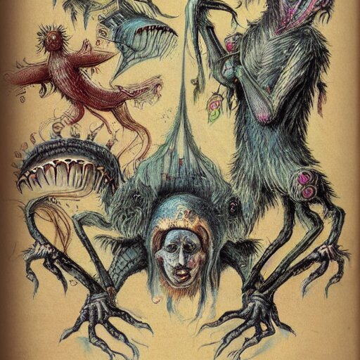 Bestiary of whimsical uncanny creatures from the depths of the unconscious psyche
