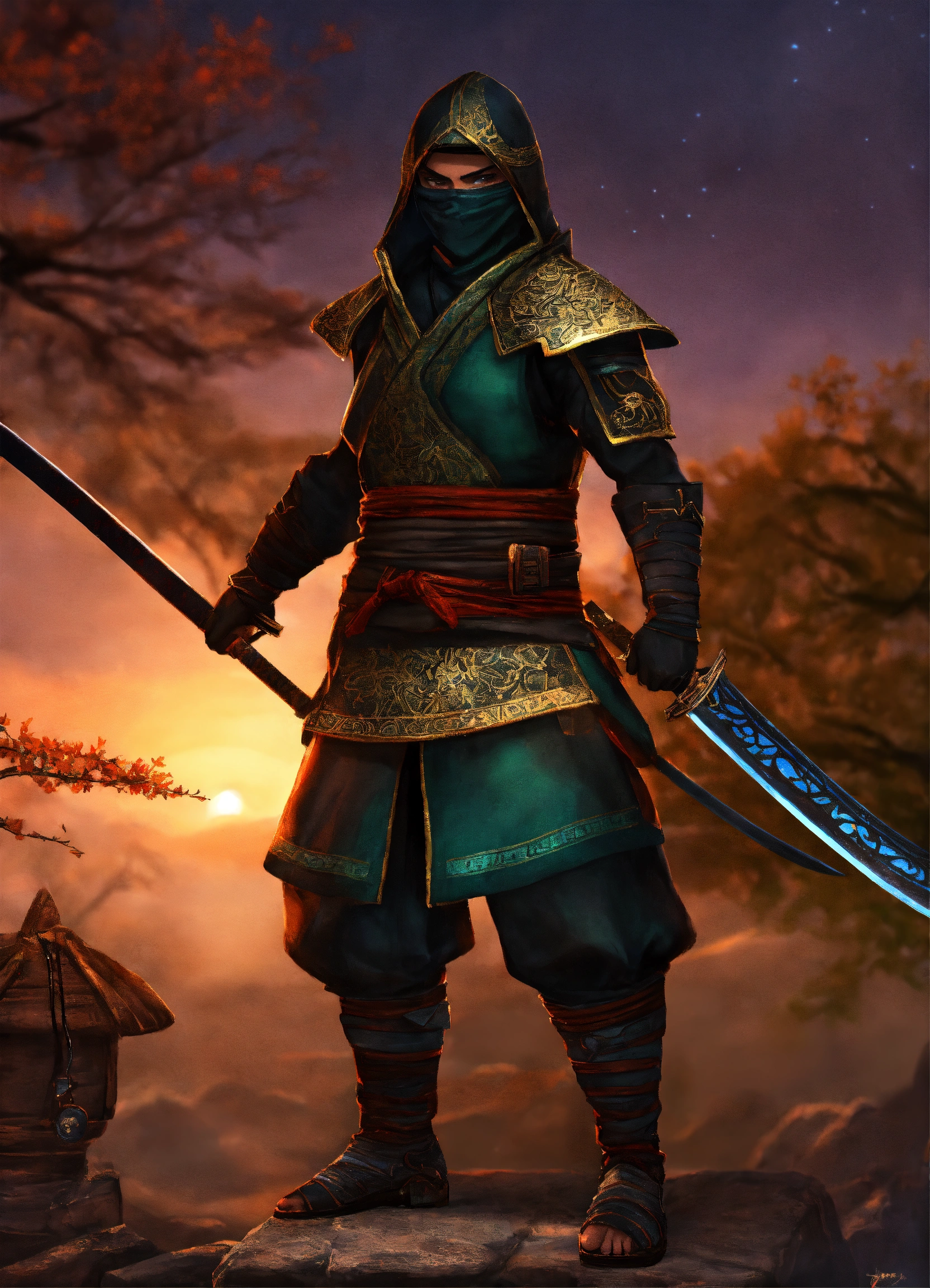 Metin2 online ninja character with glaxy background