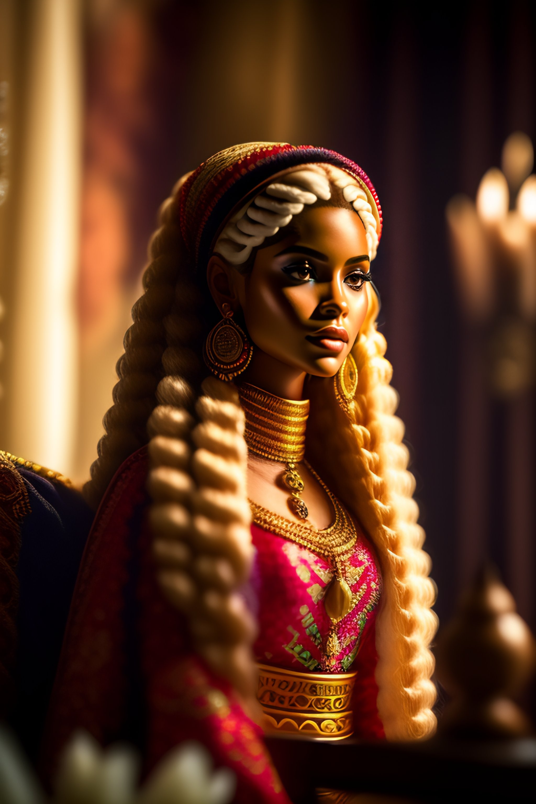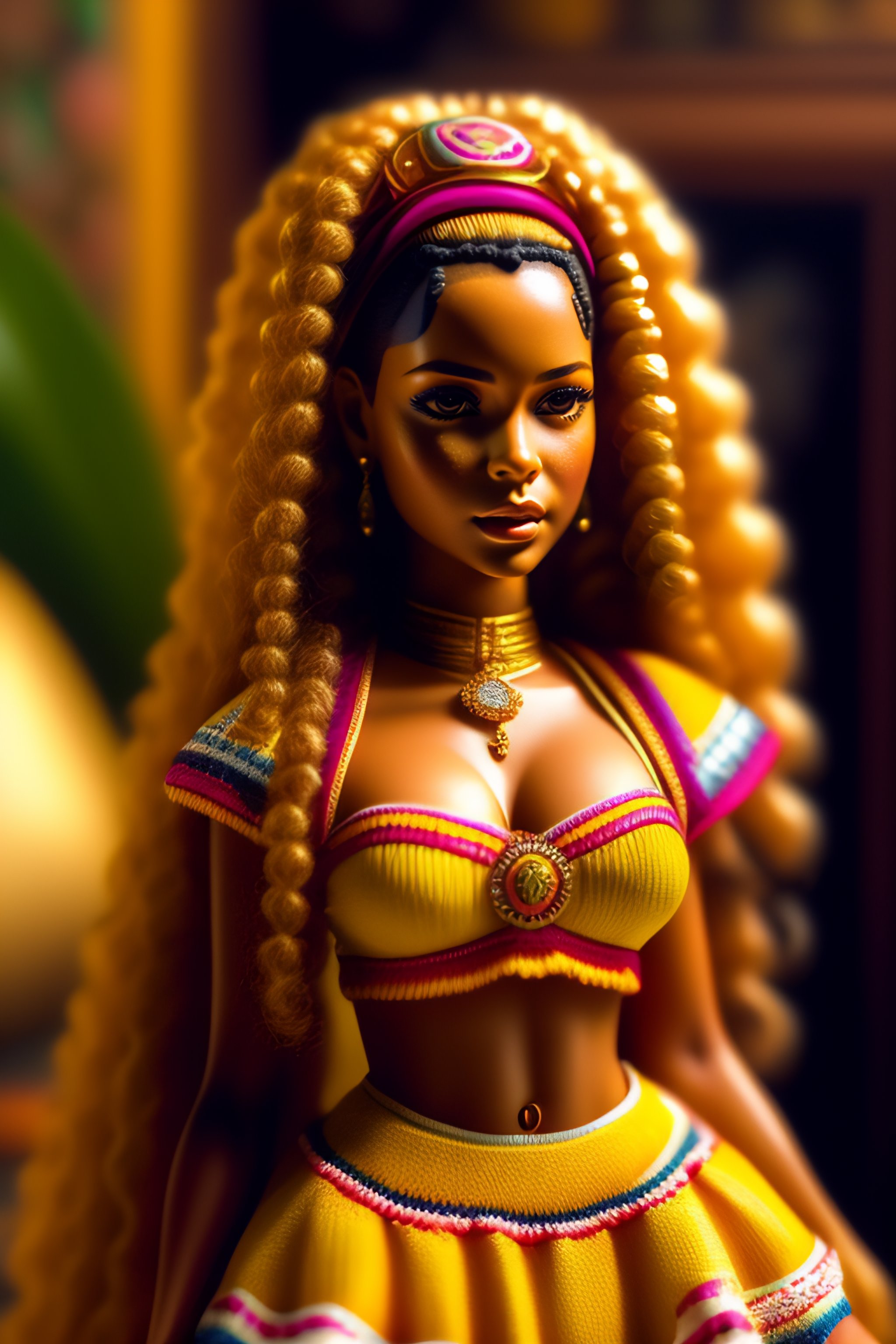 Amazing beautiful shakira barbie doll wearing colombian typical outfit in the living room, film still from the movie directed by denis villeneuve, wide lens