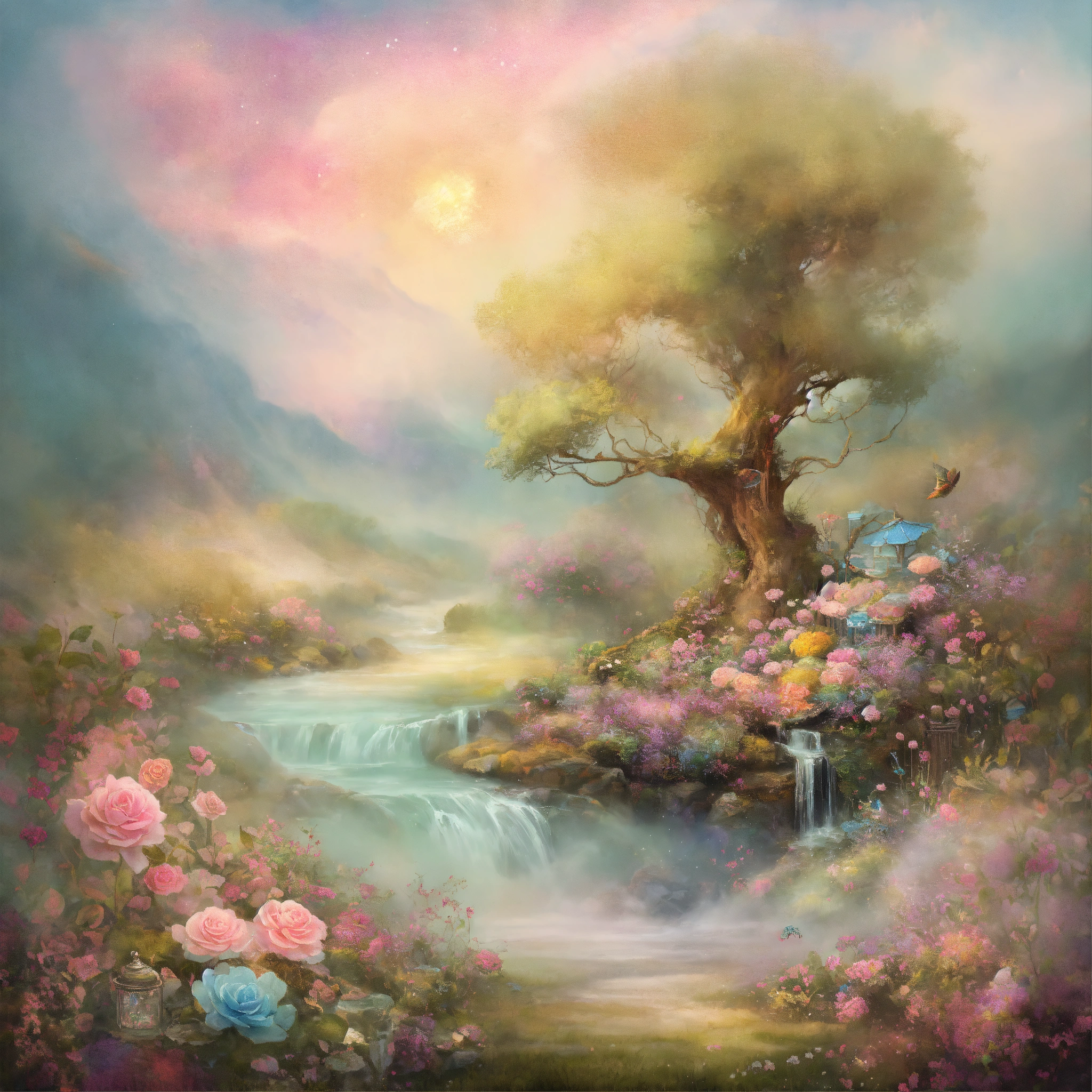 Shabby chic dreamy mist pastel junk journals meditation healing power swirling magical fairytale abstract art style