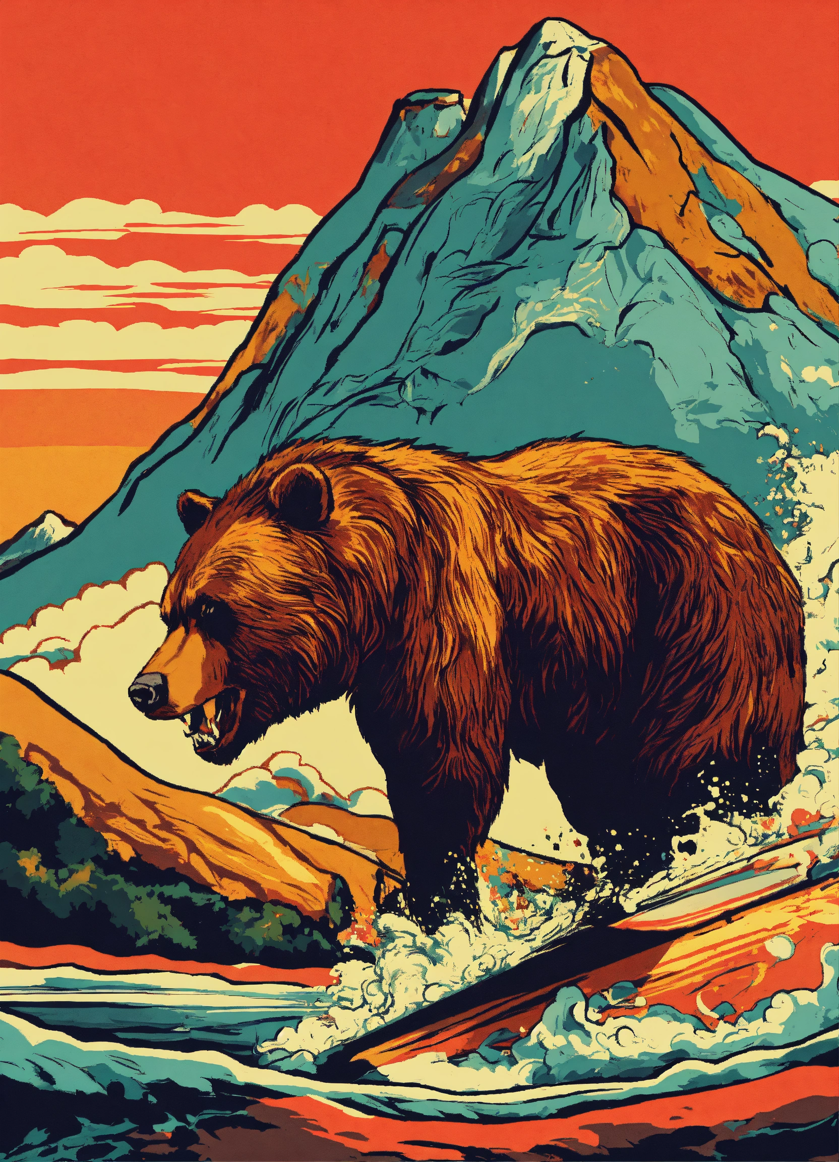 Pop art para estampado de camiseta en el que aparezca jagaur fighting a bear
