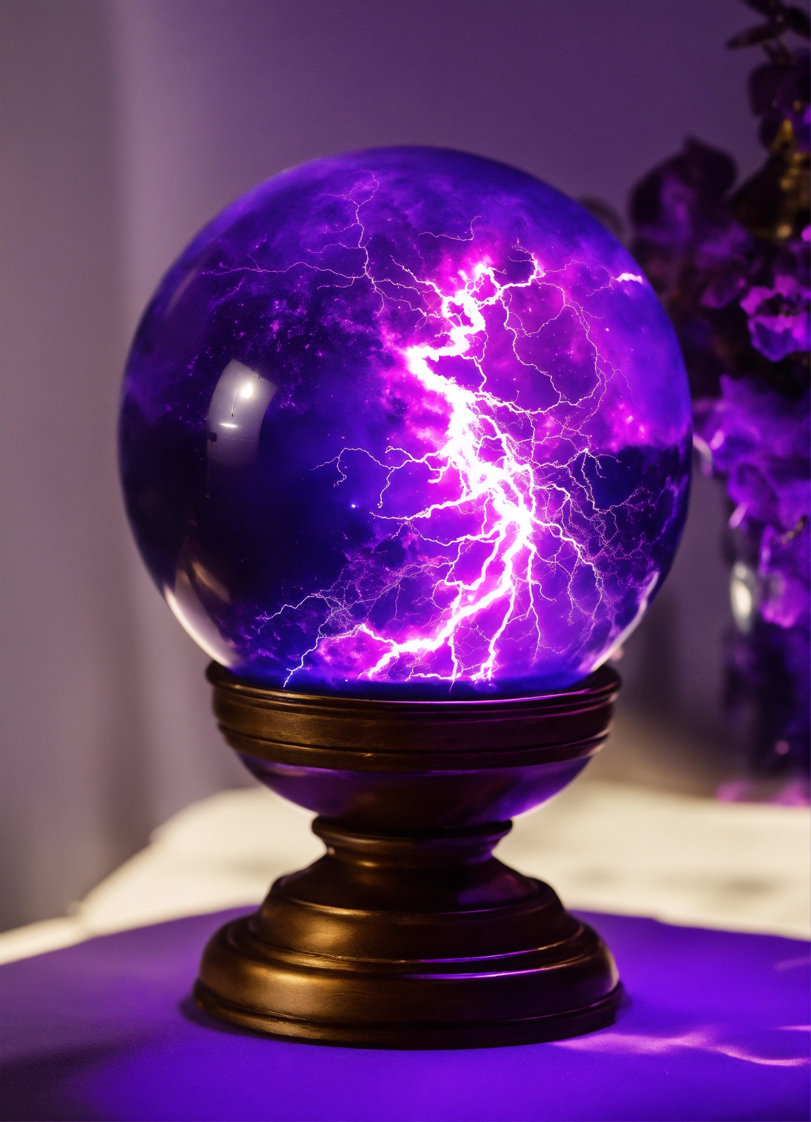 Purple magic lightning orb without stand on white background