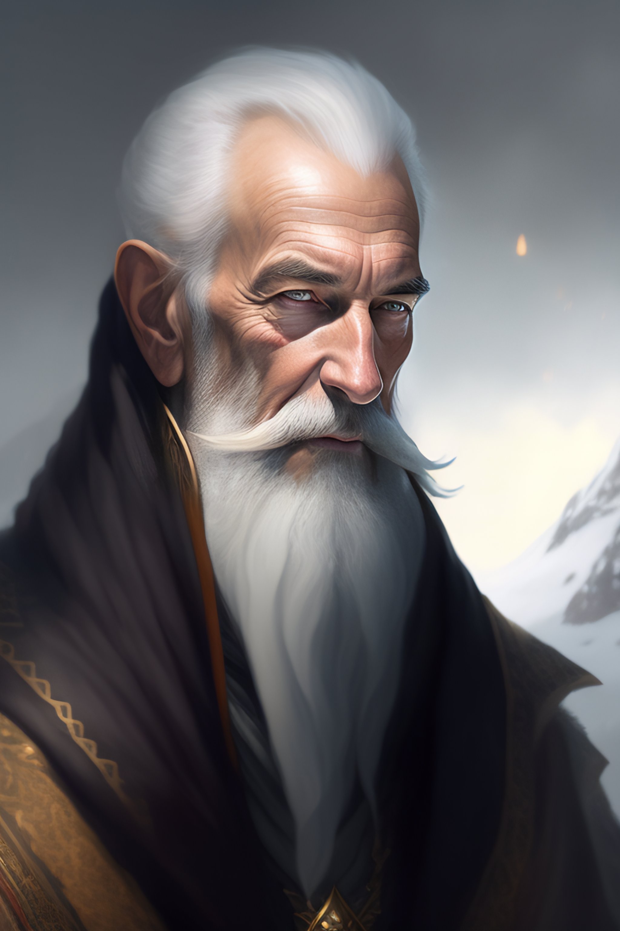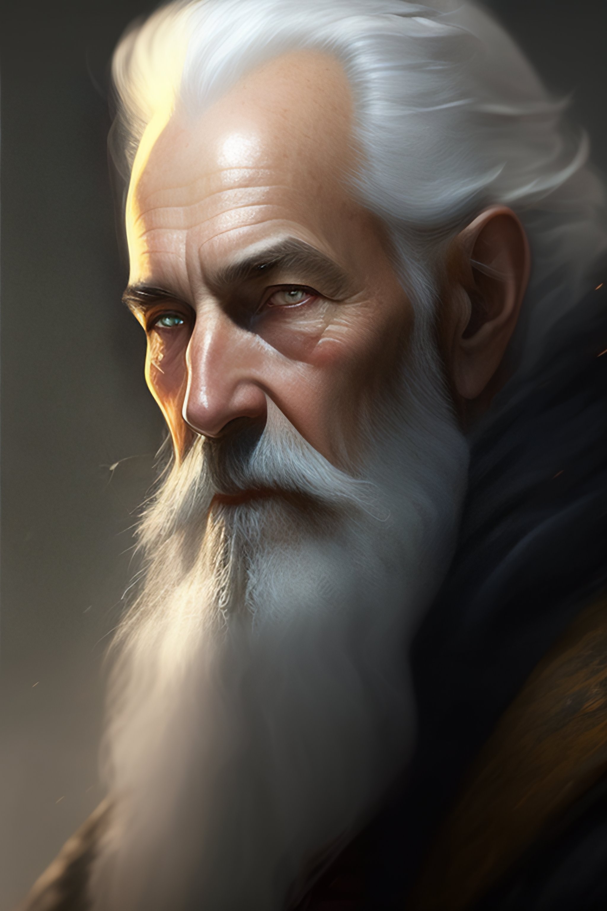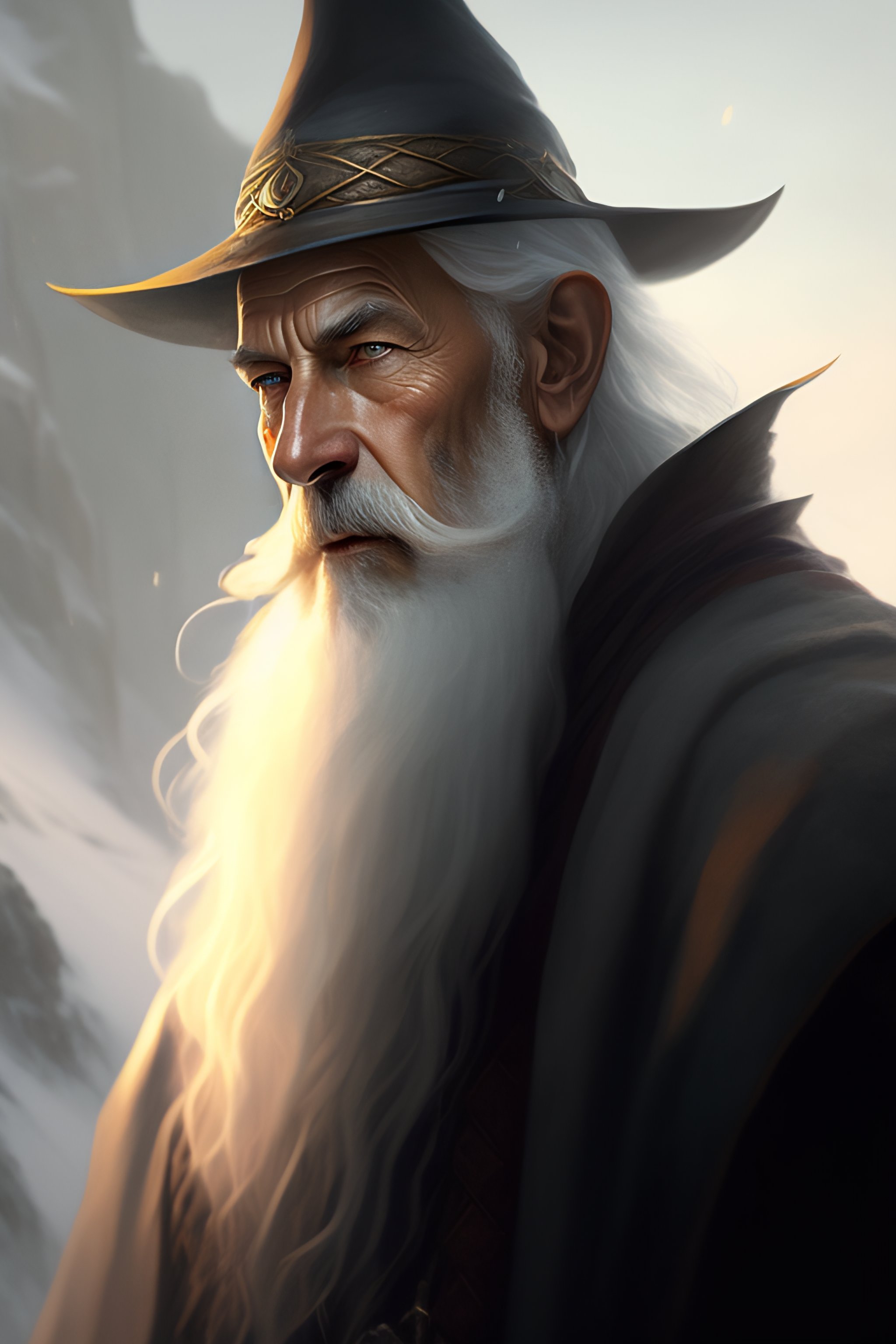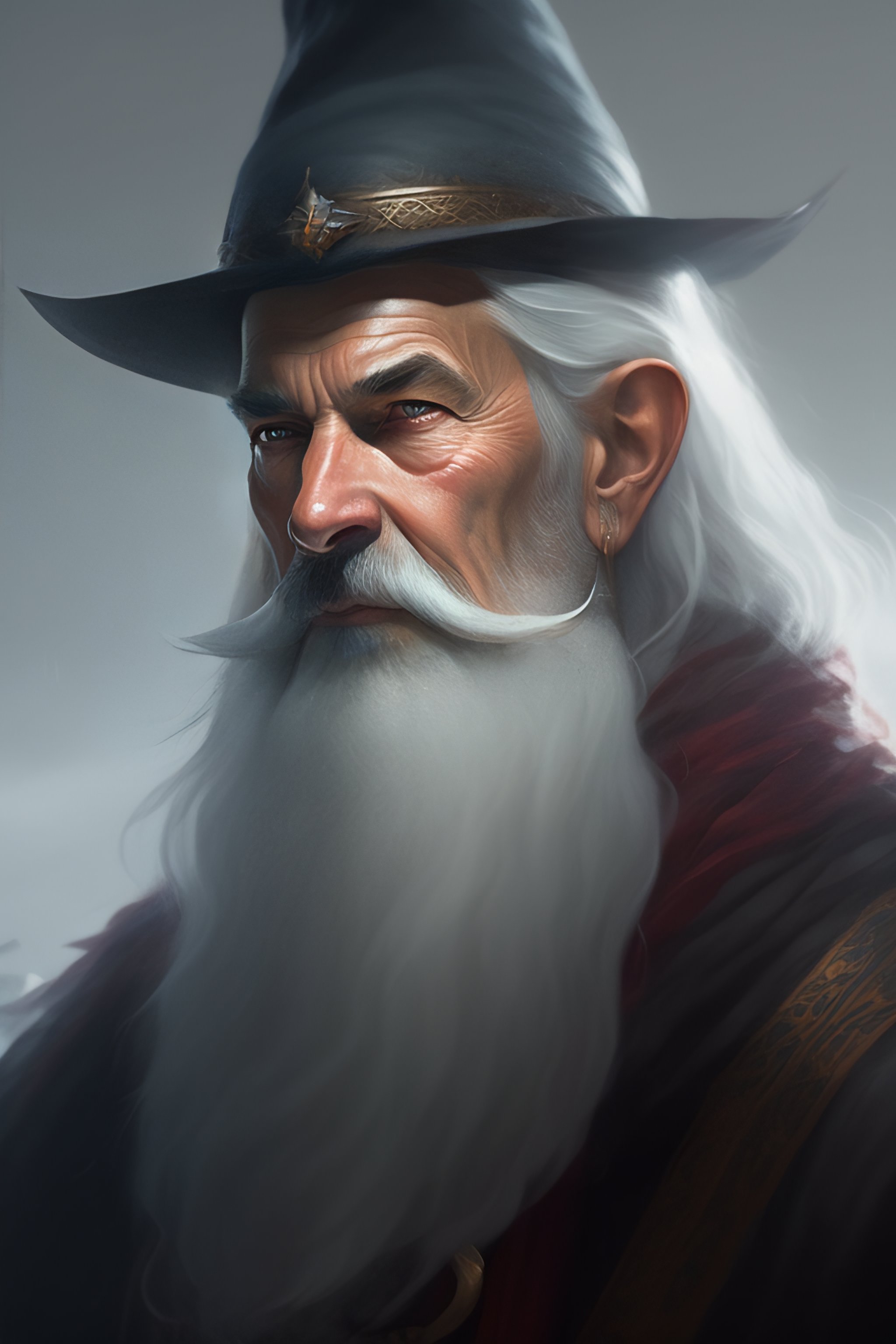 Portrait of a skinny old wizard with grey beard, fantasy, lord of the rings, by greg rutkowski and raymond swanland, trending on artstation, realistic digital art