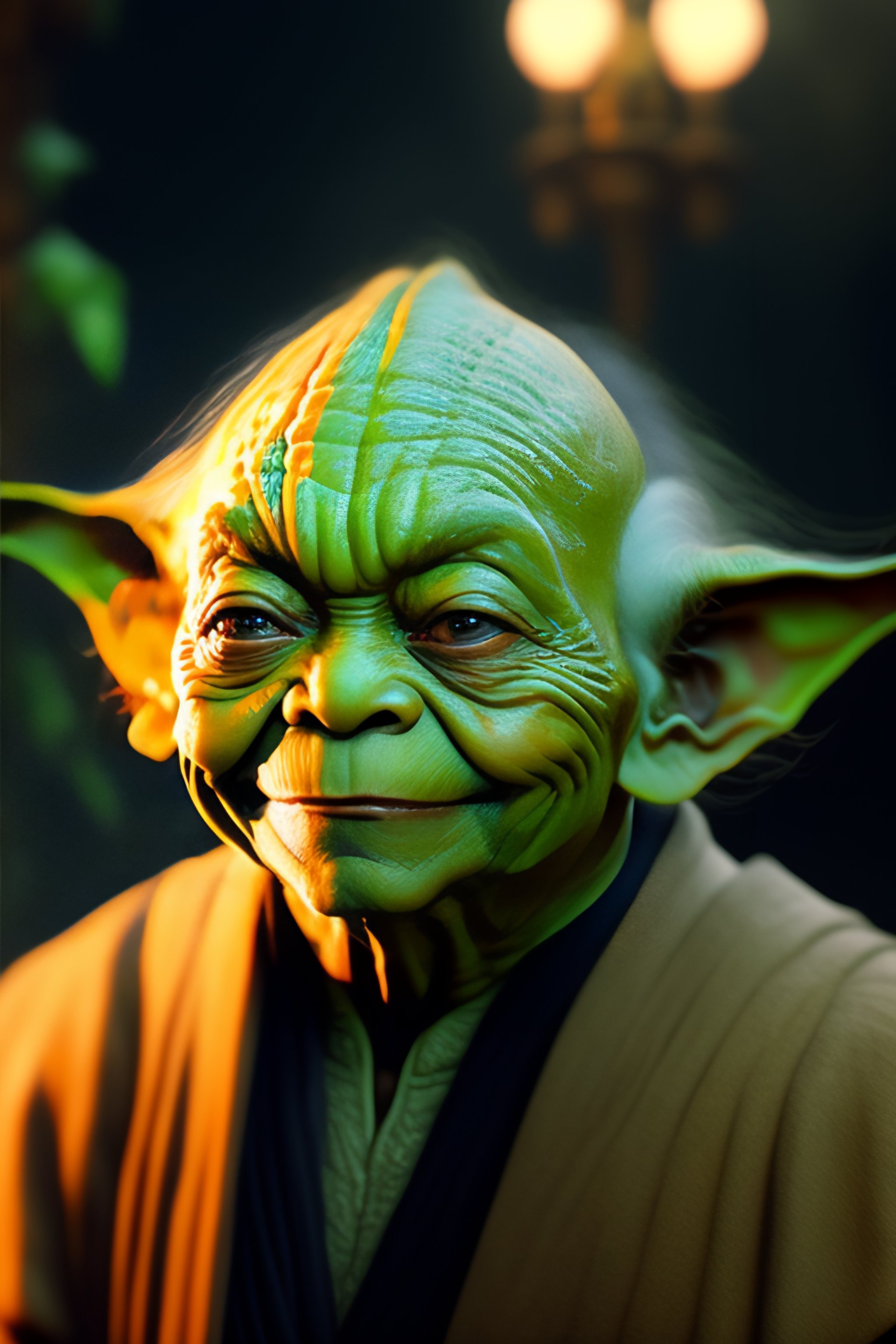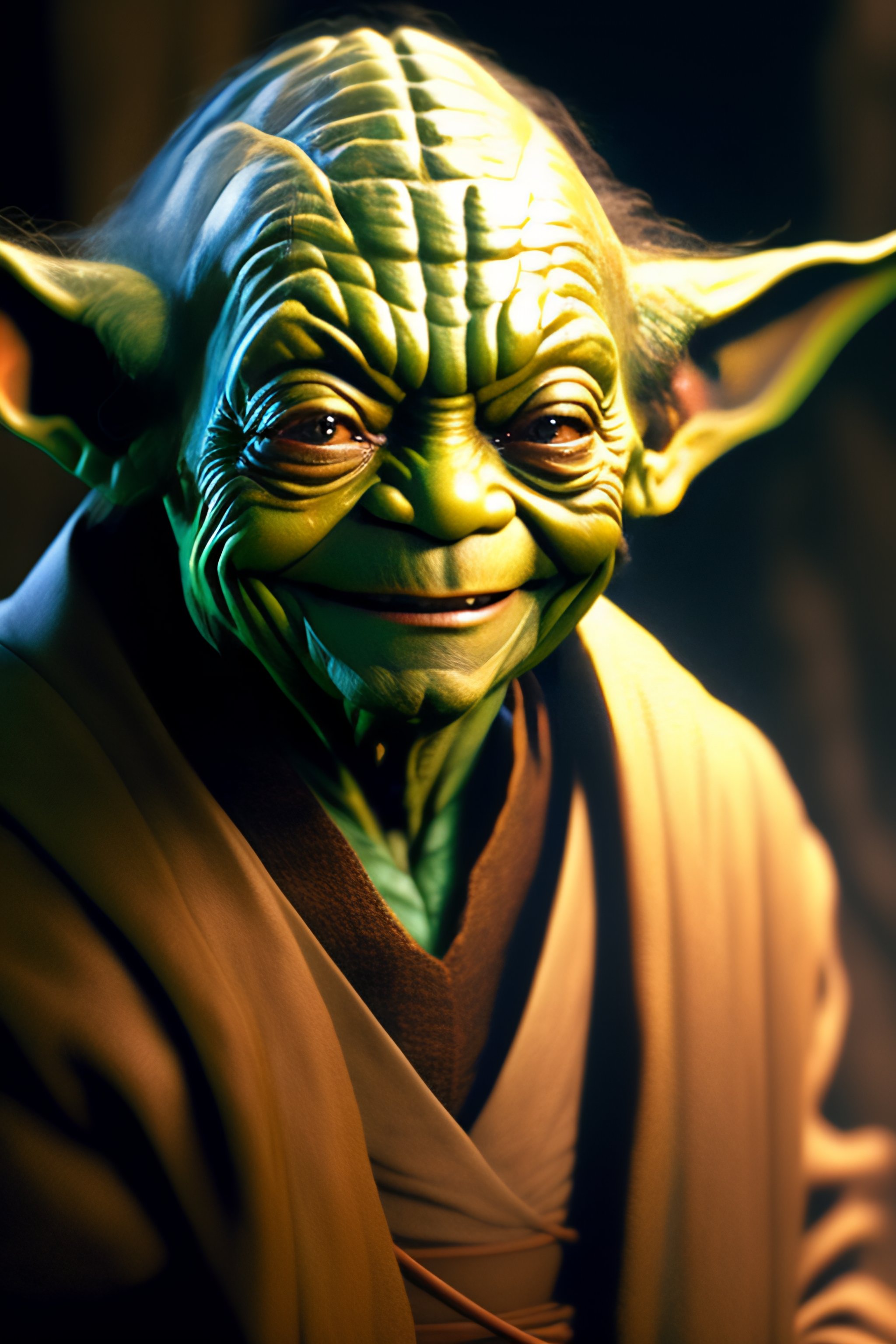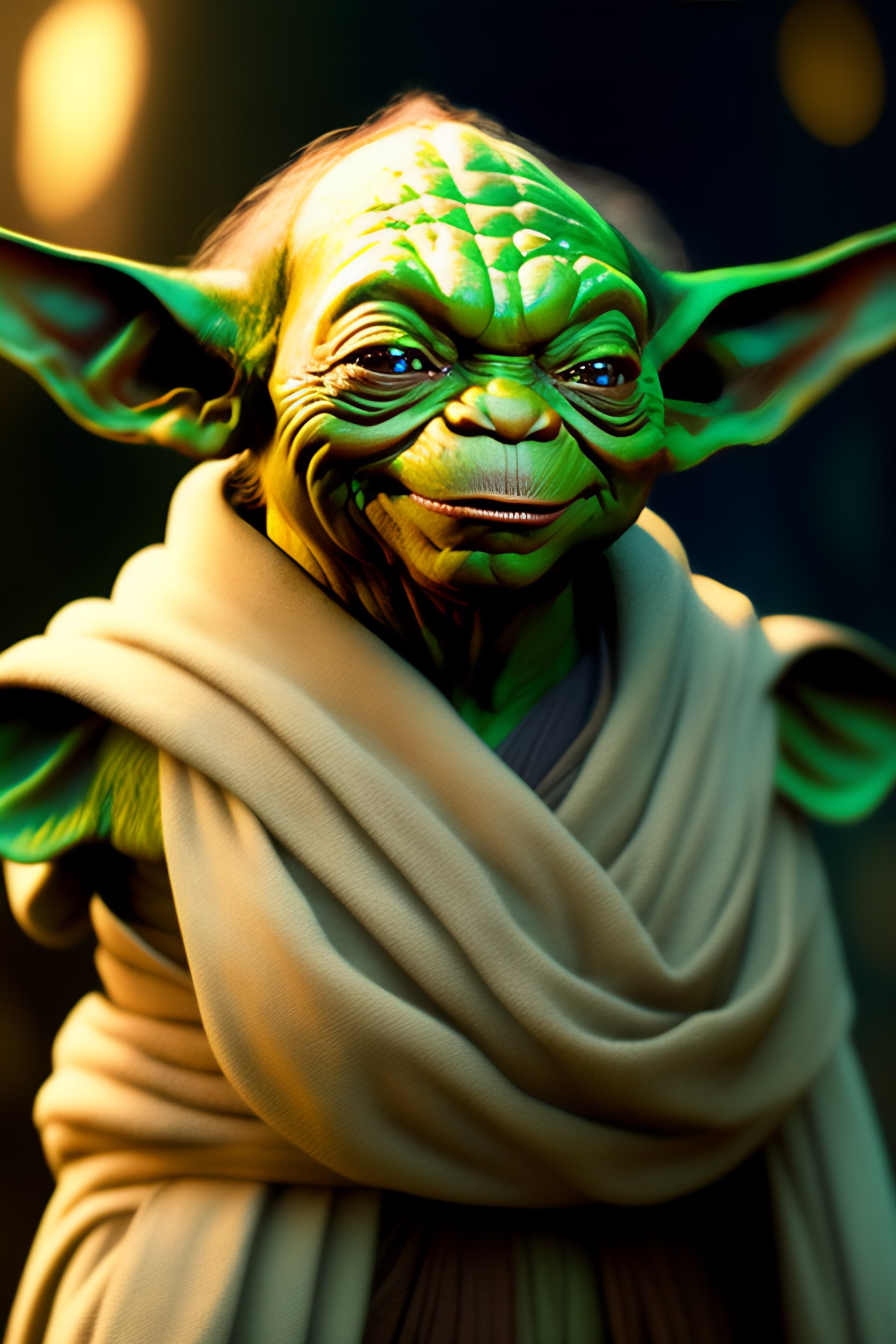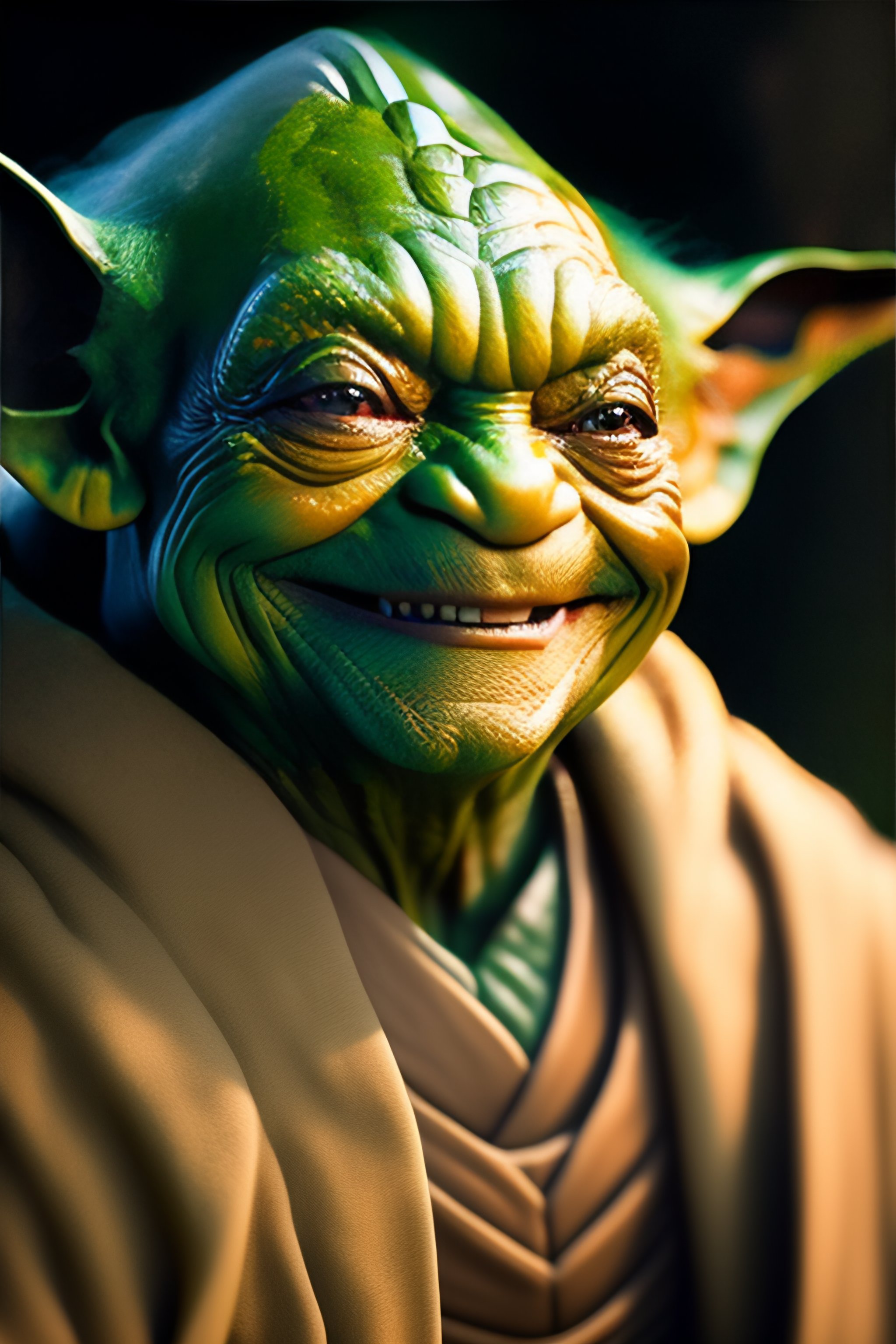 Master yoda smiling with regenerated skin