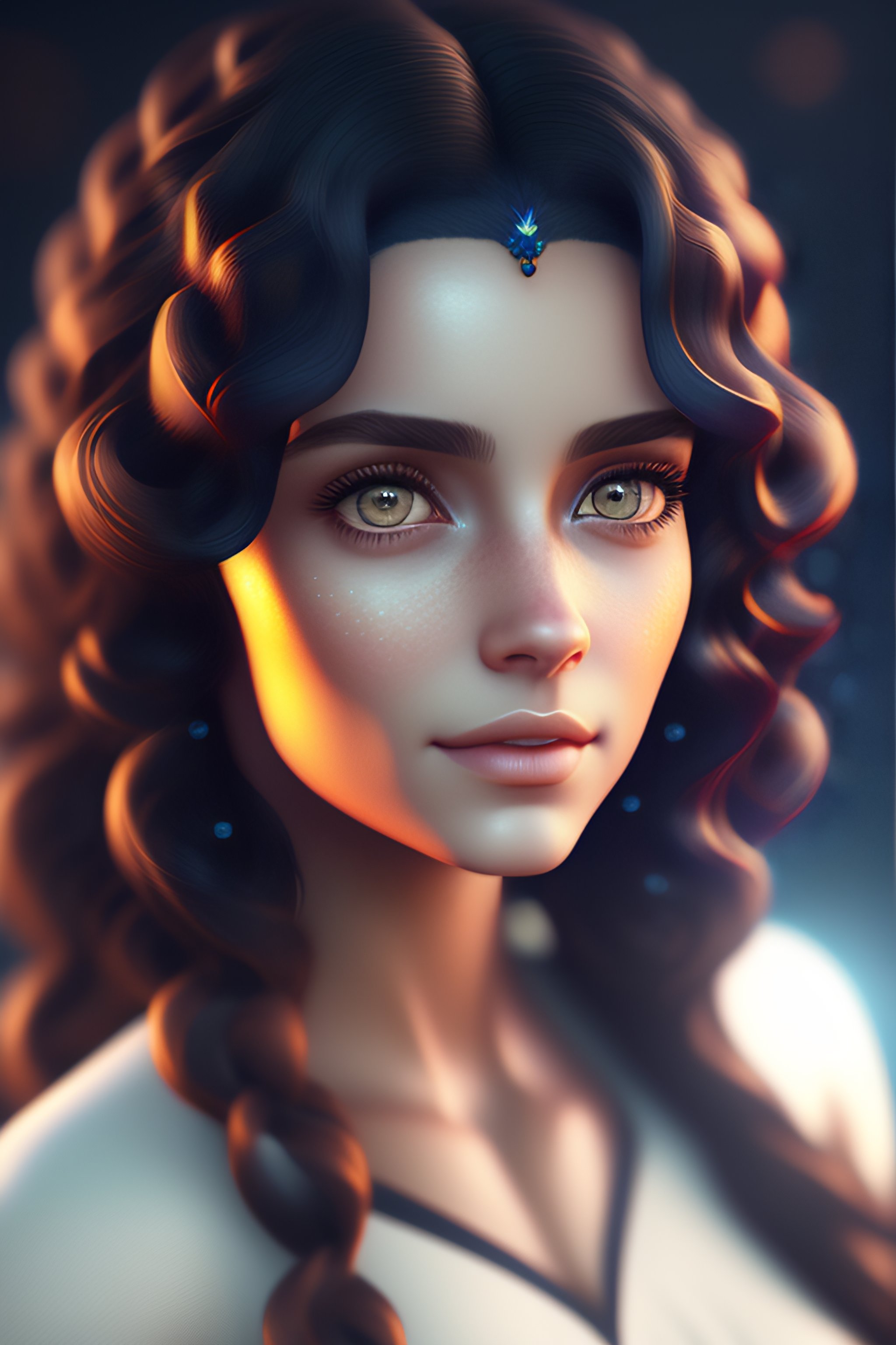 Avatar-girl-big eyes-white skin-curly wavy hair-octane render style-8k