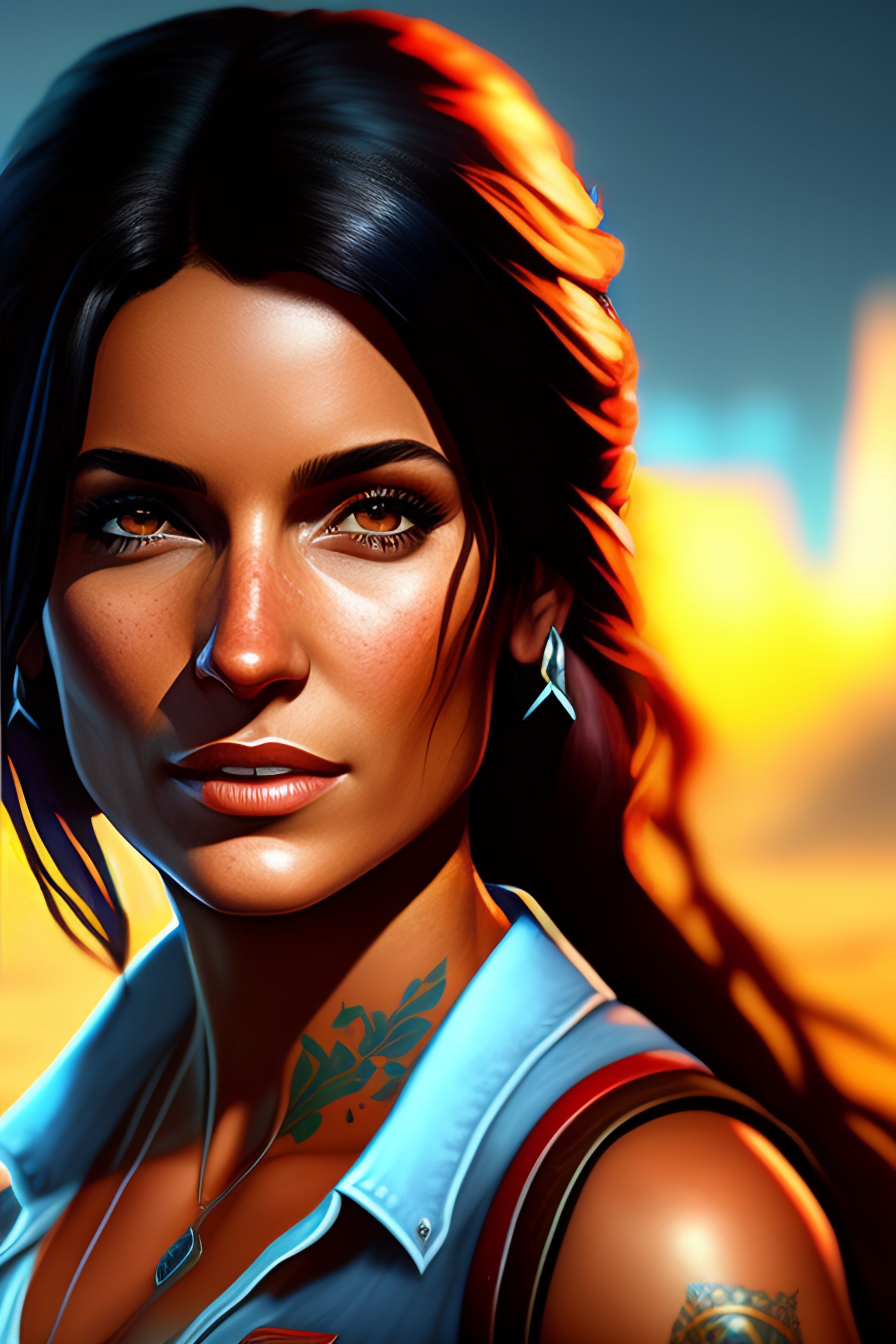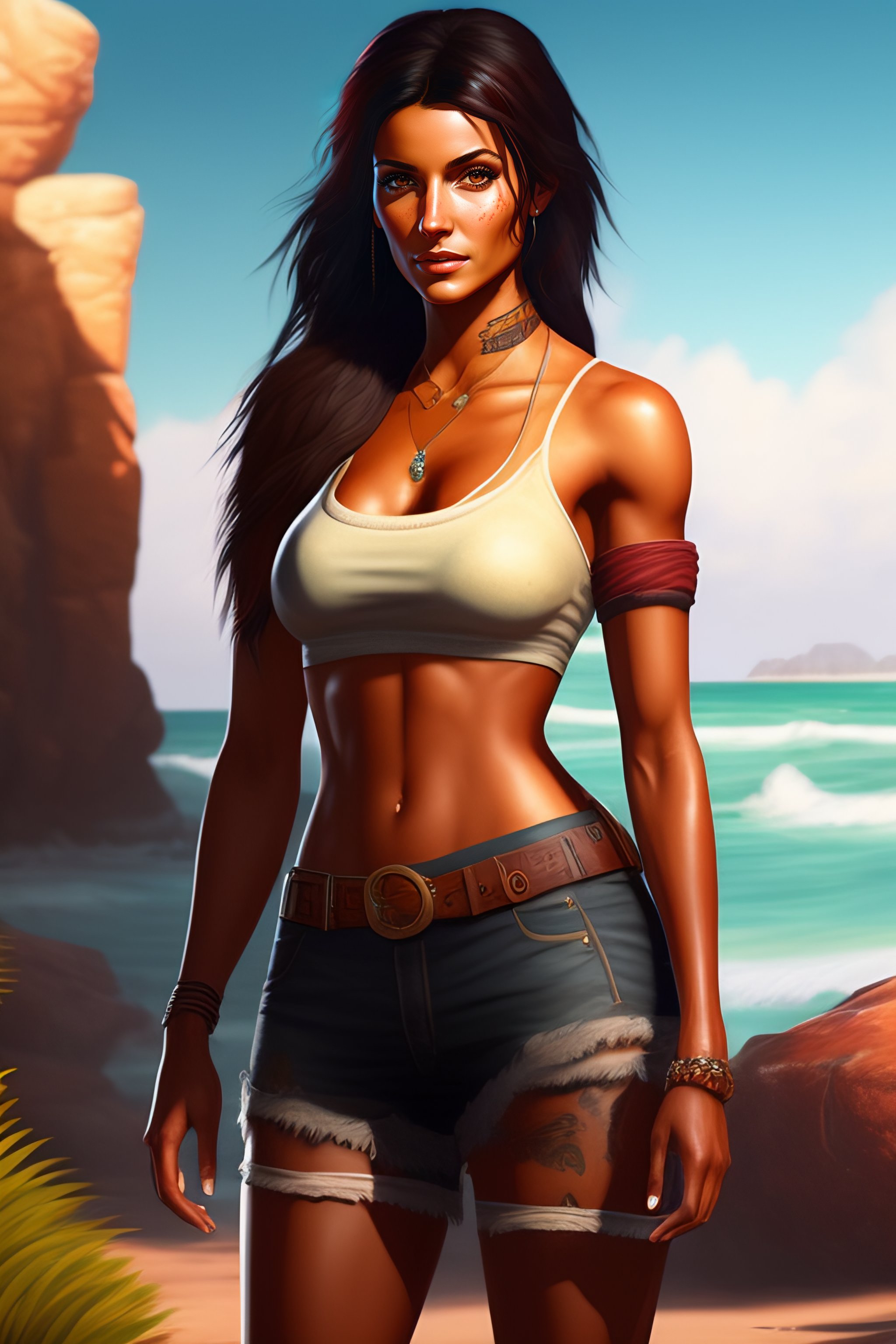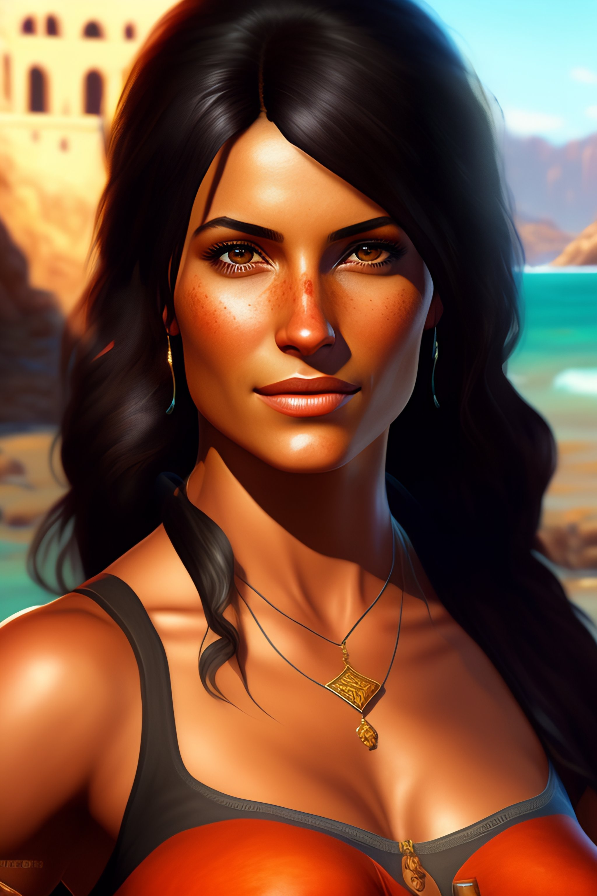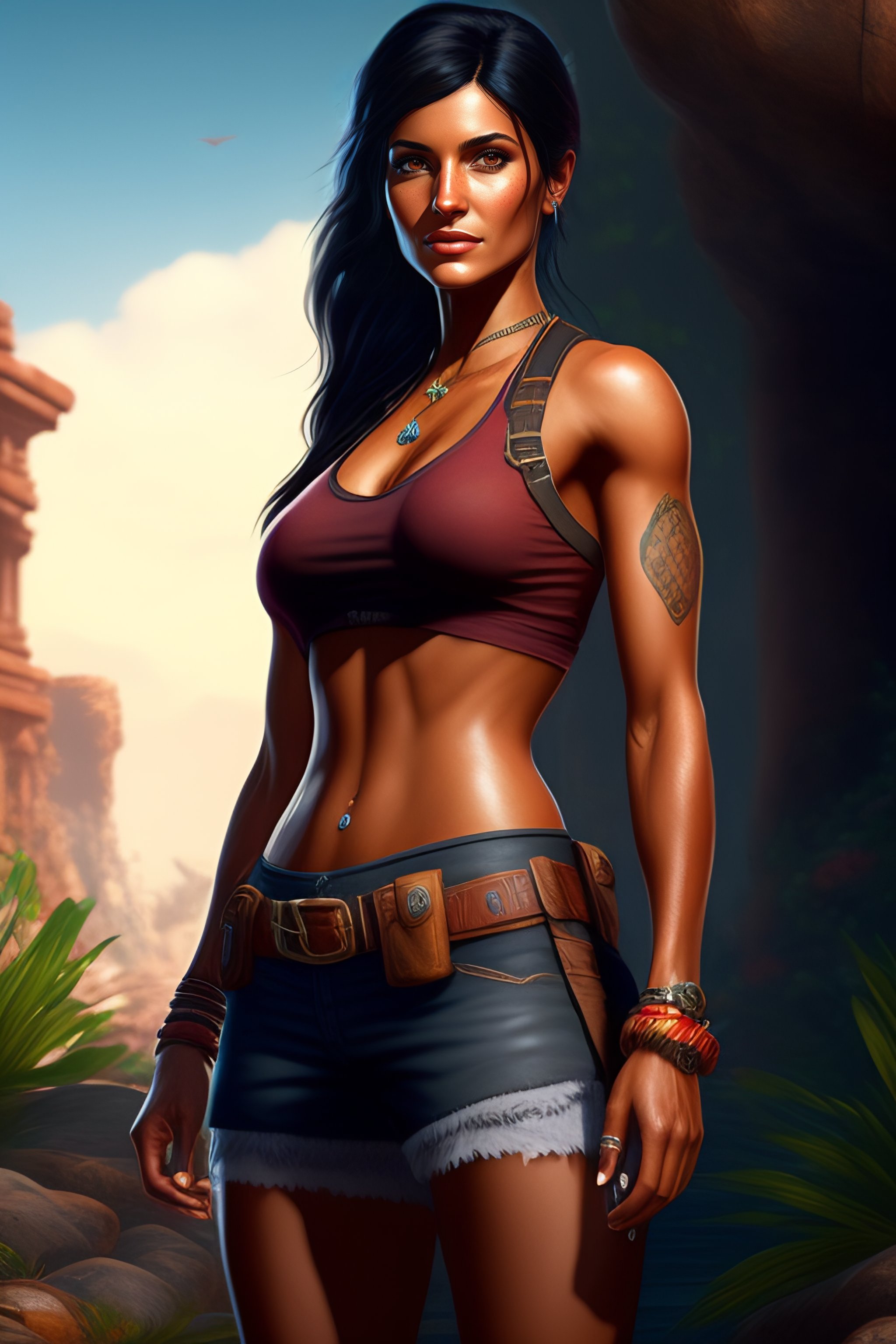A full body portrait painting of beautiful chloe frazer in the game uncharted, sexy character, rpg portrait, dynamic lighting, intricate detail, summer vibrancy, cinematic