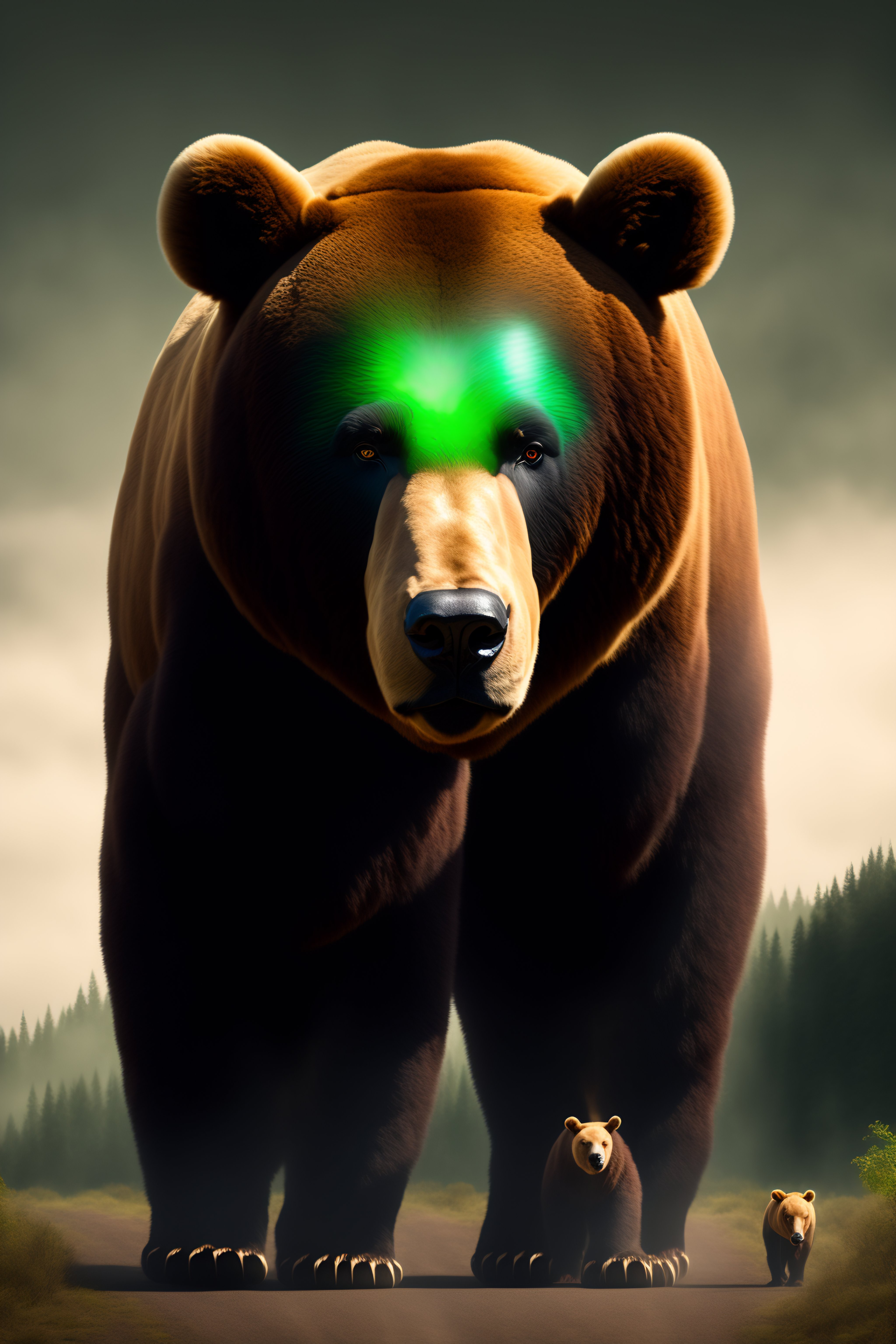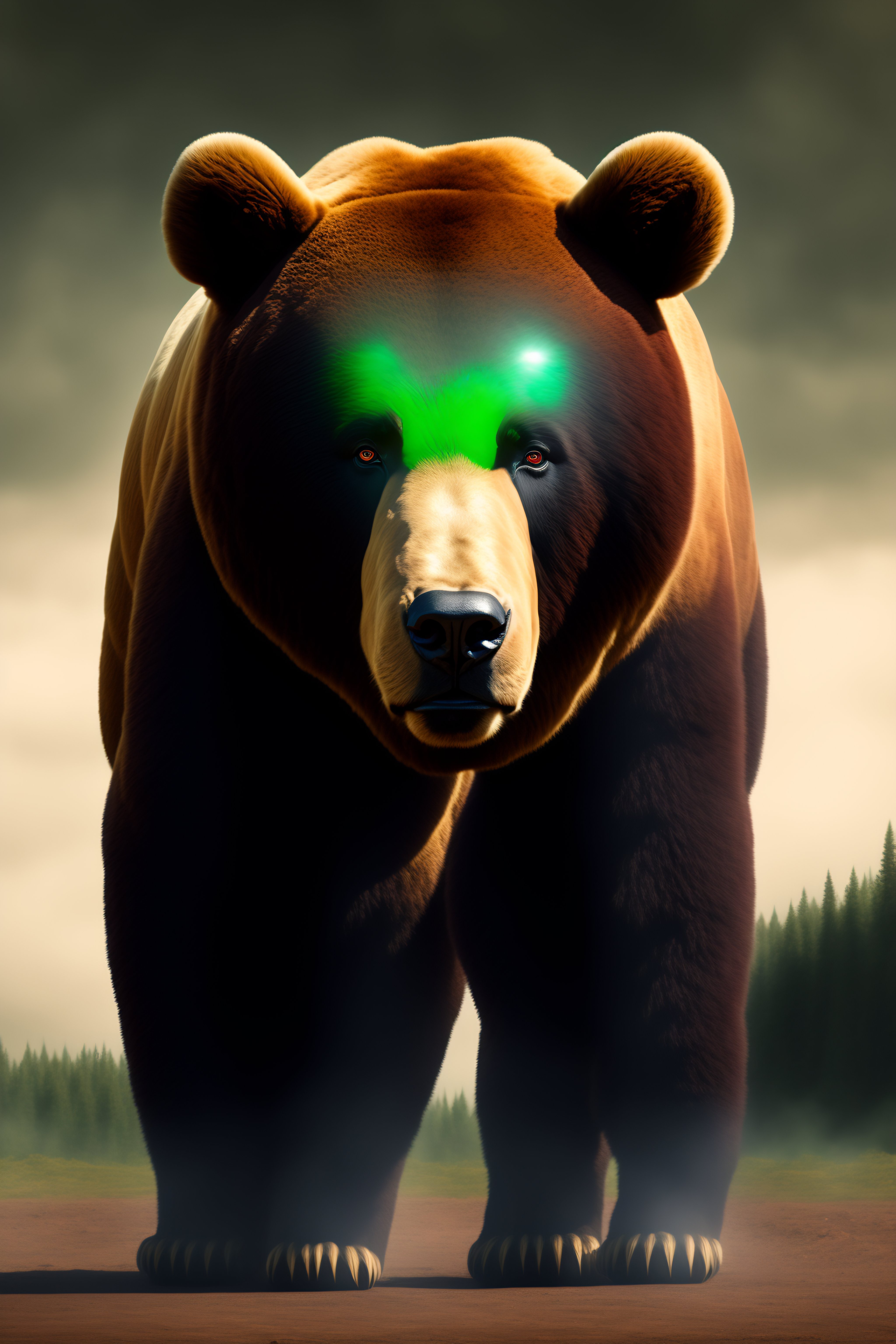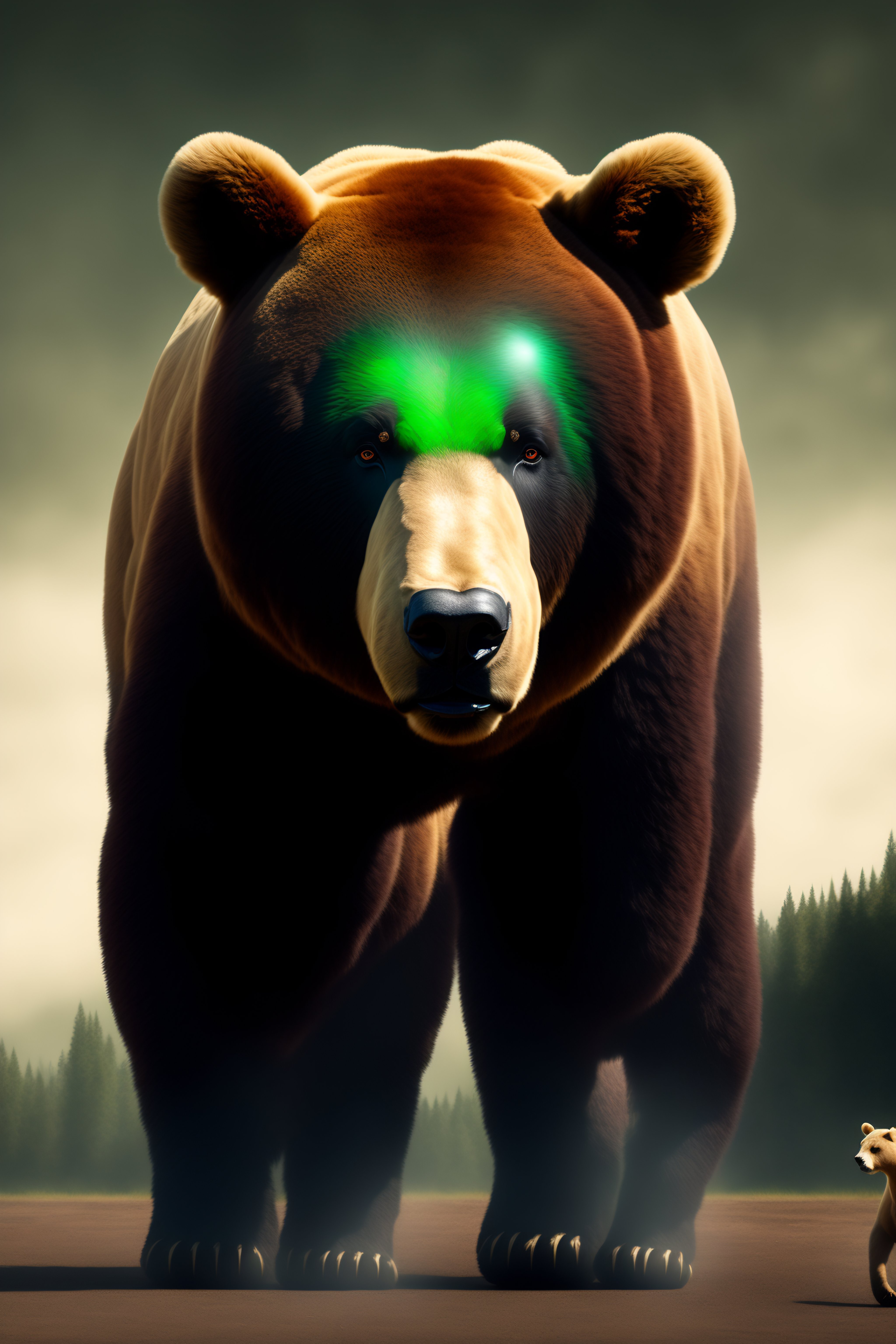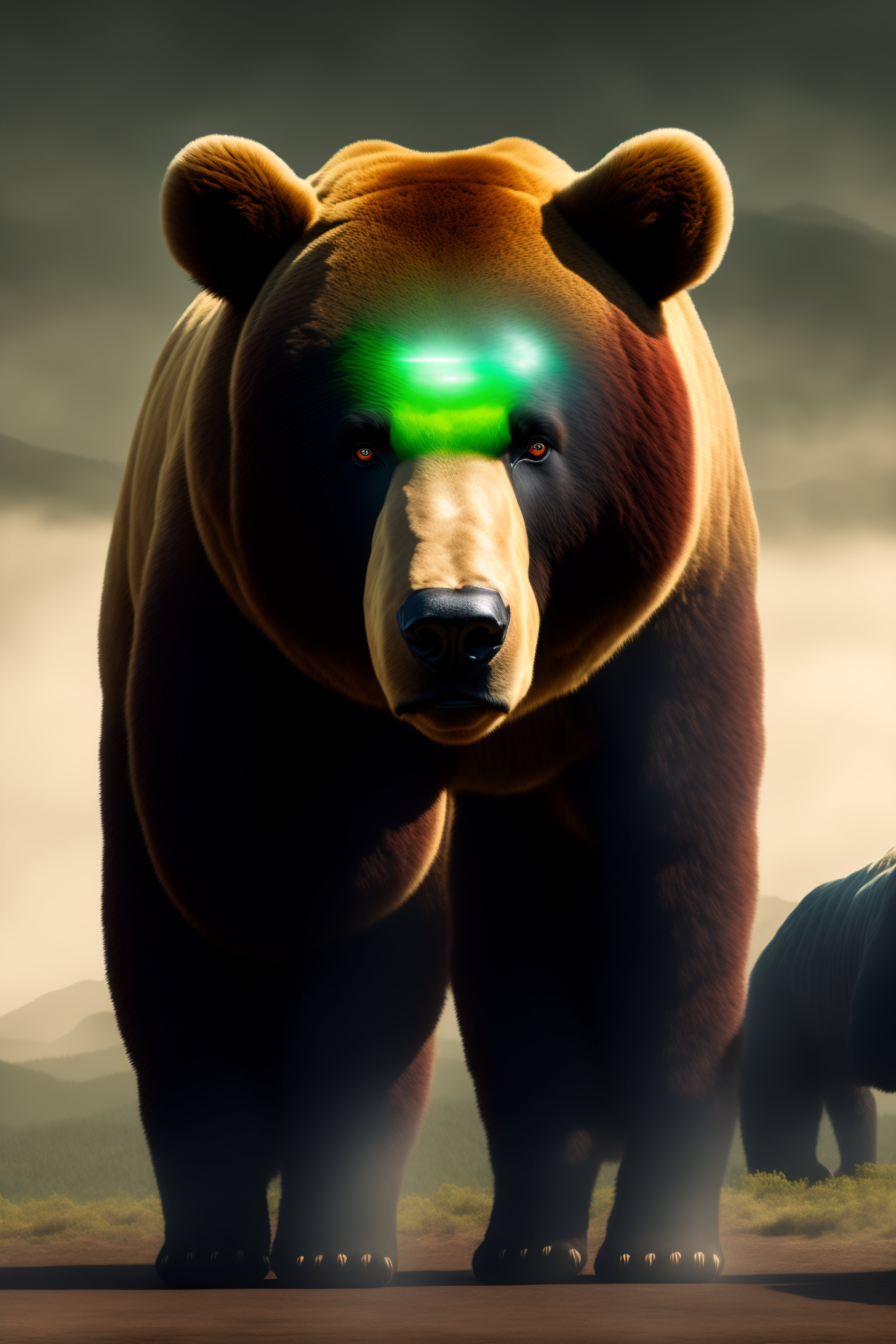 Big scary bear with red eyes against big scary muscular bull with green eyes