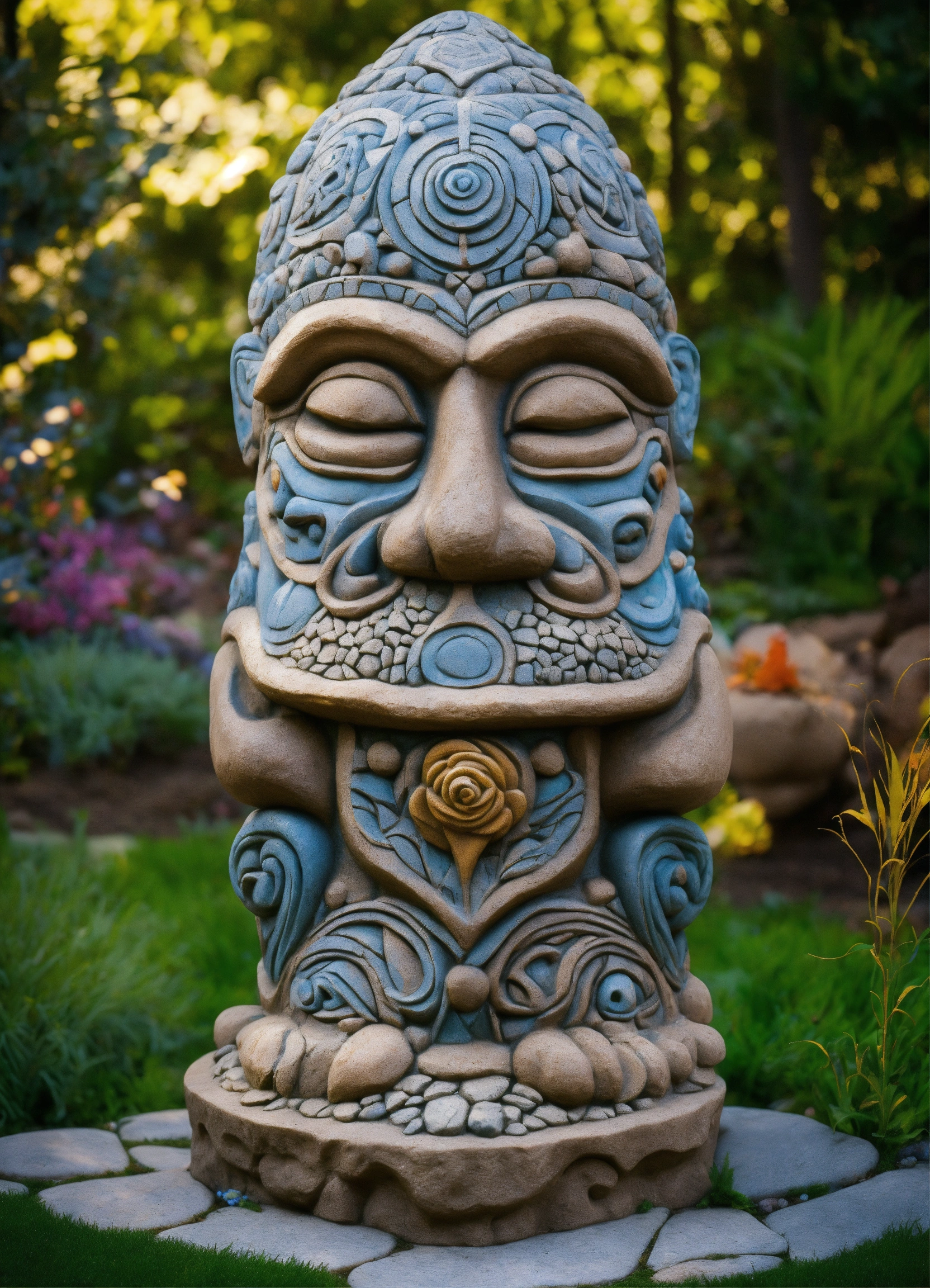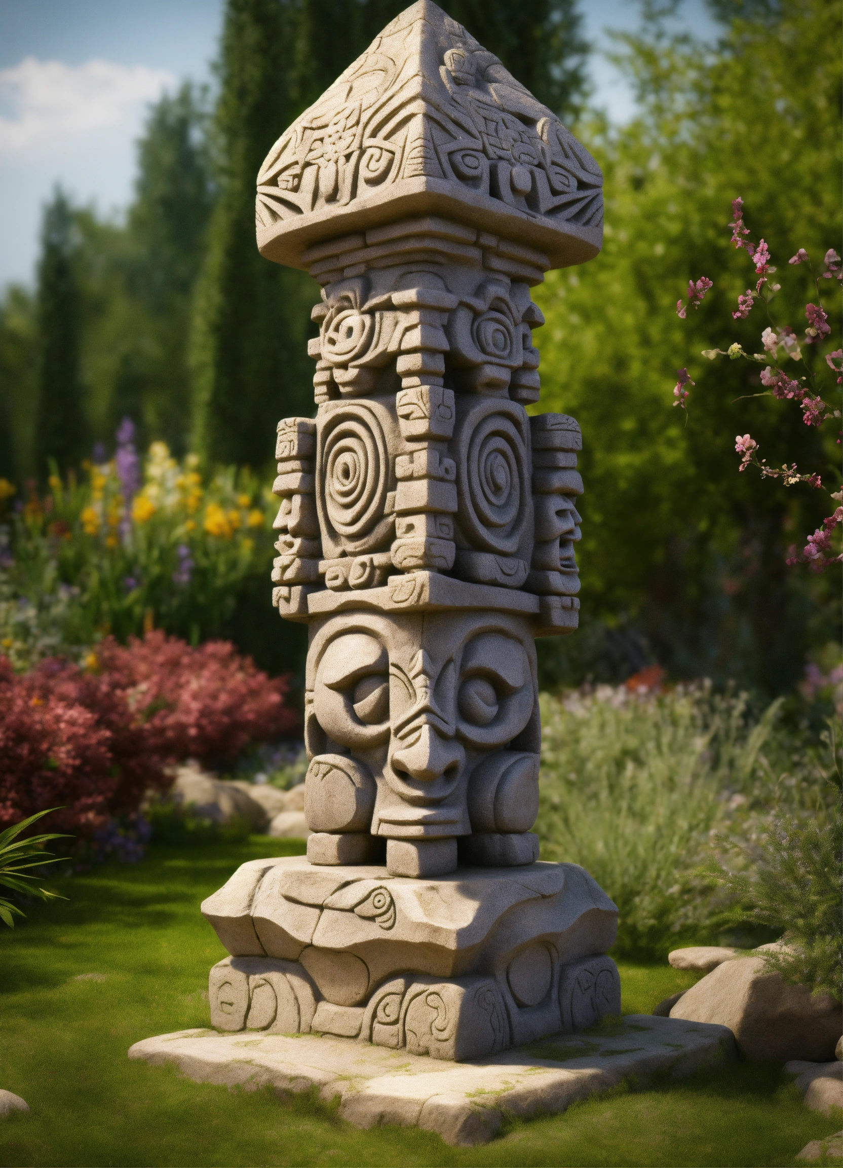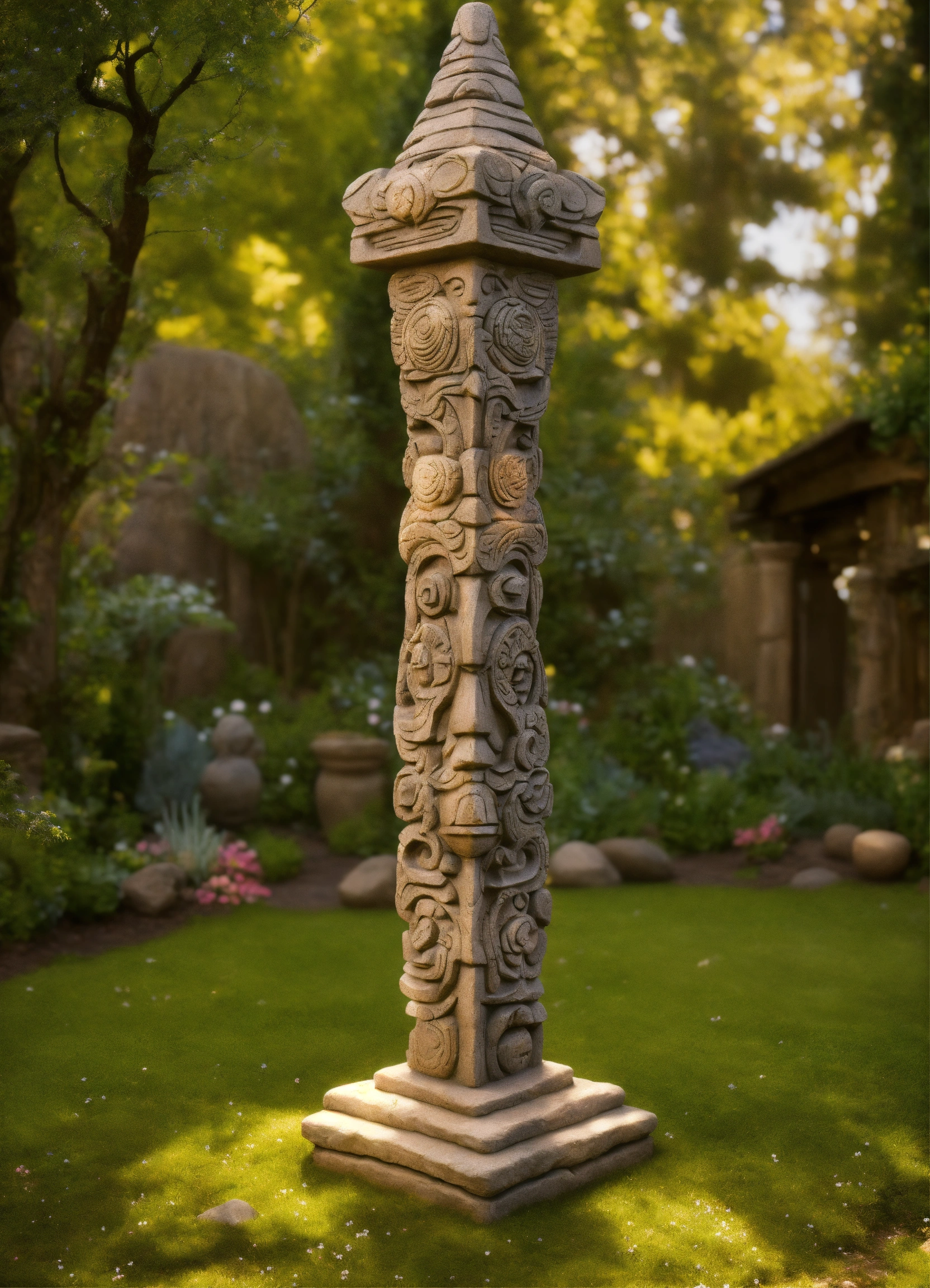 Gnome inspired sculptured stone garden totem pole style of alex grey, unreal engine, spiritual, meditative, ancient