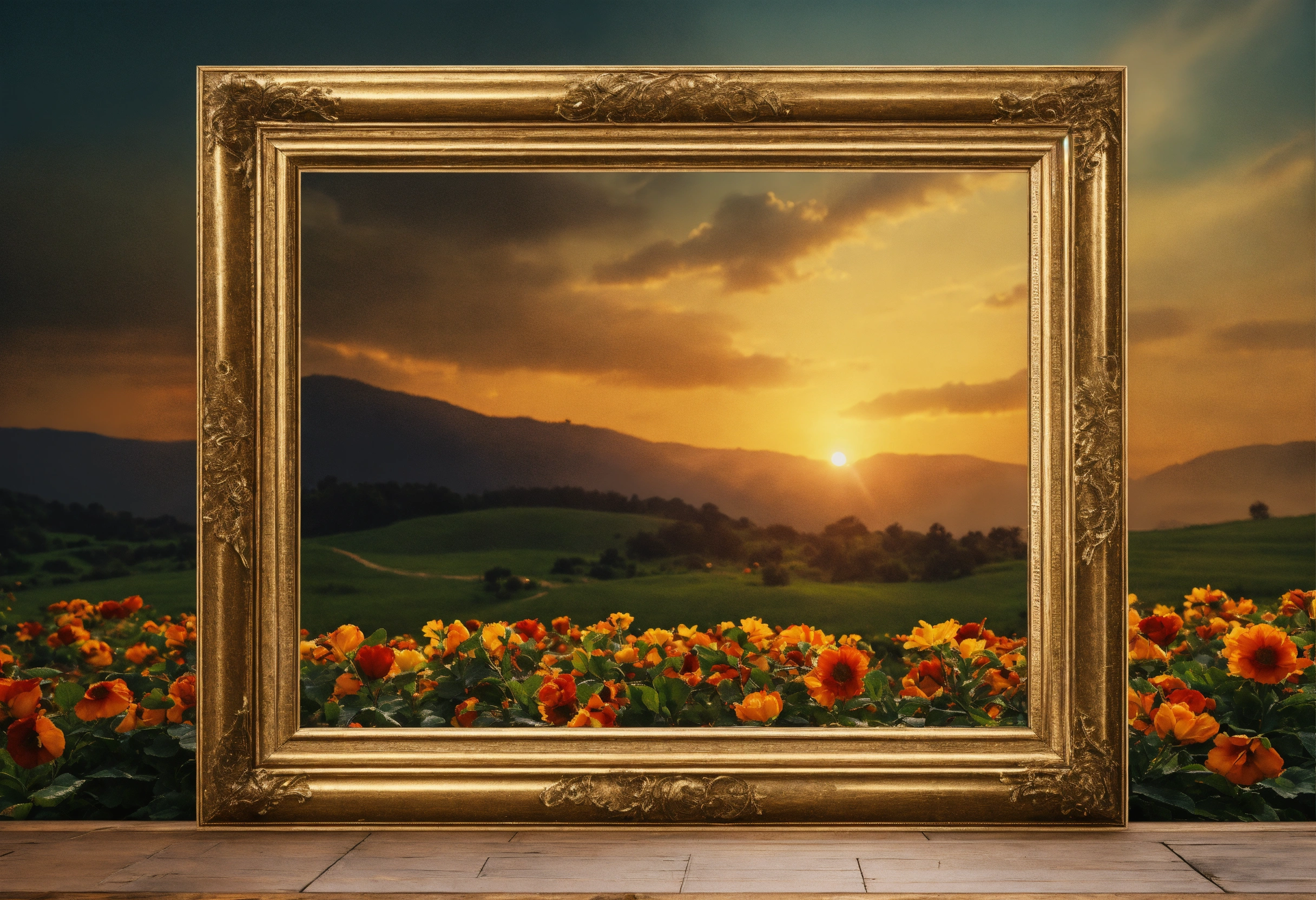 Produce images of beautiful frame border of picture, with empty background. ensure high resolution, 8k image, realistic.