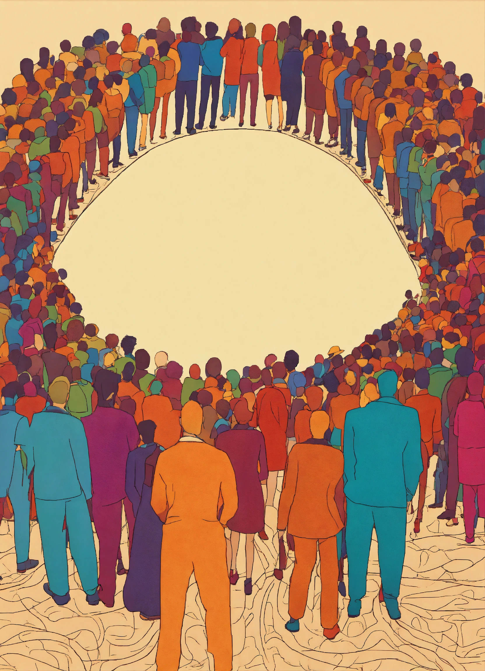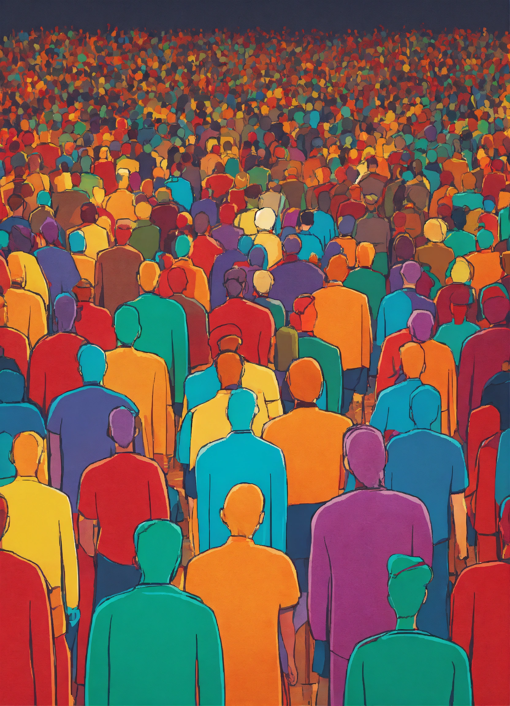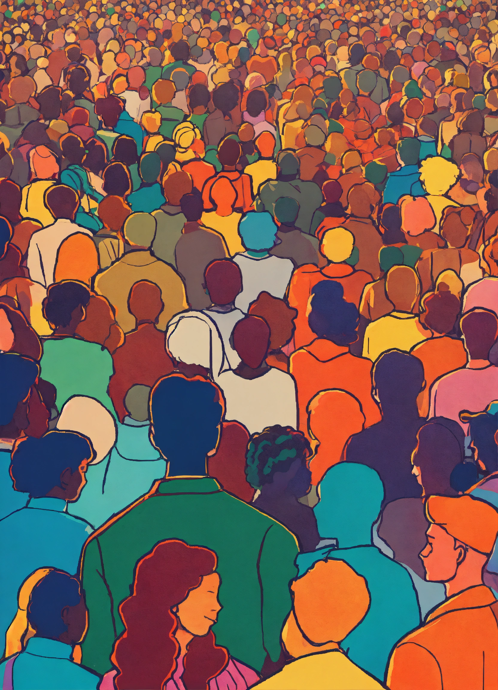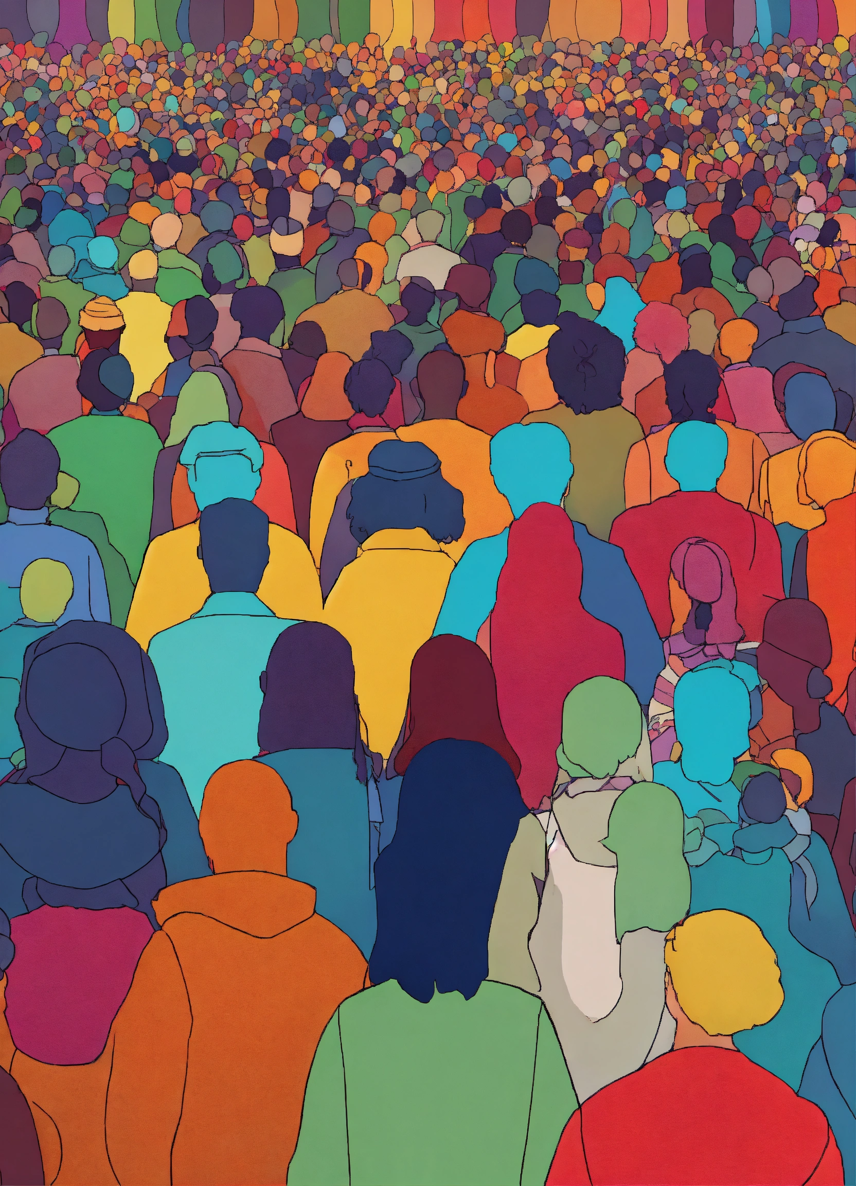 Diverse colorful people crowd silhouette line art. multi-ethnic community, cultural diversity group background drawing illustration.
