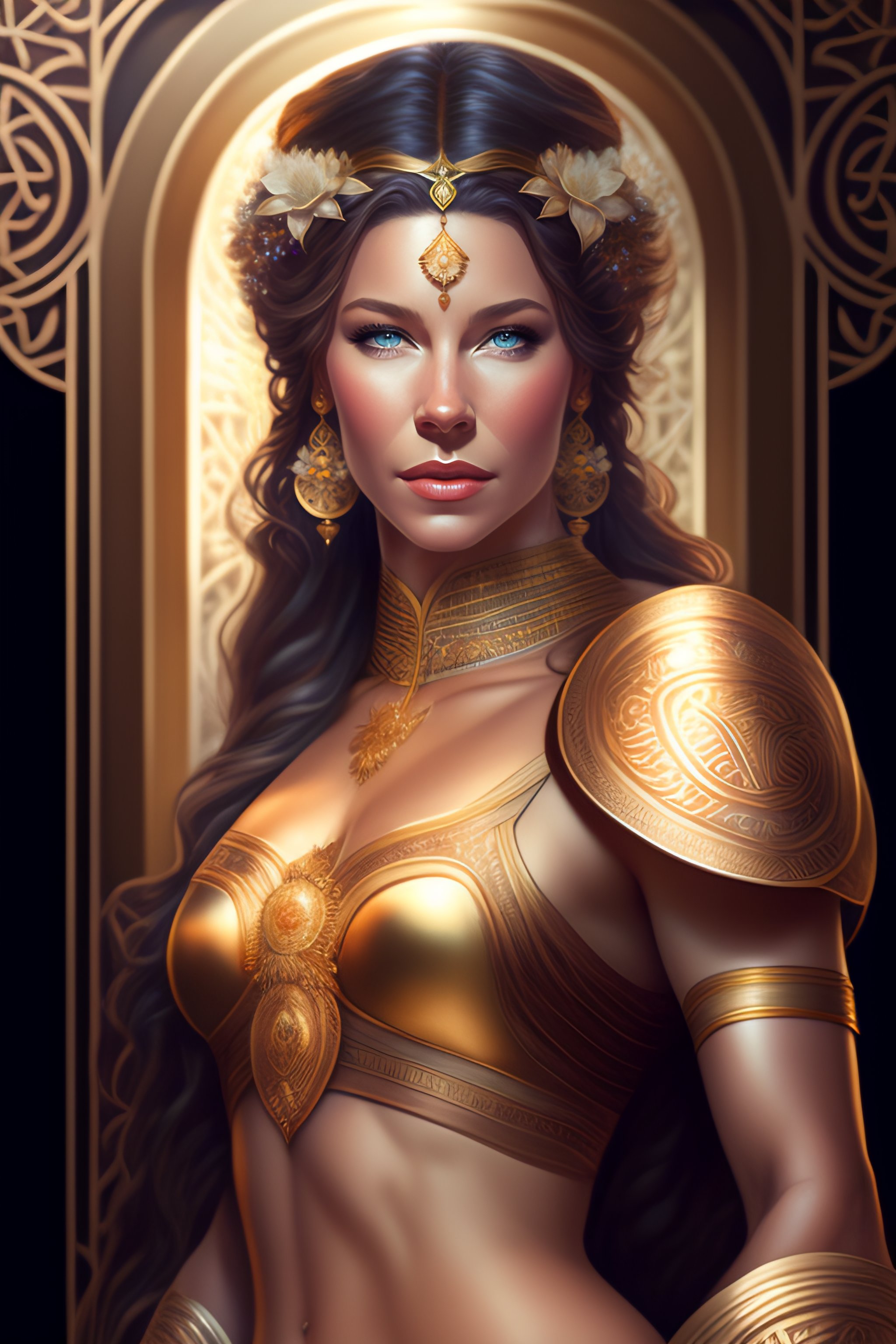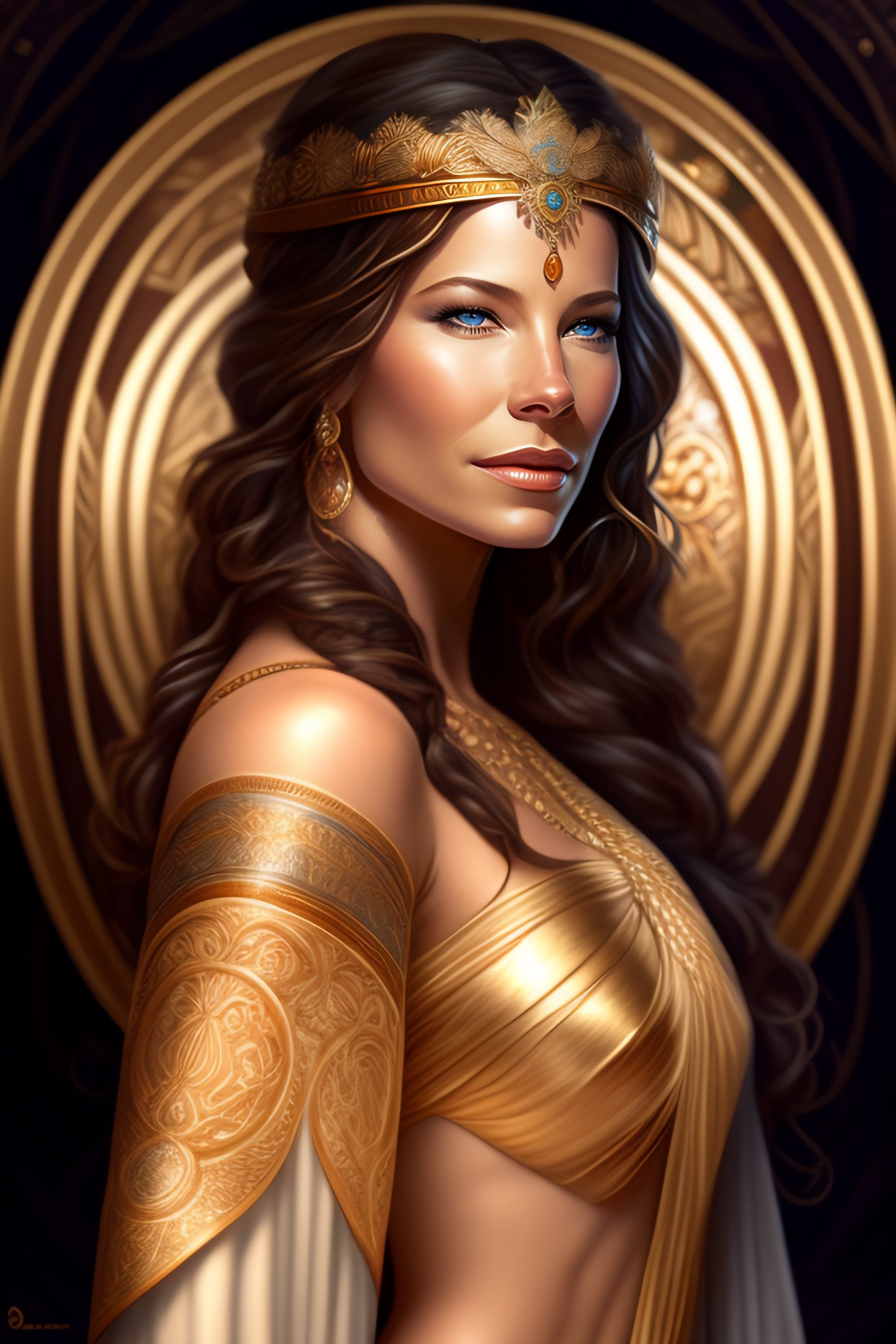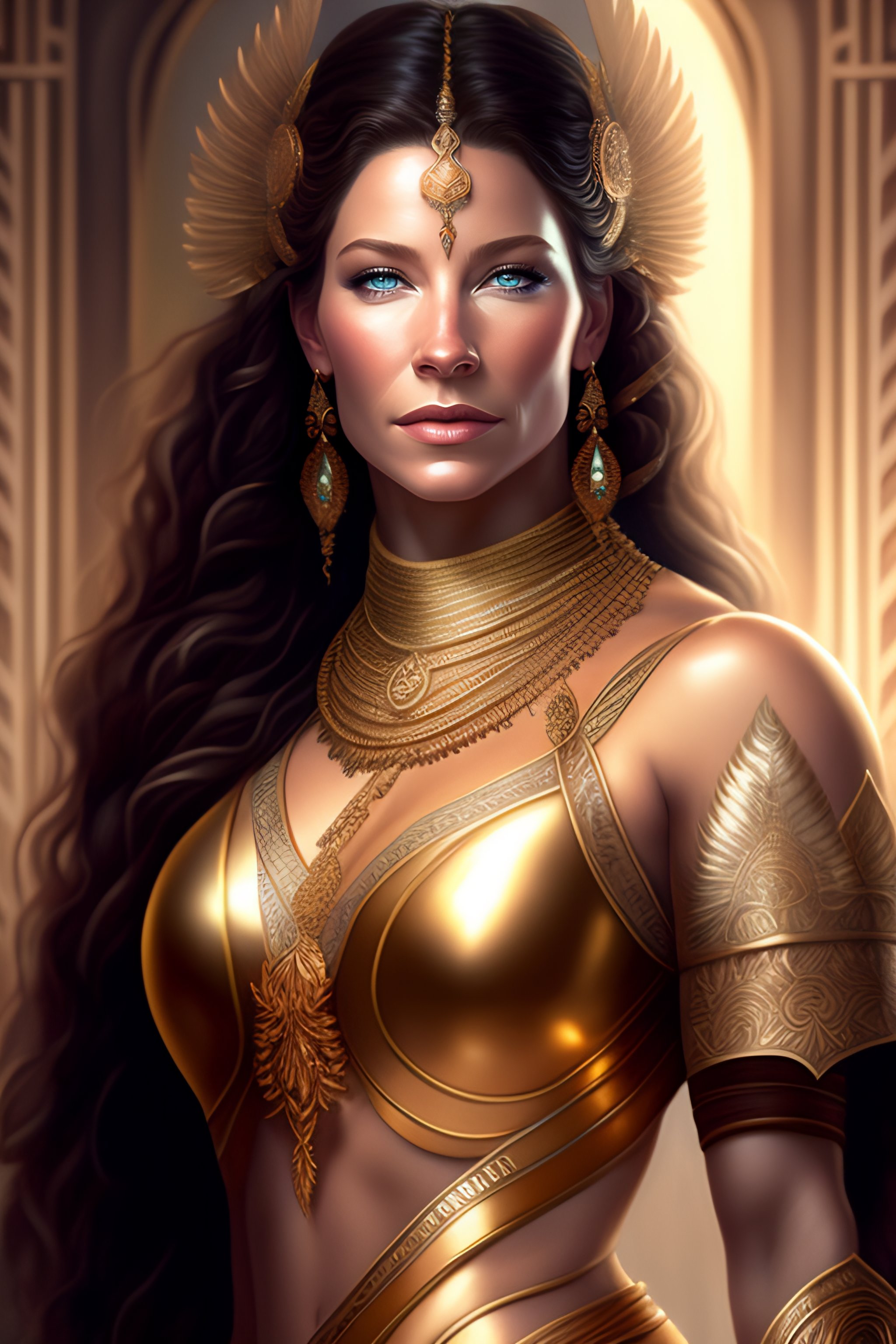 Evangeline lilly as an extremely beautiful greek goddess, gorgeous, fantasy, intricate, elegant, highly detailed, digital painting, 4k, hdr, concept art, smooth, sharp focus, illustration, art by artgerm and h r giger and alphonse mucha