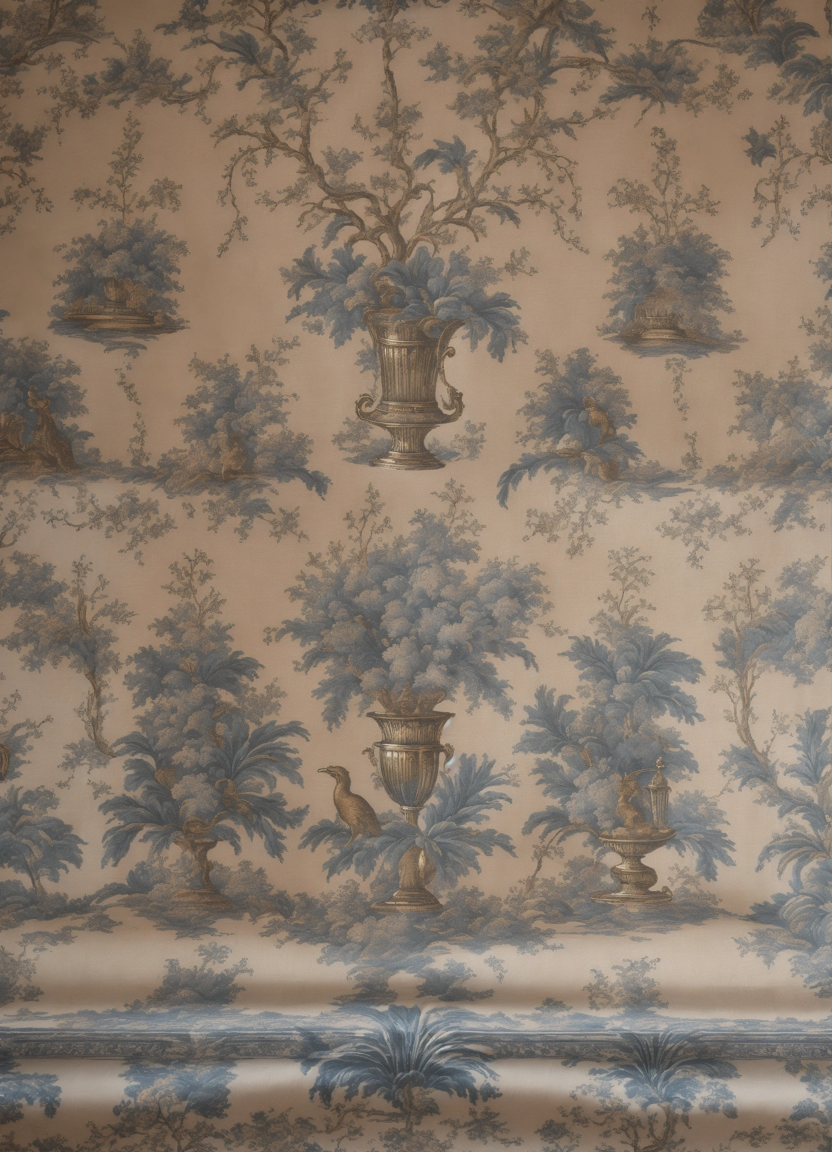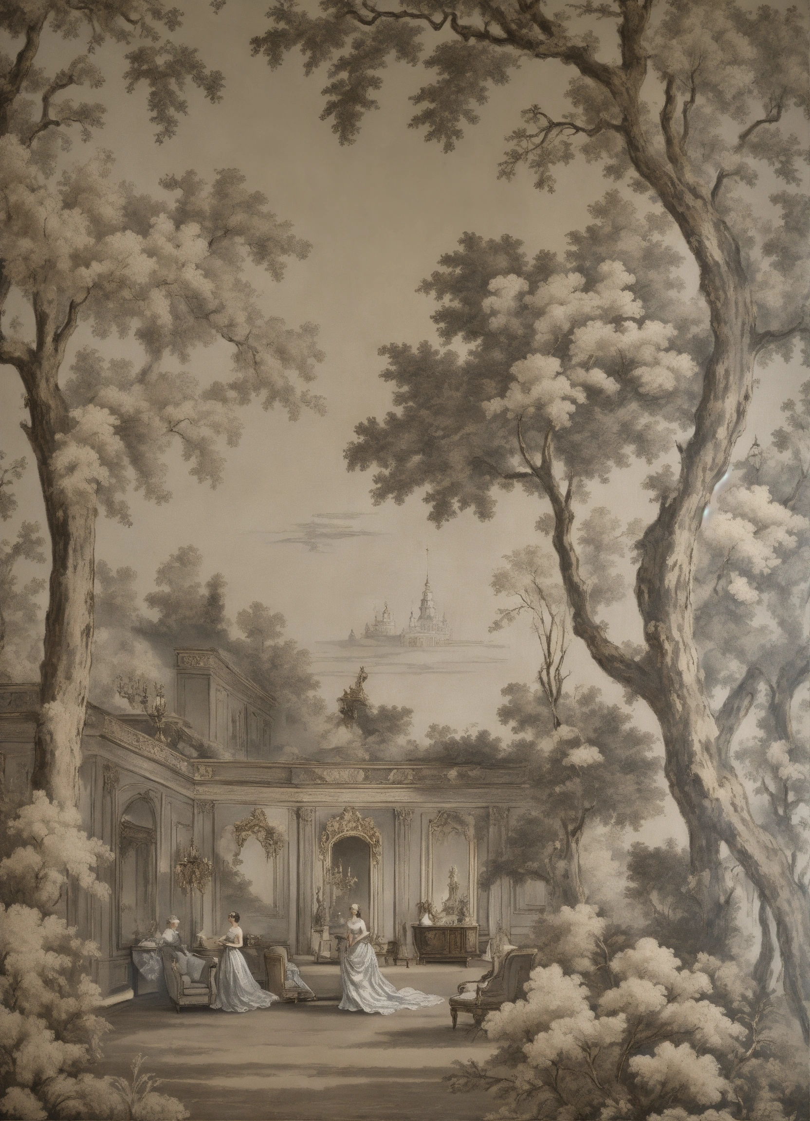 Toile de jouy smoke nouveau art deco silver flash sparkle salon interior regency louis xvi