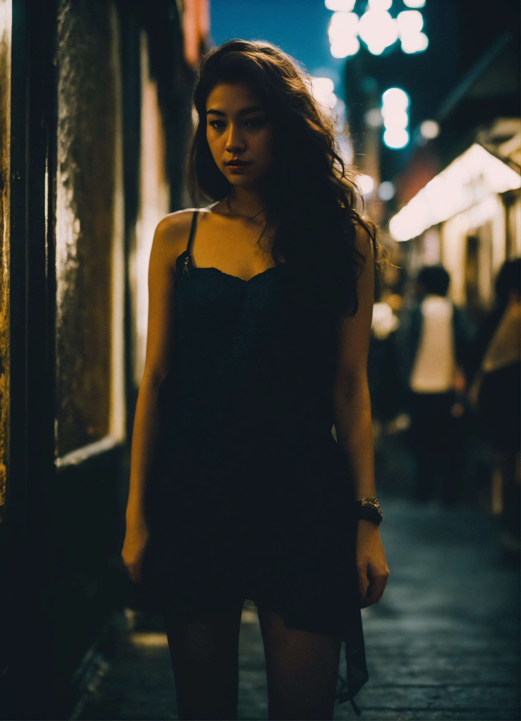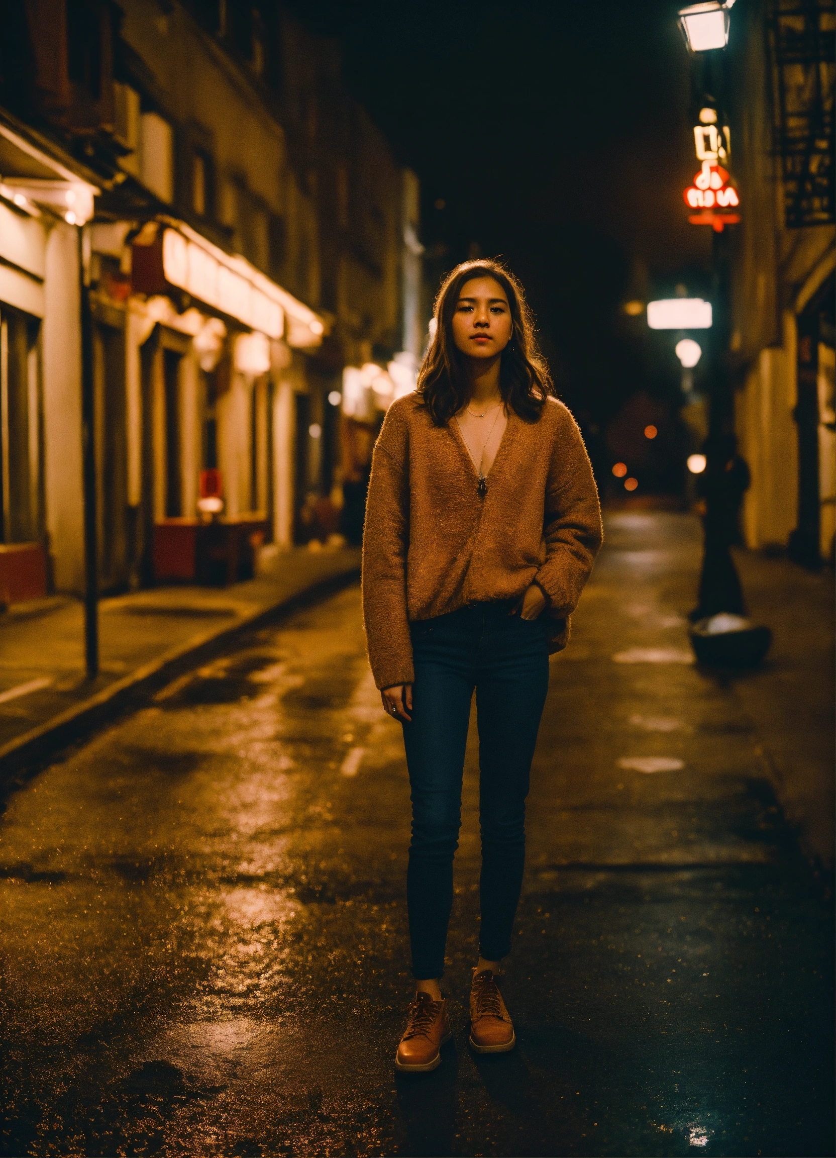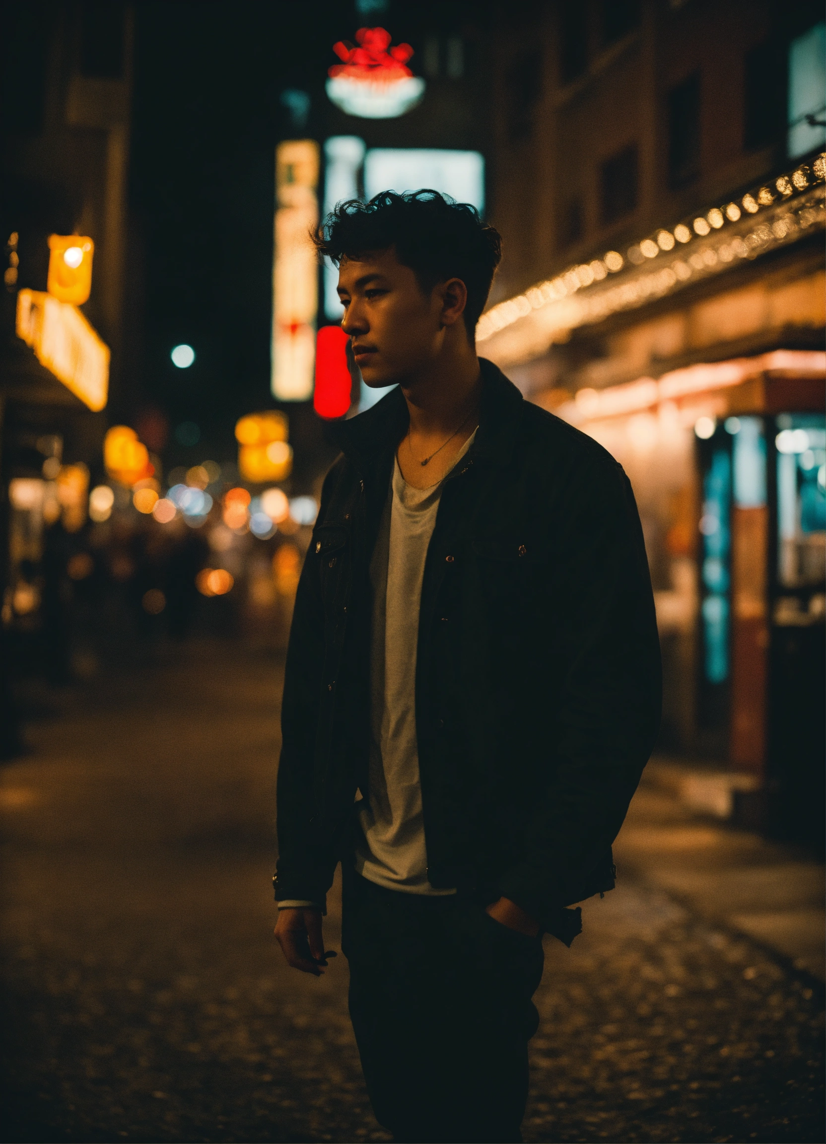 Candid photo during the night, low quality image, exhibiting a grainy texture, jpg artifacts, film grain, gritty, raw aesthetic