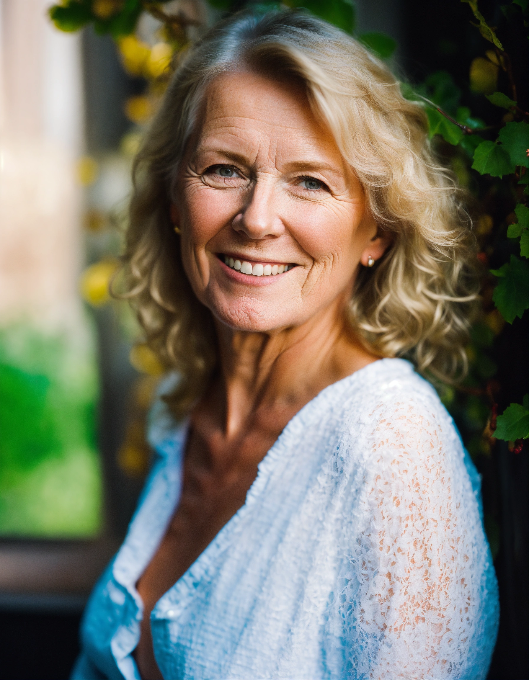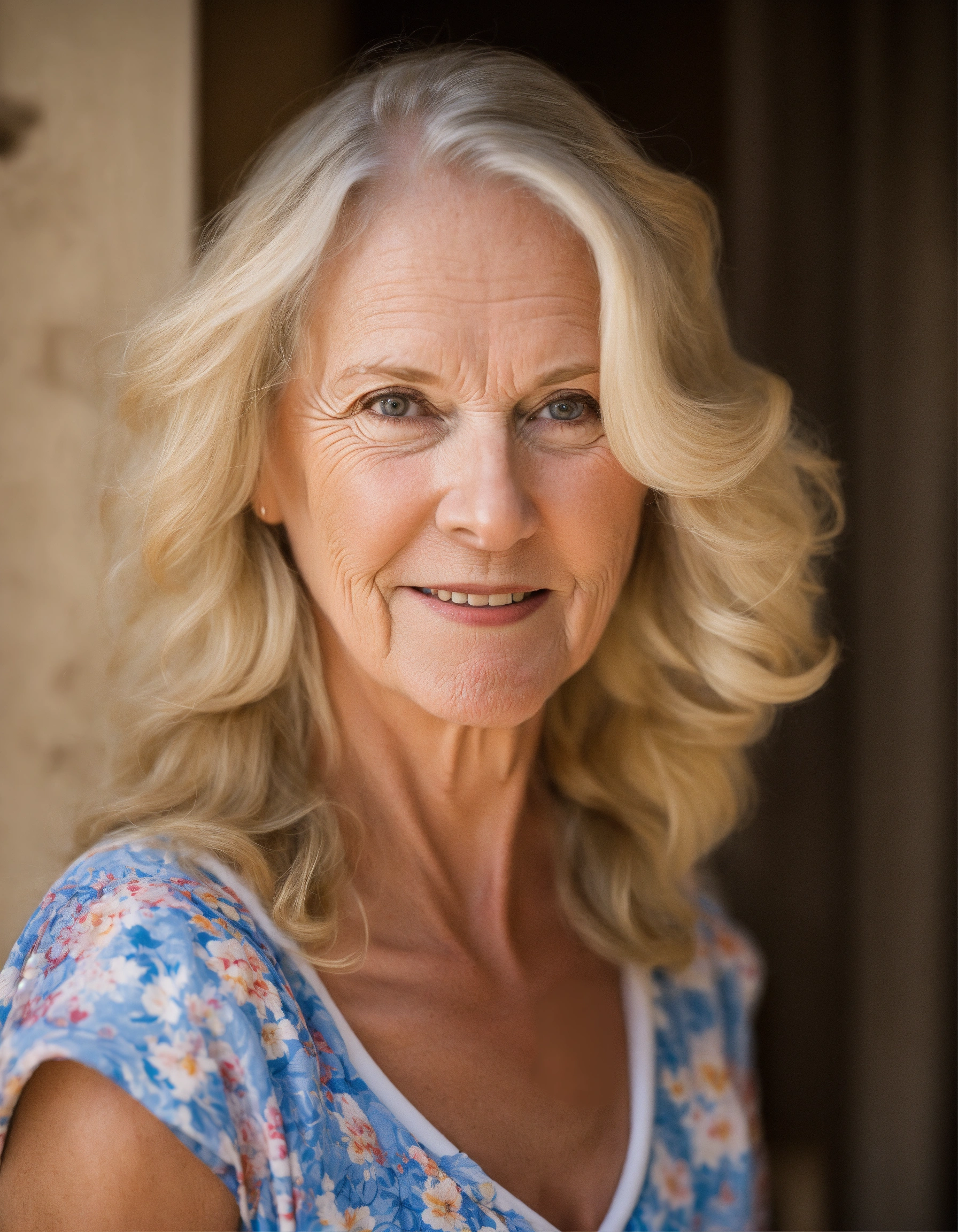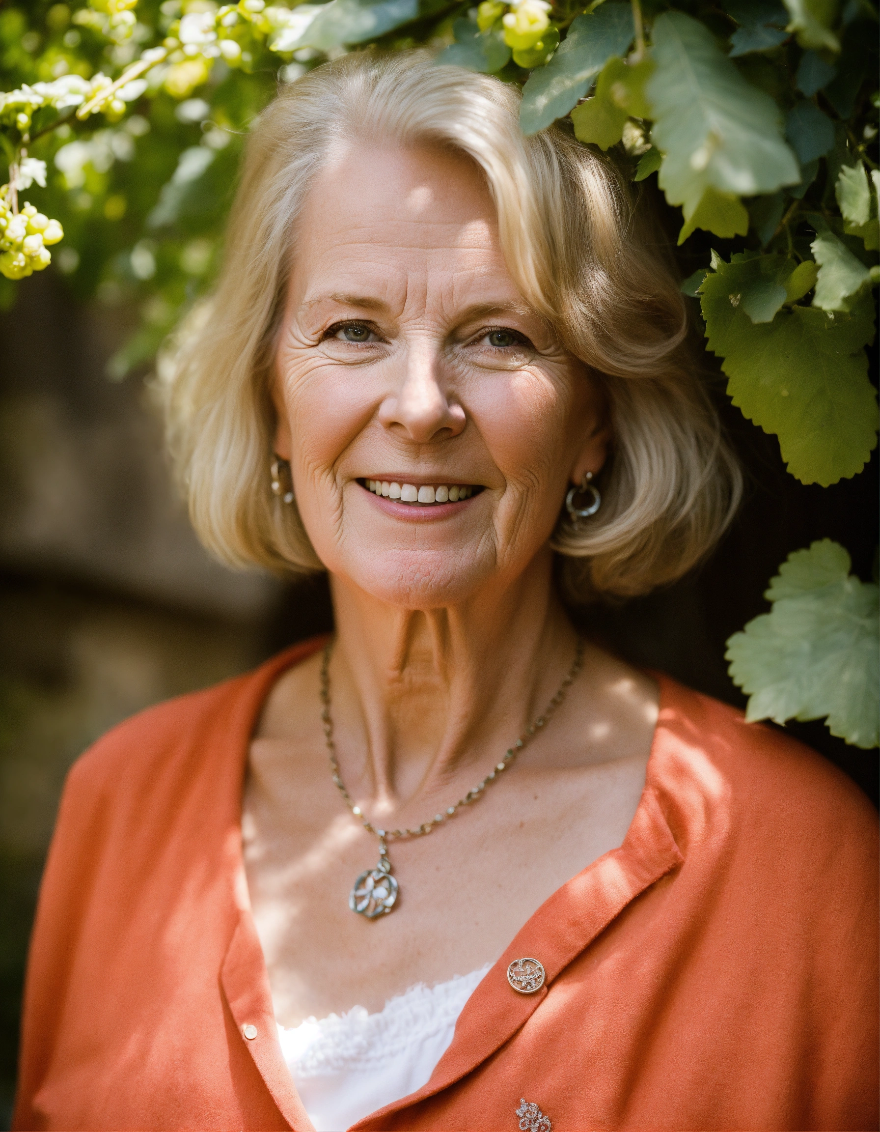 Janneke is a blond 67 old white woman, she is dutch and lives in a vinex home. she is outgoing and happy.