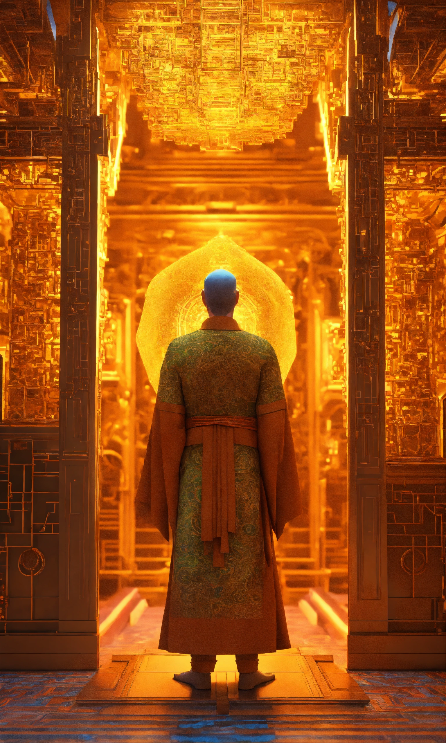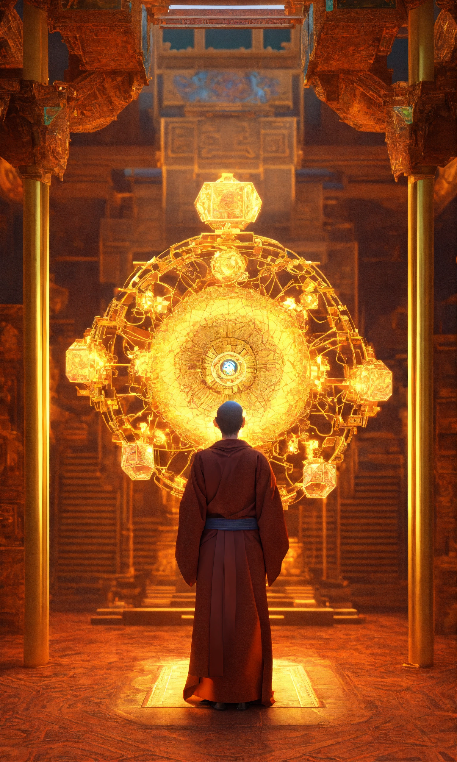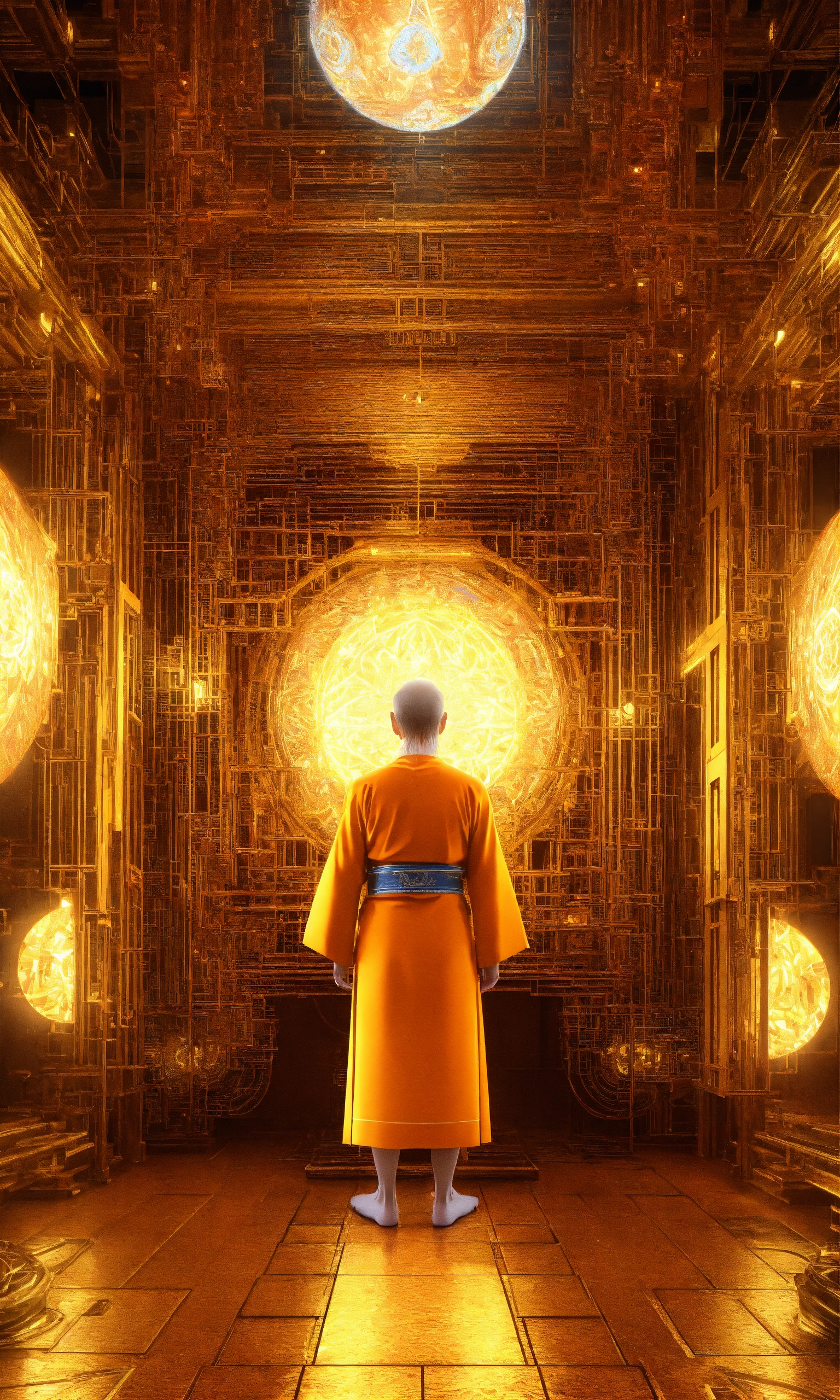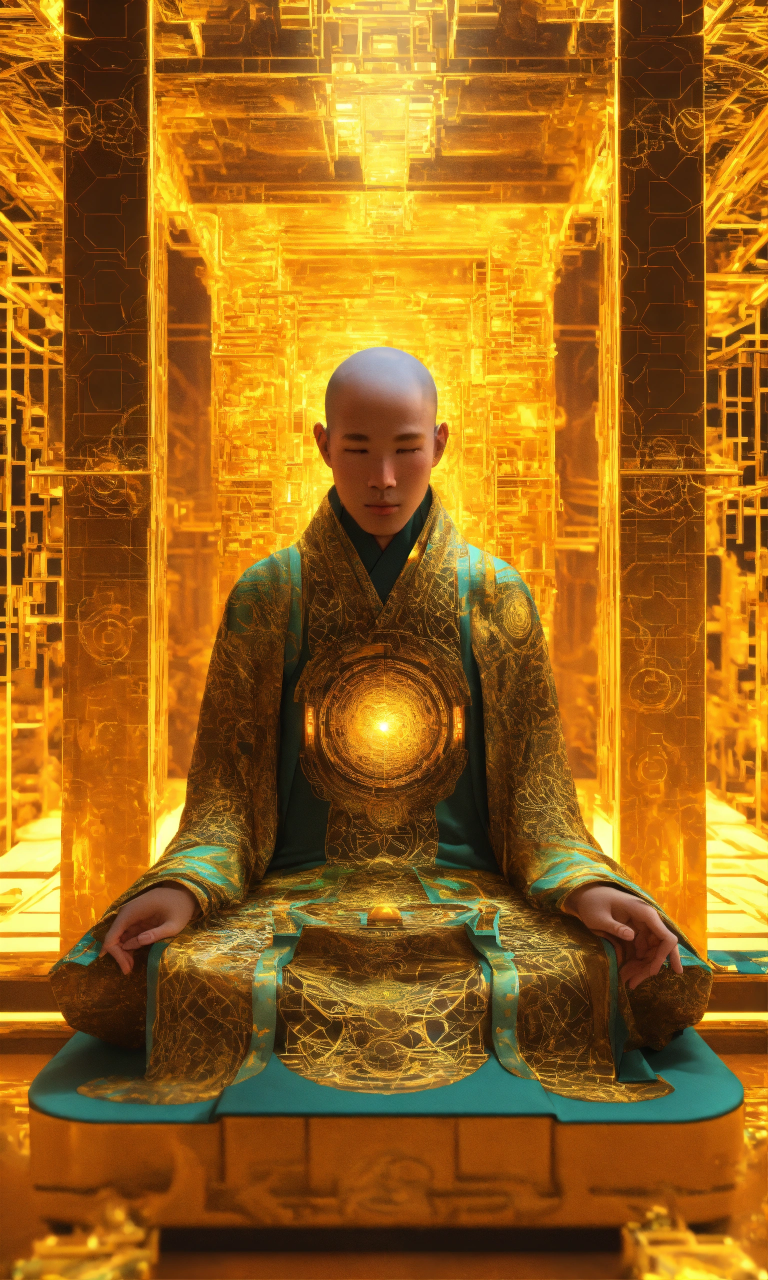 4th dimension complex fractal geometry tesseracts life daoist monk self-transforming machines 3d render
