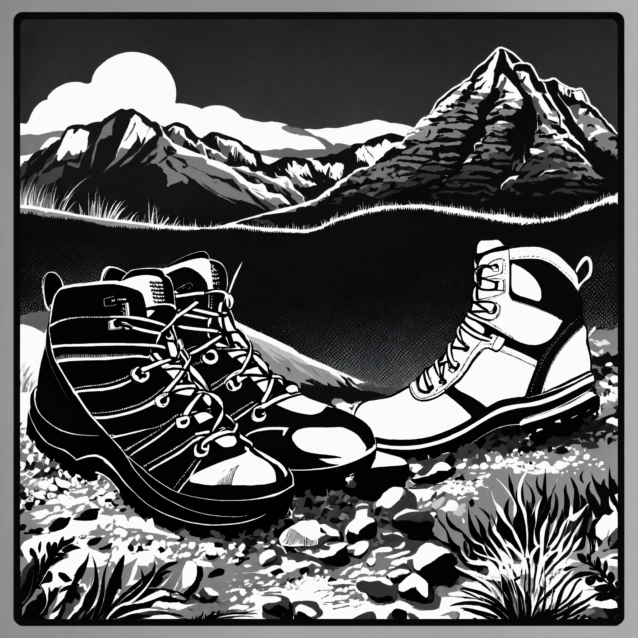 Three hiking boot prints