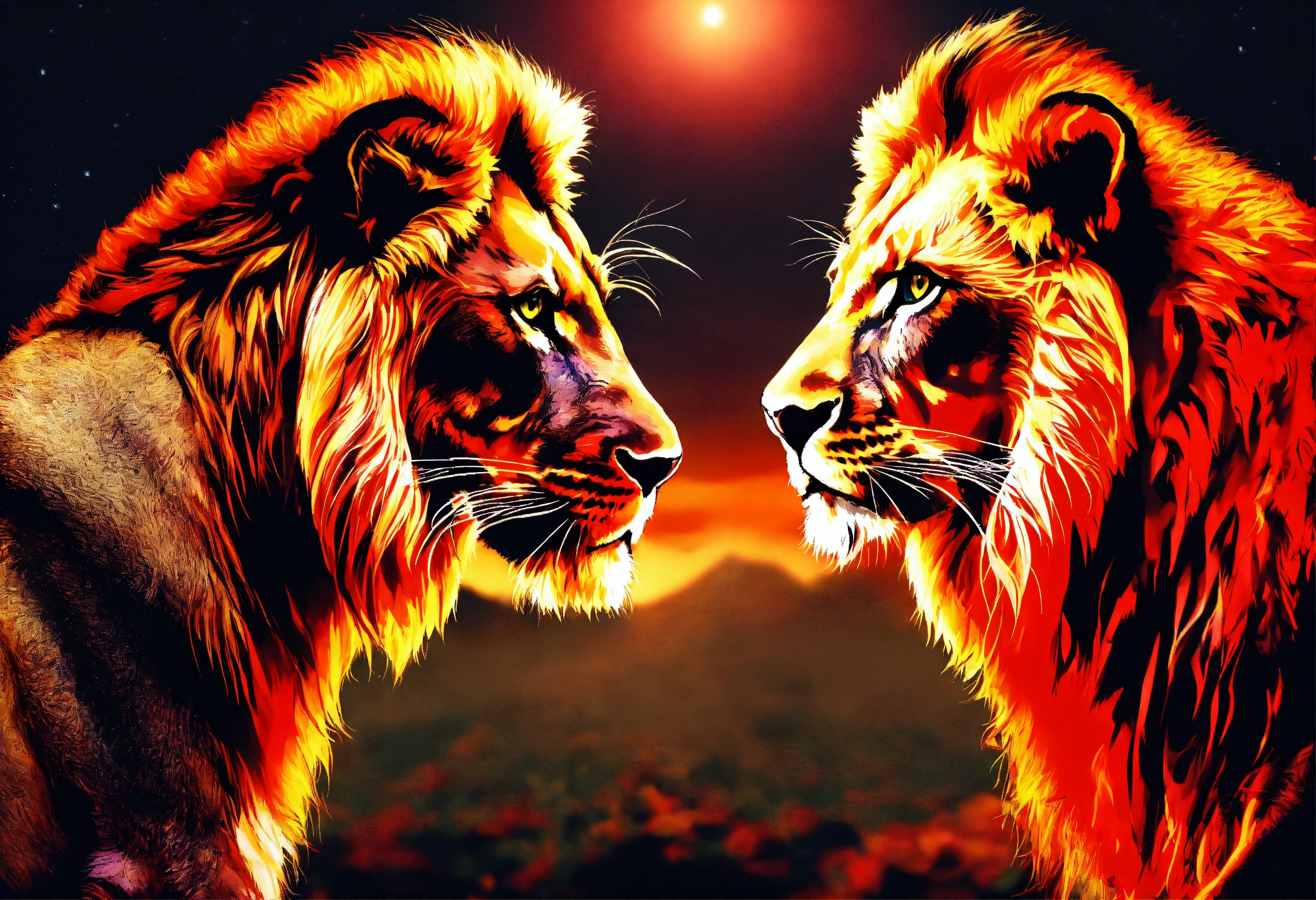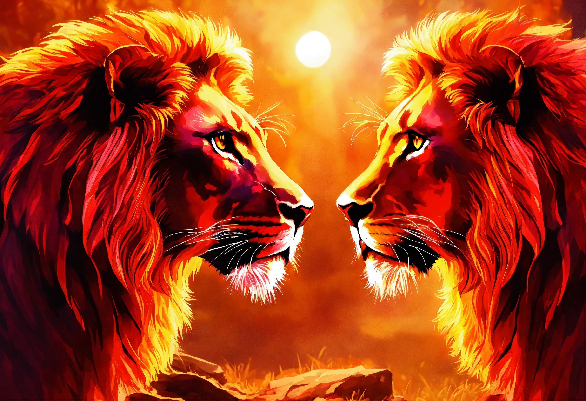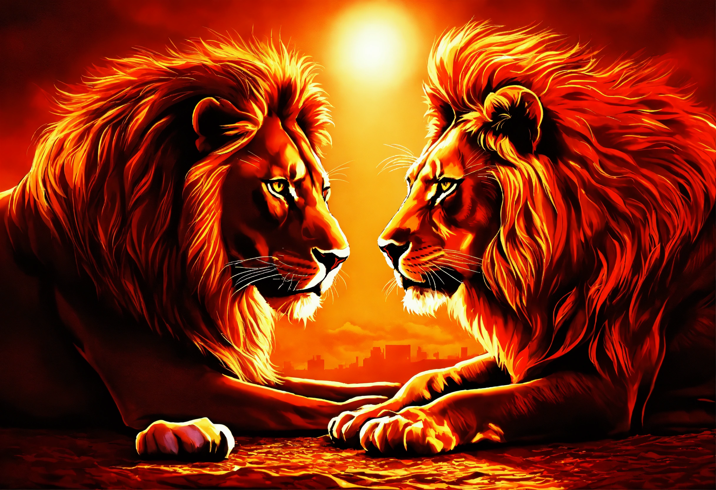 one lion glowing ruby-red